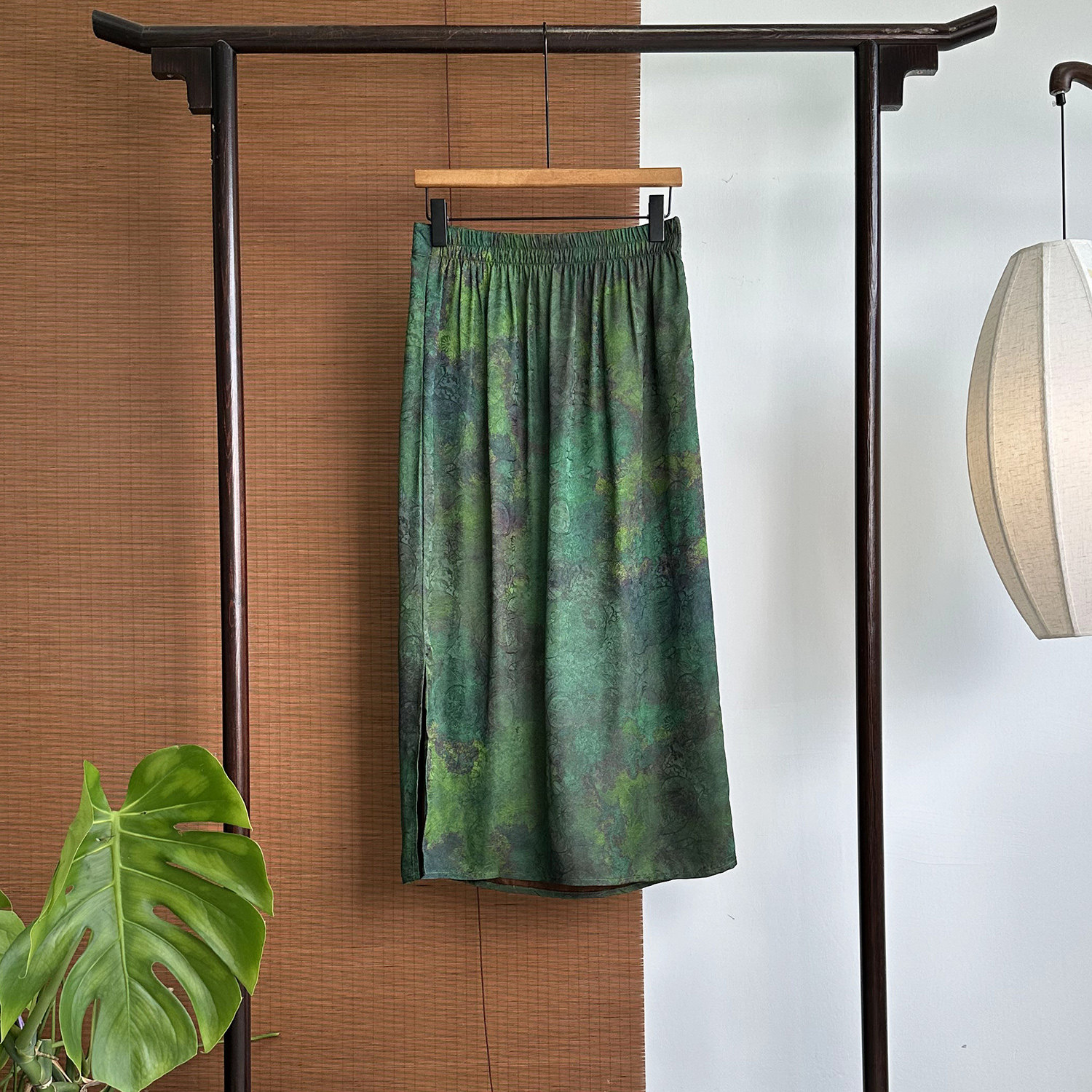 【252087】Clear Edition Green Shadow Dream New Chinese Style Fashionable Versatile Embossed Skirt