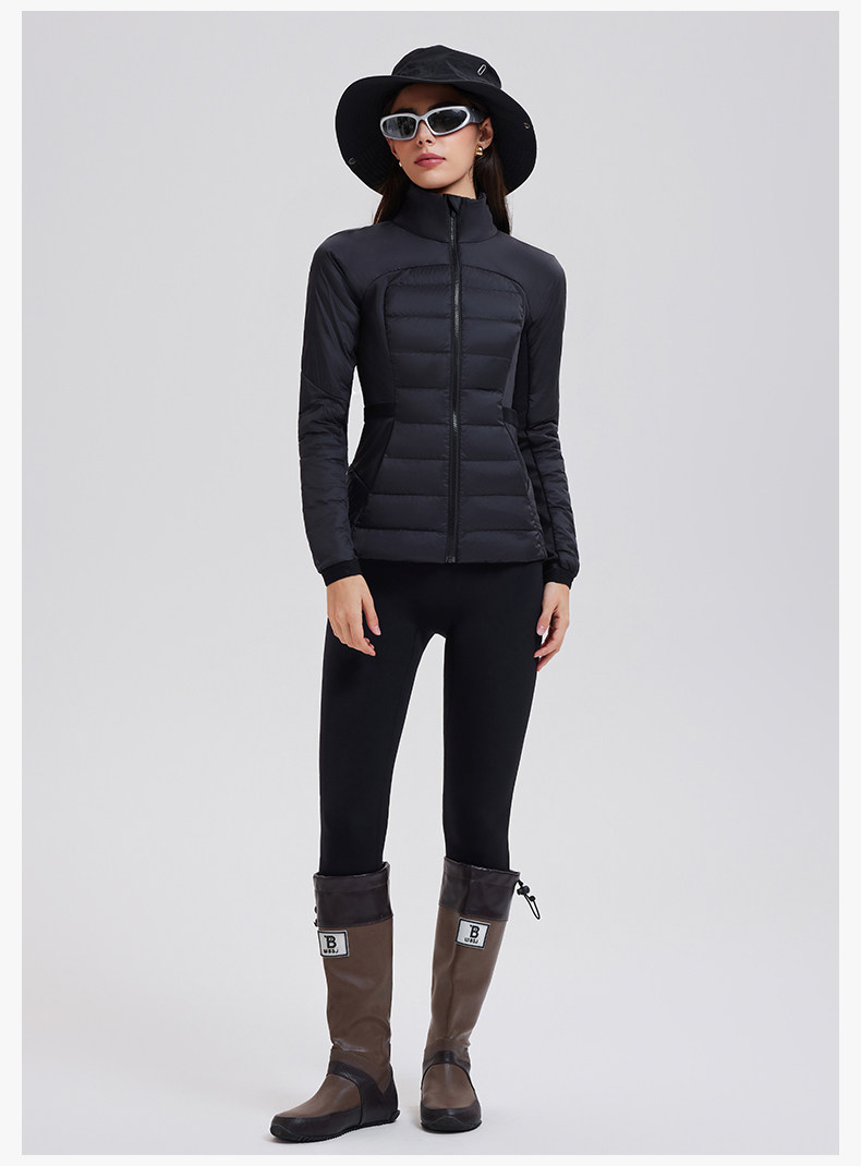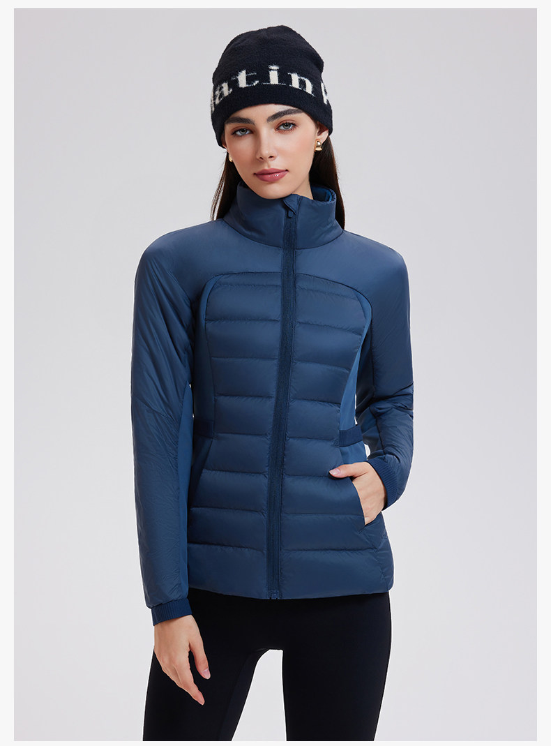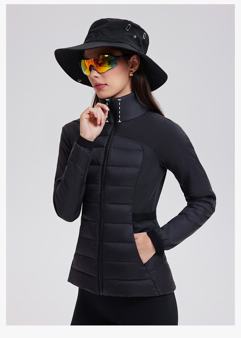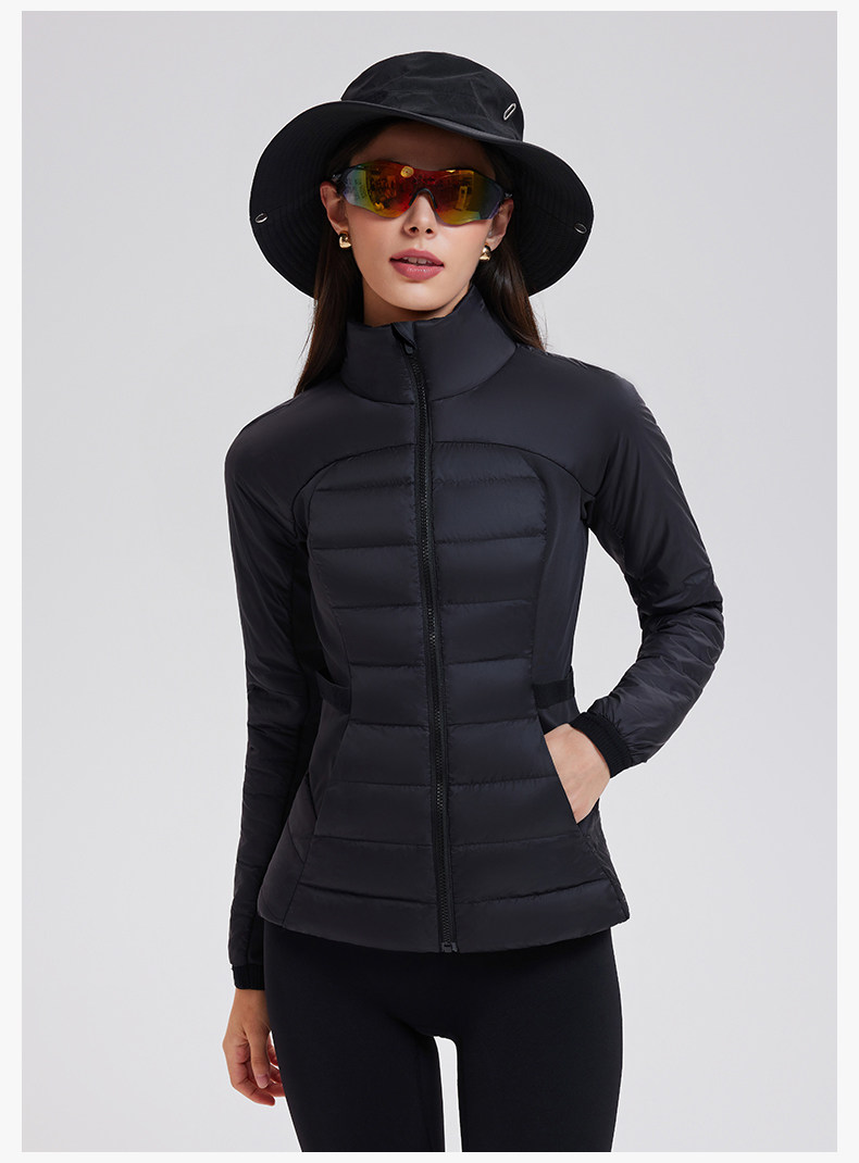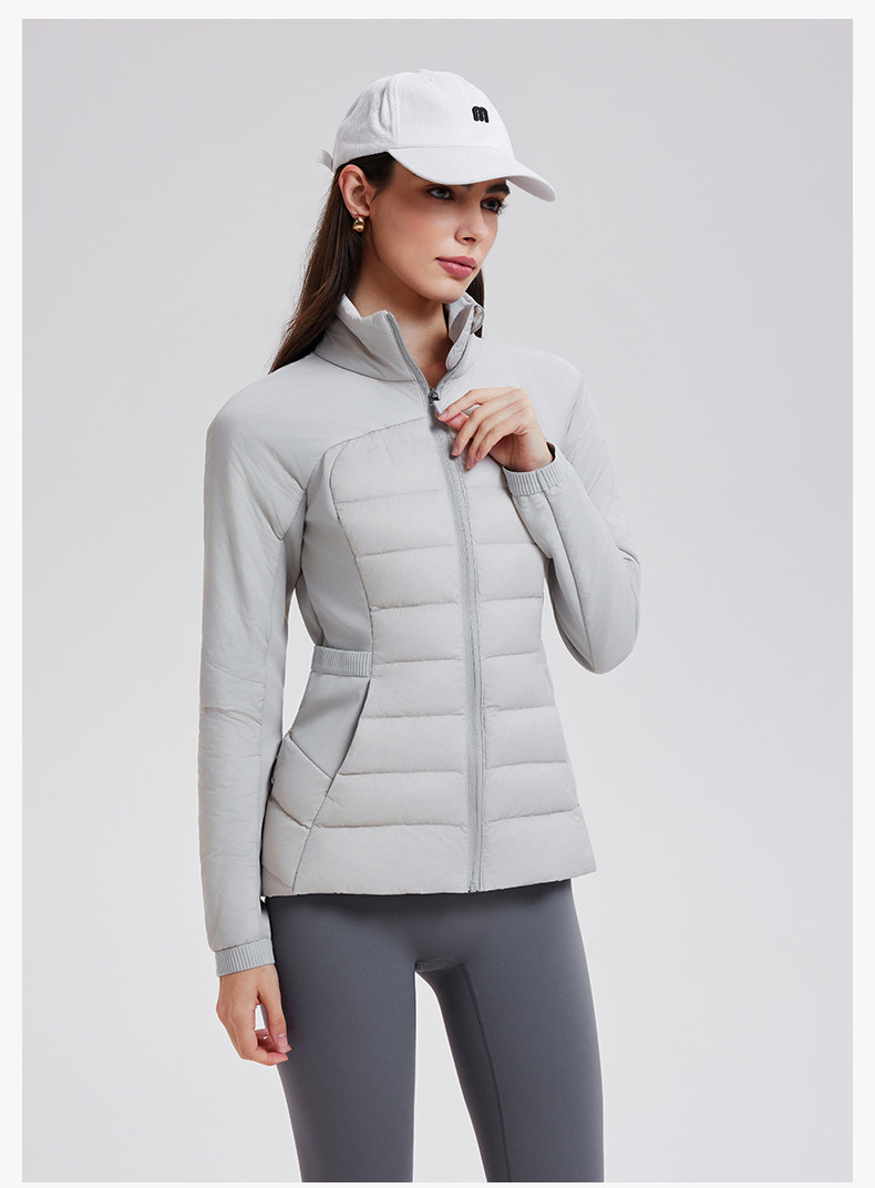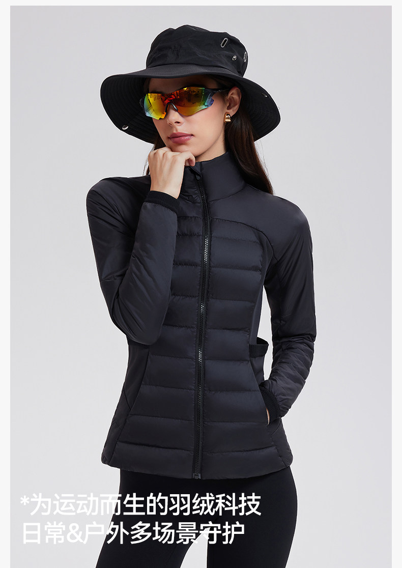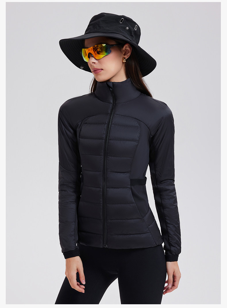 Corif down Jacket for Women, Autumn and Winter Outdoor Running, Windproof, Stand-Up Collar, Lightweight, Warm Inner Lining, Fitness Sports Jacket