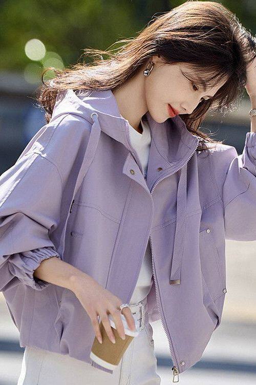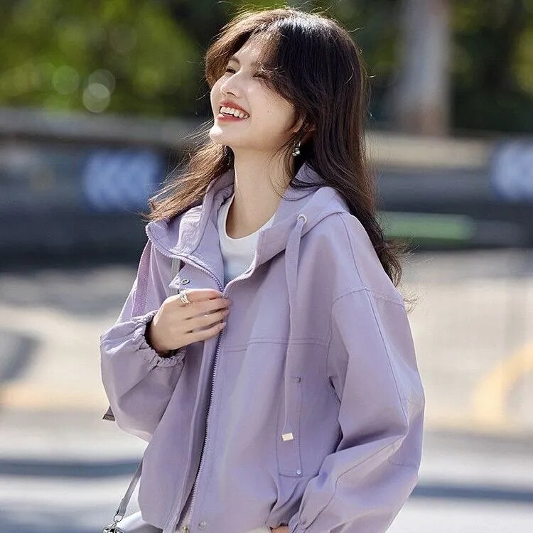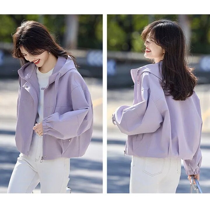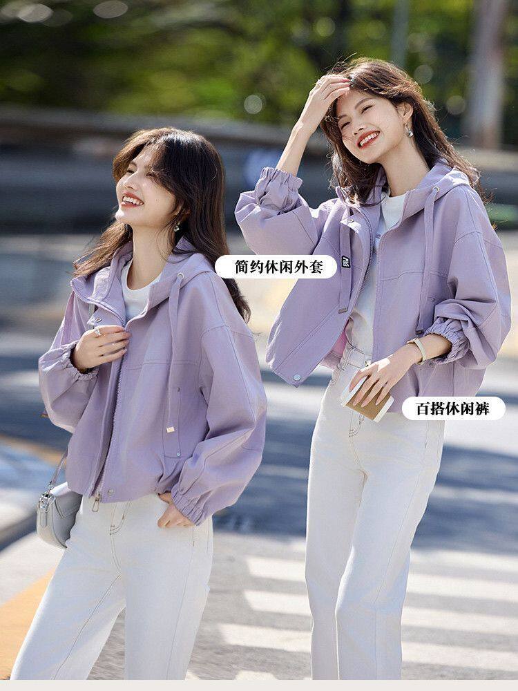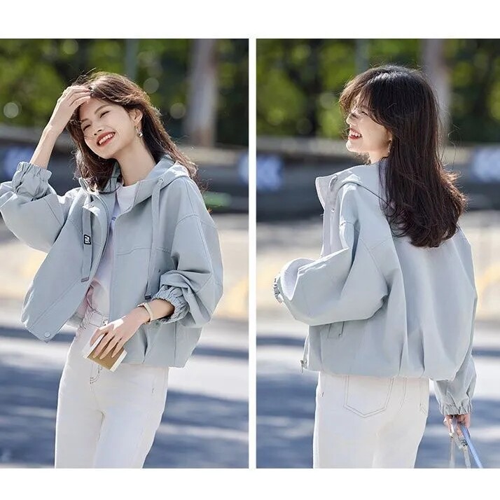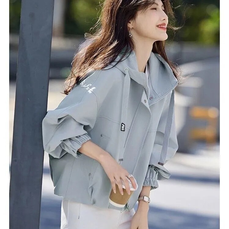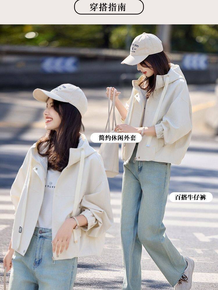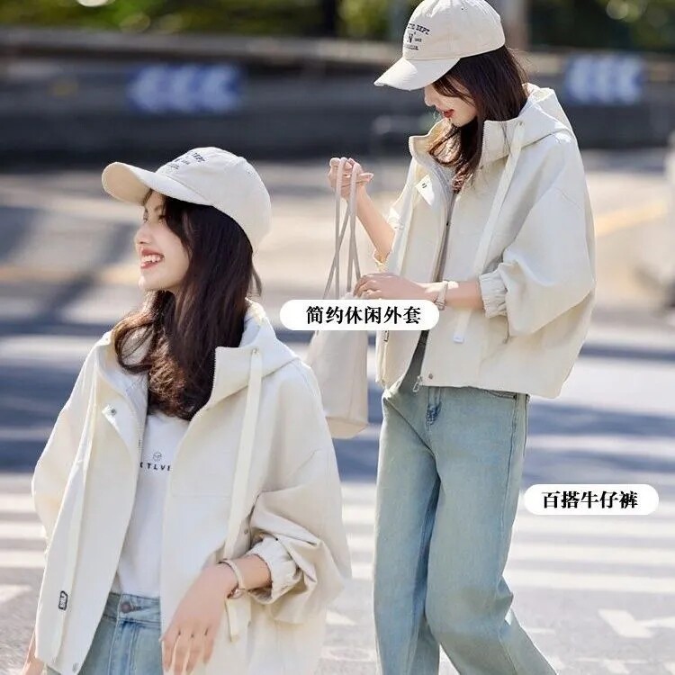 Short Hooded Commuter Jacket for Women 2025 New Spring and Autumn Style Petite Loose Casual Jacket Top