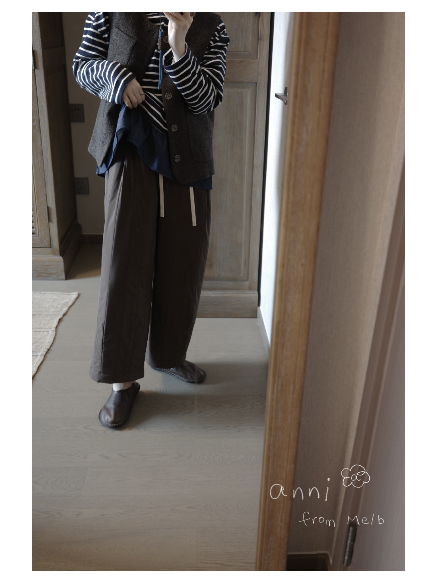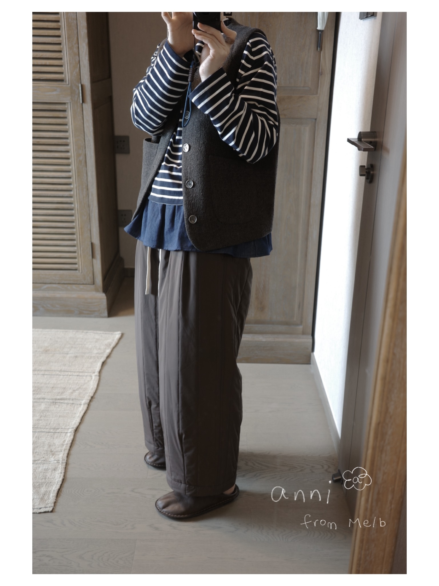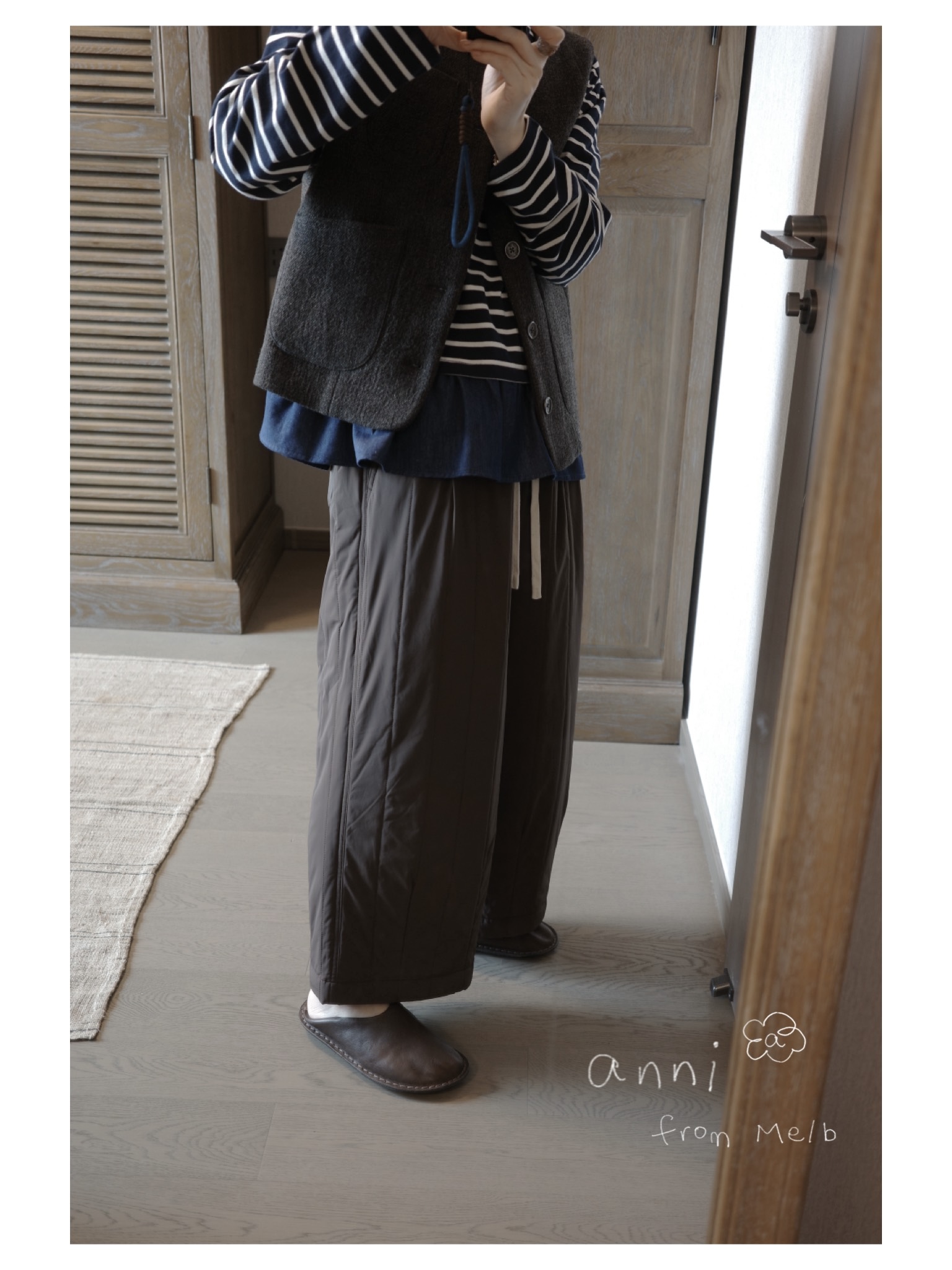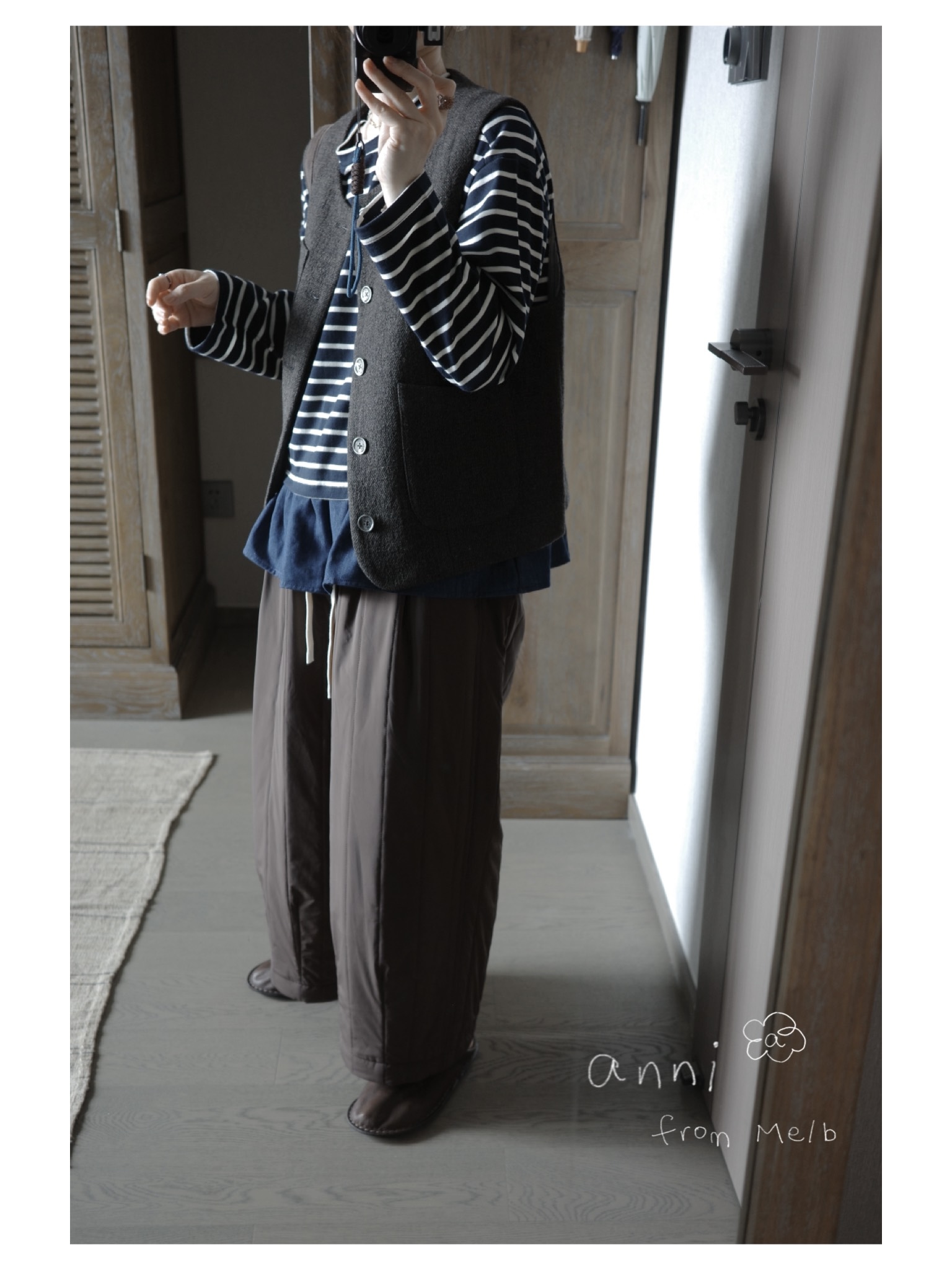 Anni Japanese Imported Ultra-Light Fabric 3m Thermal Fleece Vertical Wide Stripe Cotton Casual Pants, Unique Cotton Pants