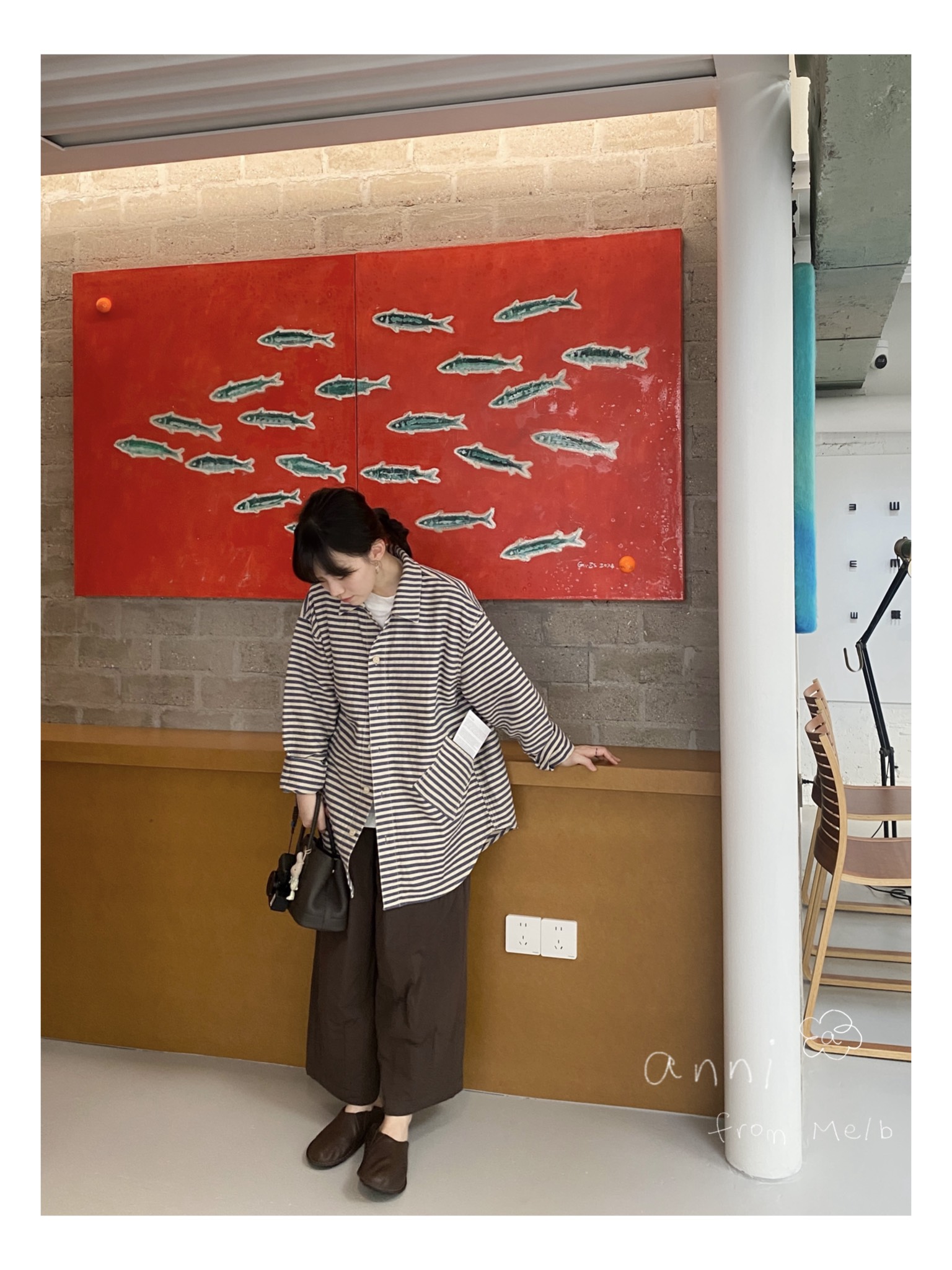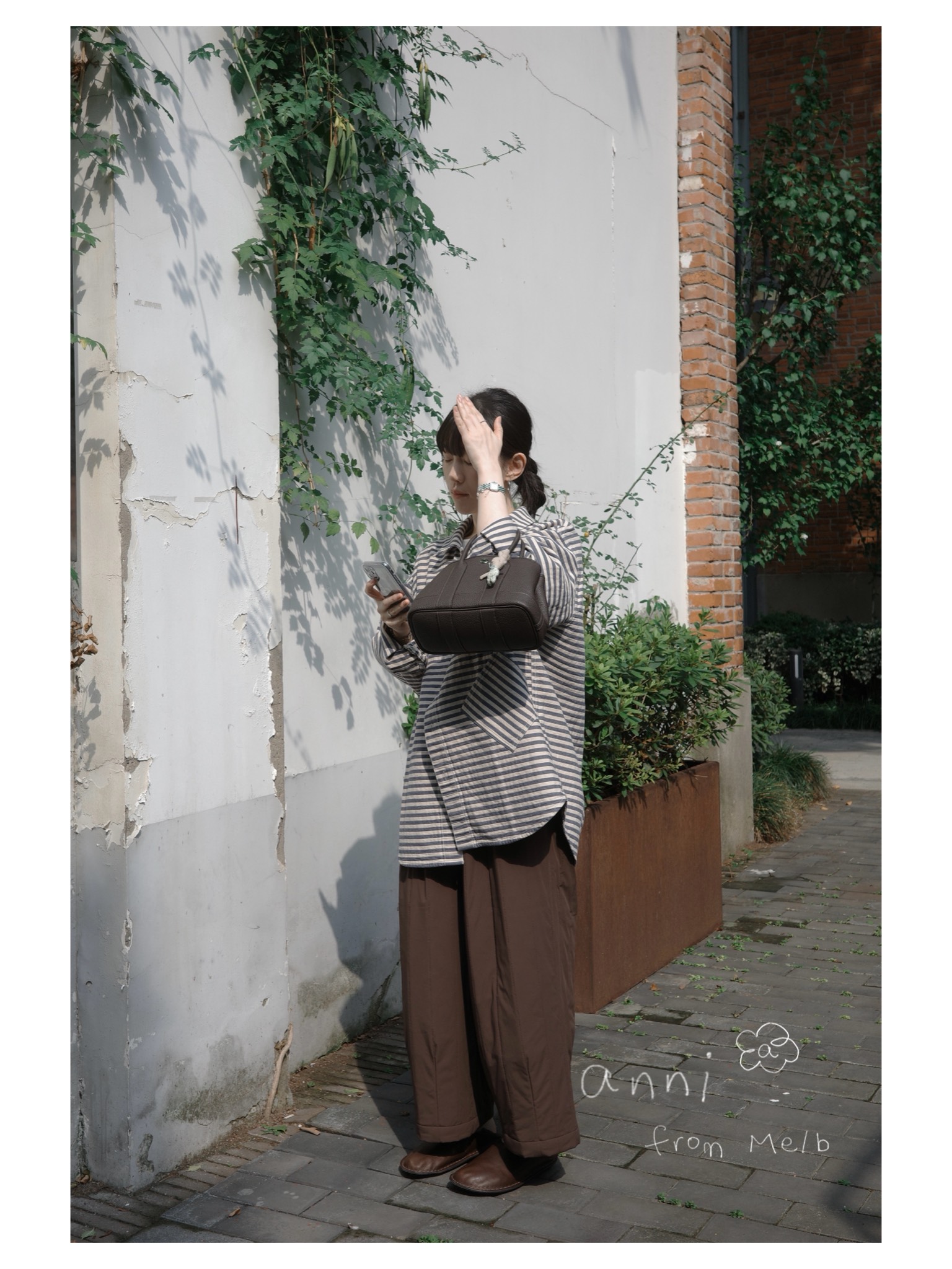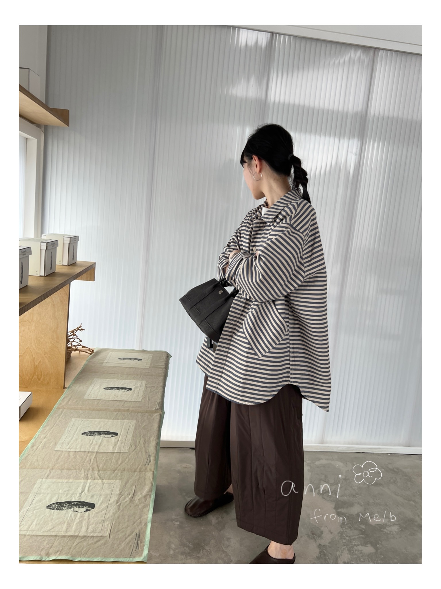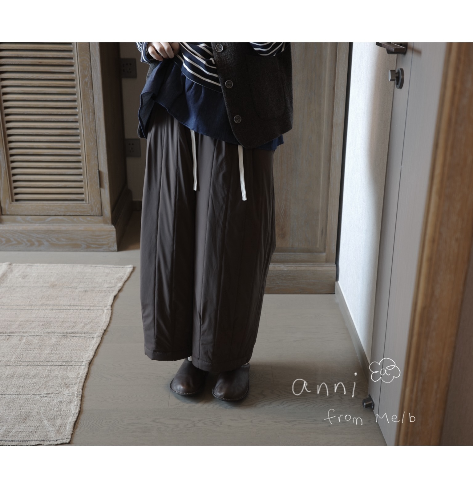 Anni Japanese Imported Ultra-Light Fabric 3m Thermal Fleece Vertical Wide Stripe Cotton Casual Pants, Unique Cotton Pants