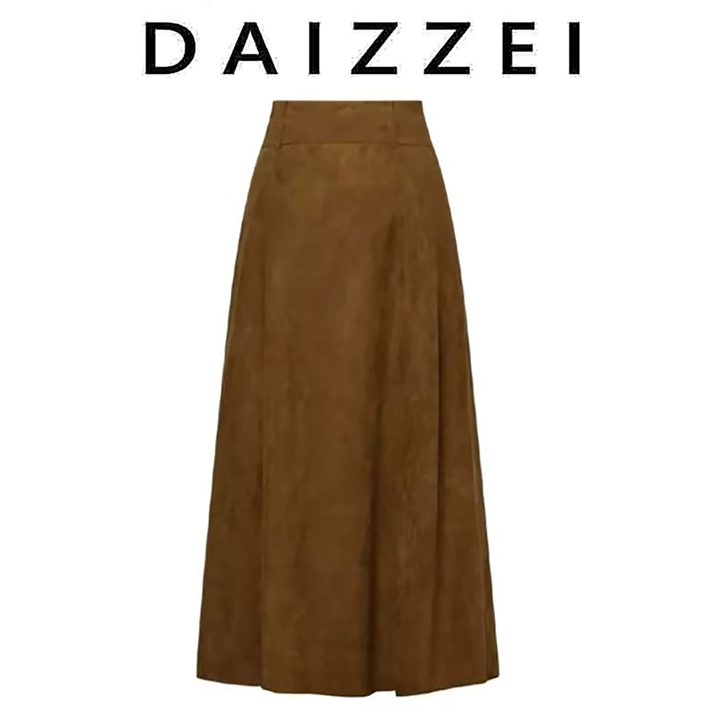 Daizzei~Papi Jiang's Same Style Retro Tobacco Brown High-Waisted A-Line Skirt, Elegant Silhouette Half Skirt for Women, New Autumn Model