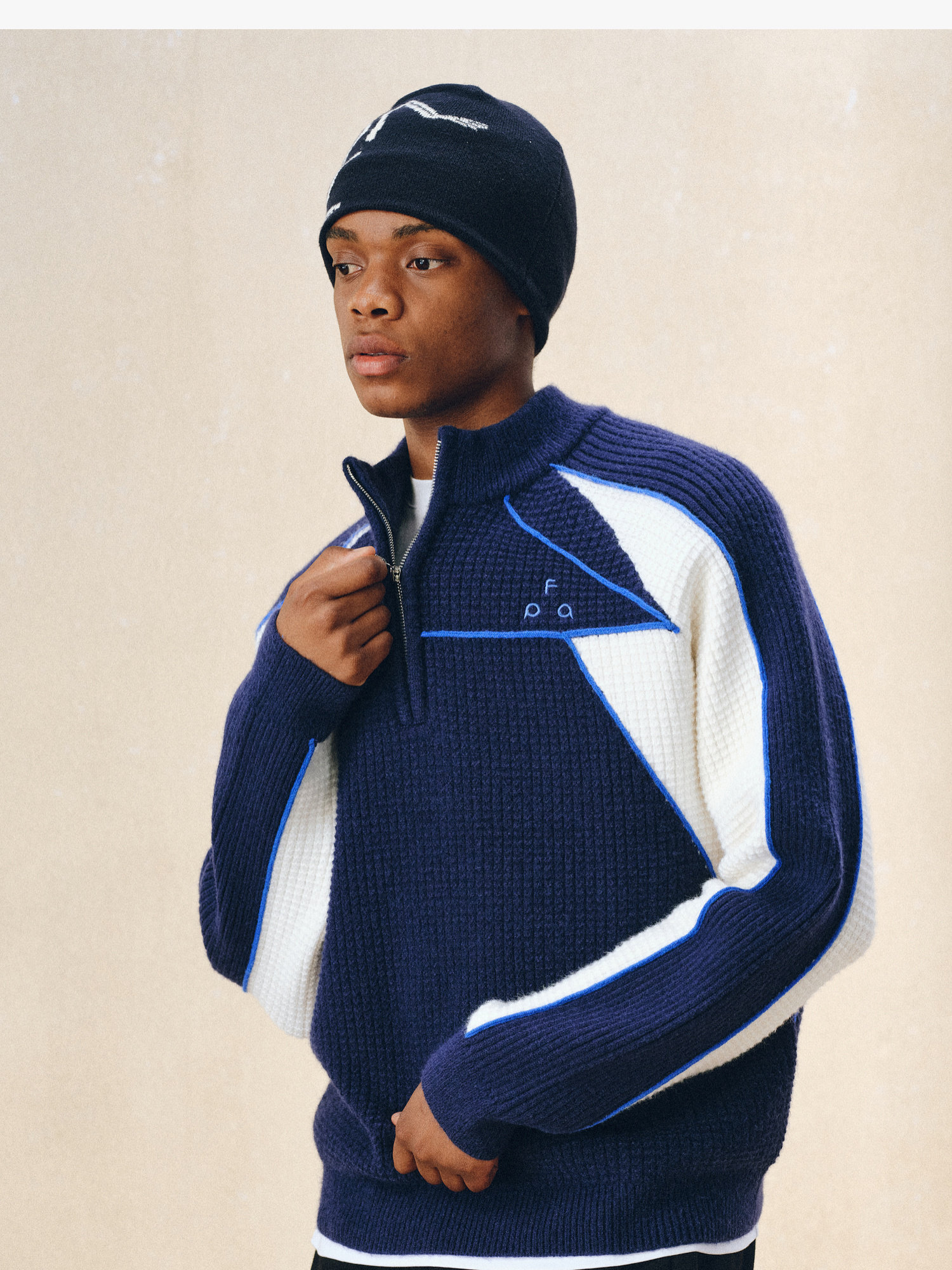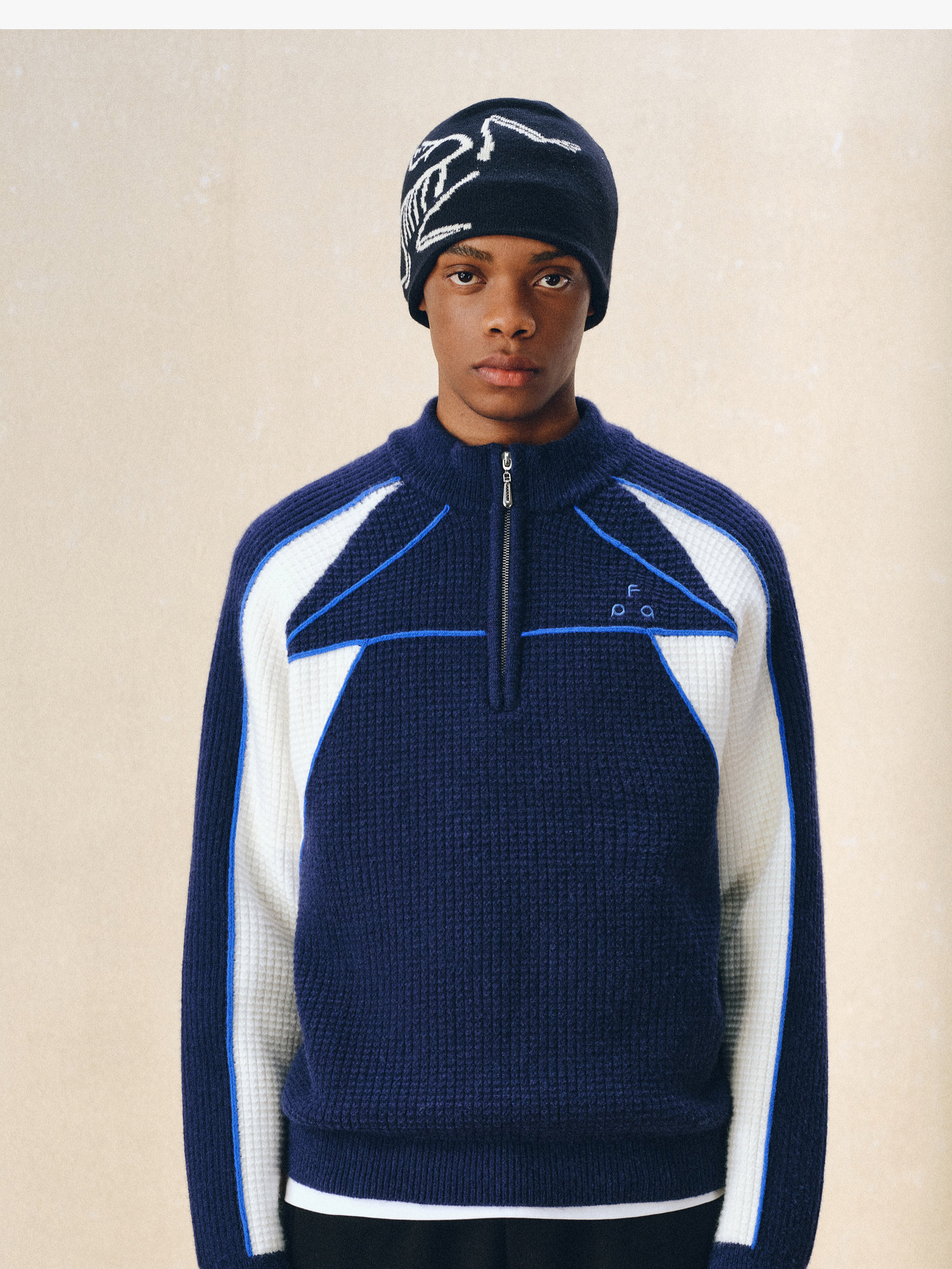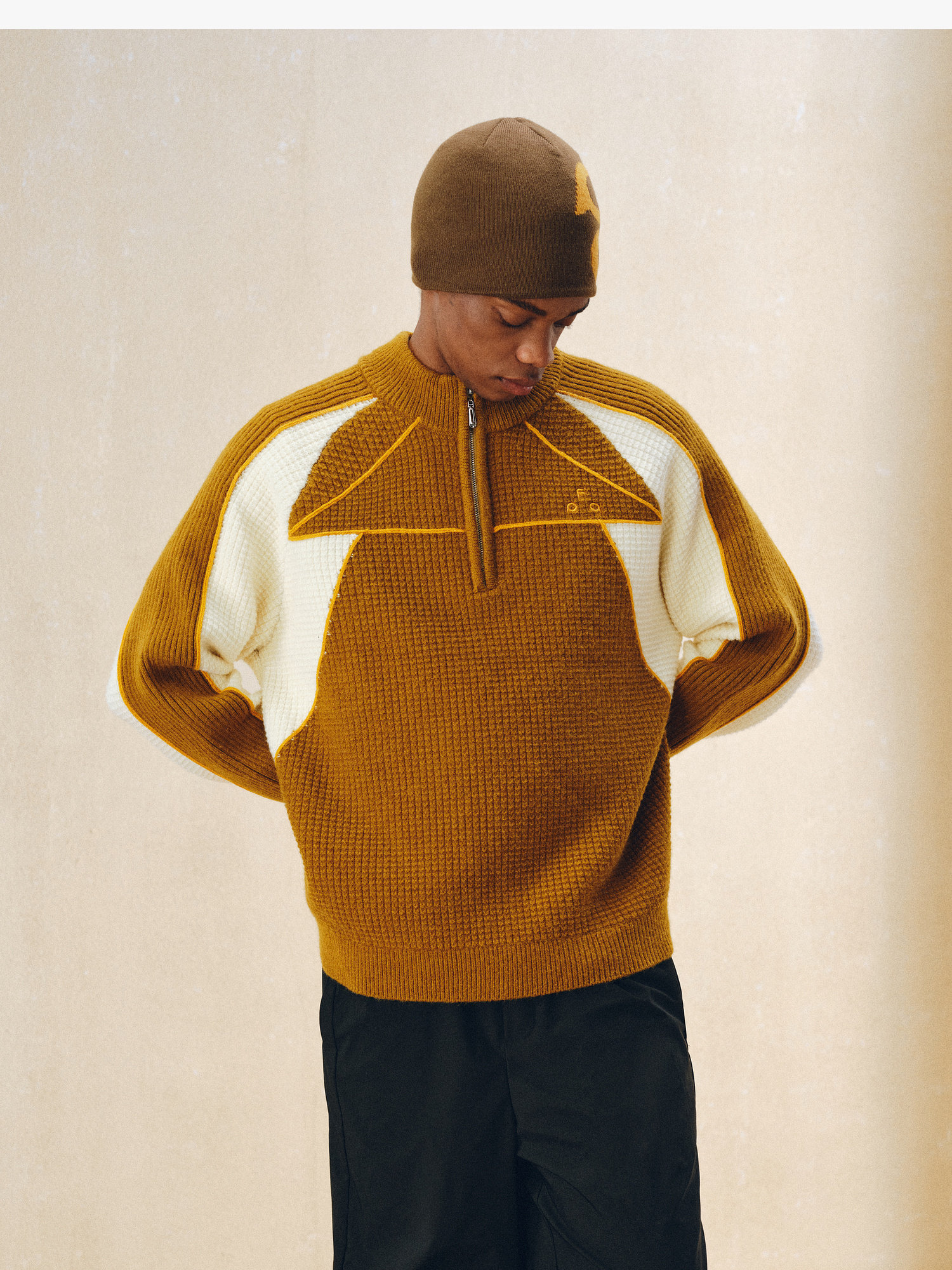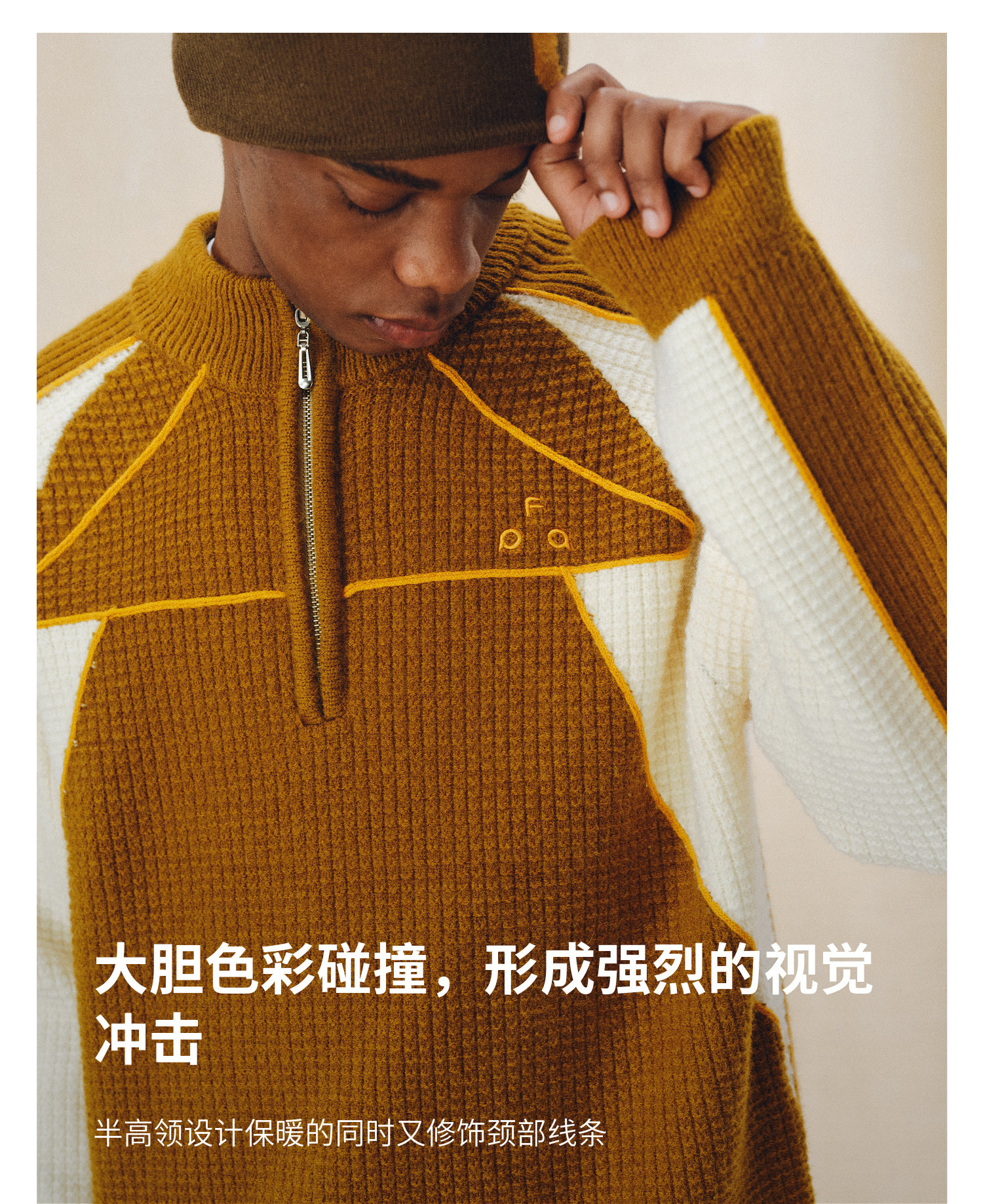 Fpa Half-Zip Sports Outdoor Color-Blocked Sweater Spring and Autumn Pullover Retro Couple Outfit High-End Knitwear