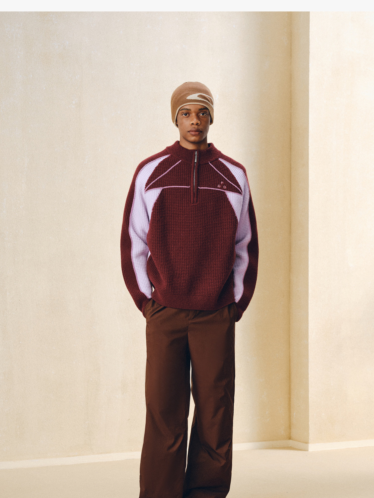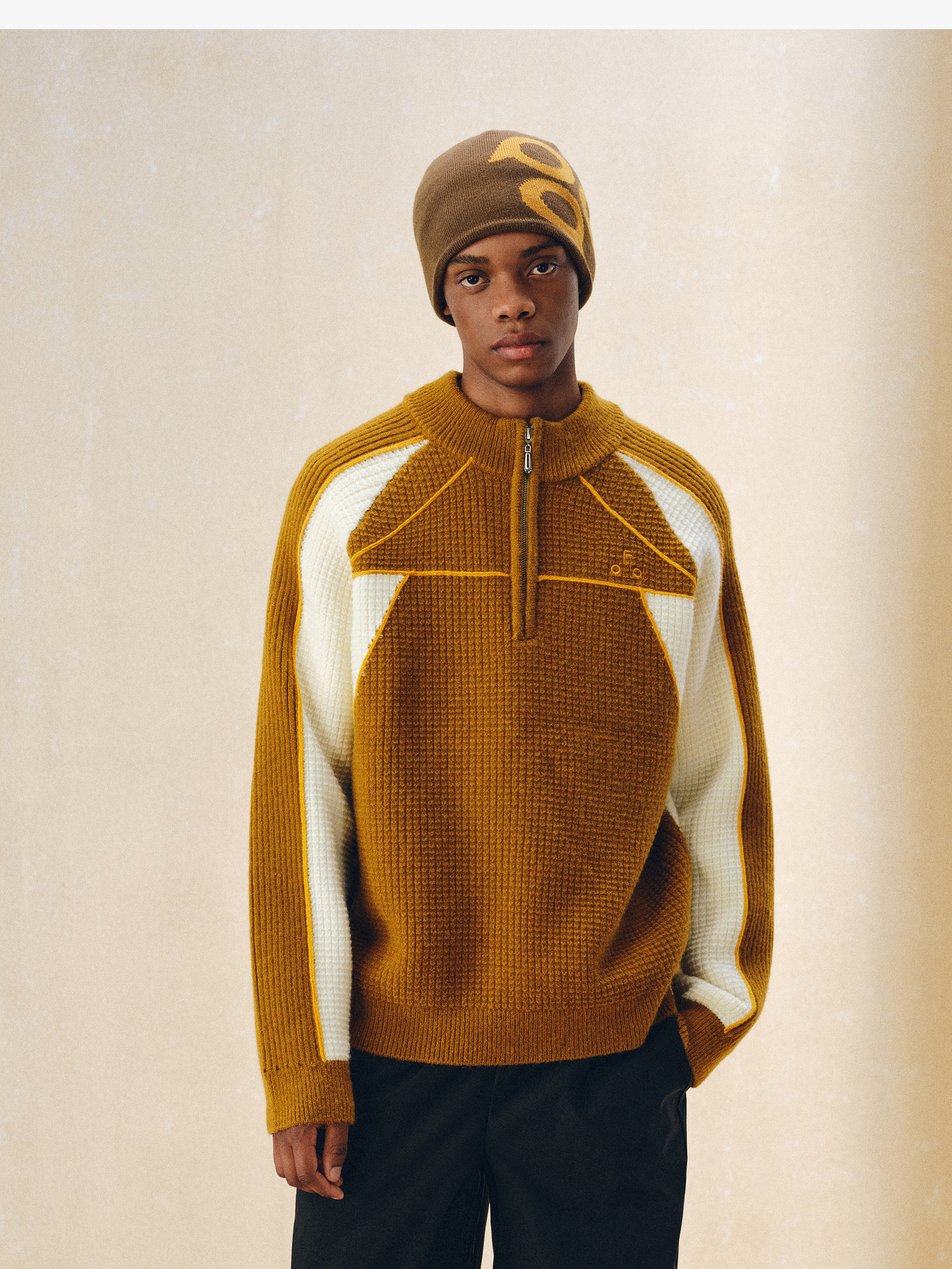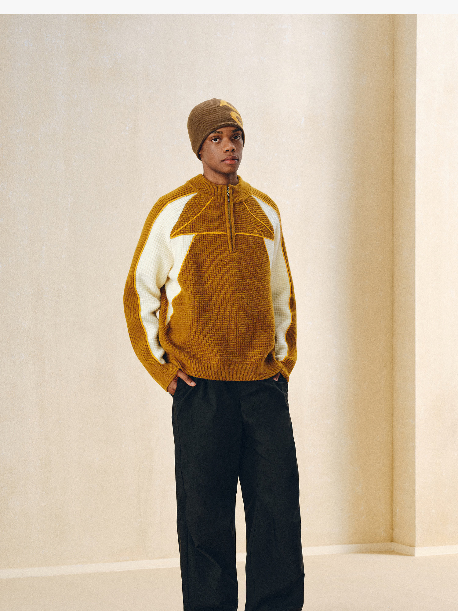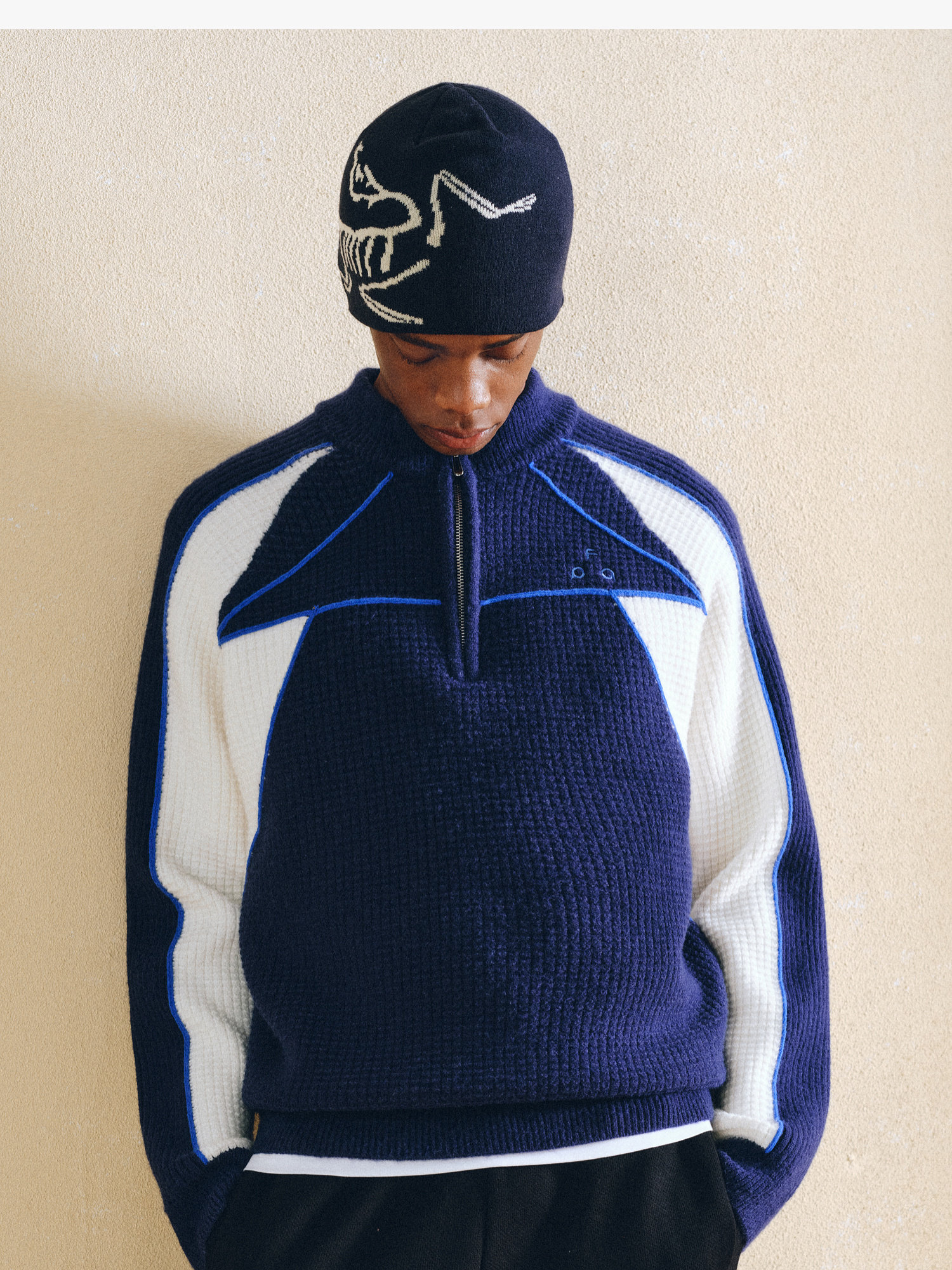 Fpa Half-Zip Sports Outdoor Color-Blocked Sweater Spring and Autumn Pullover Retro Couple Outfit High-End Knitwear