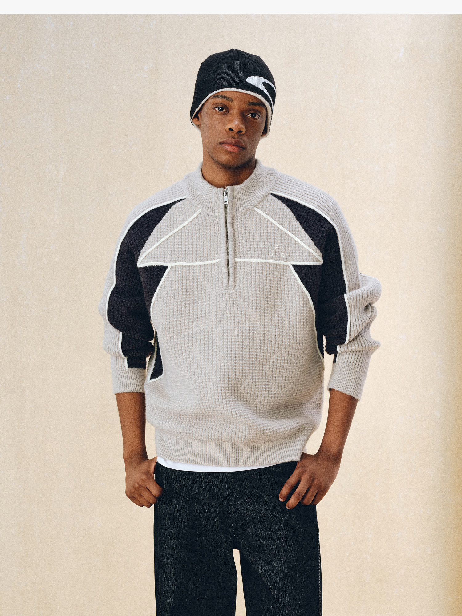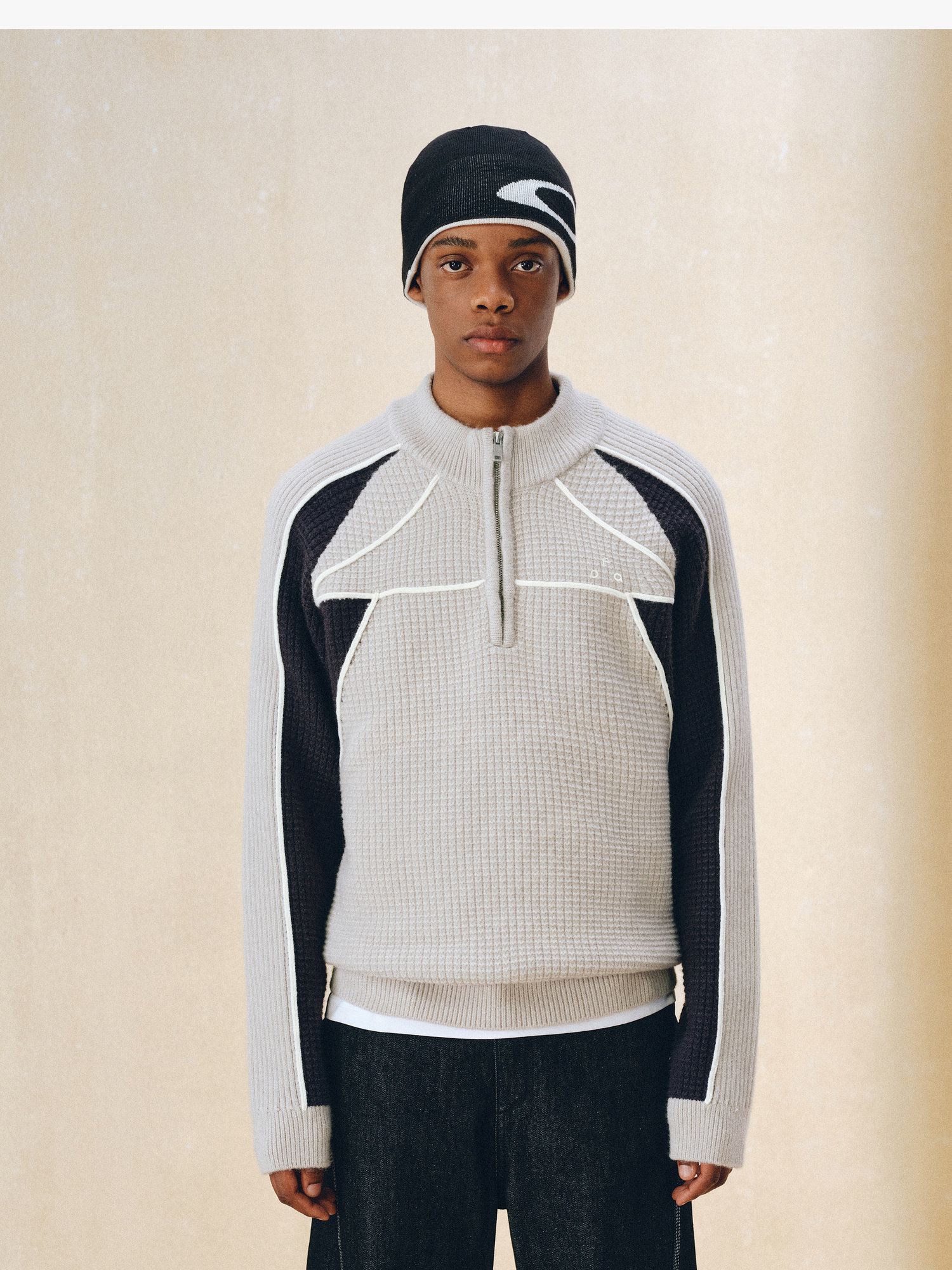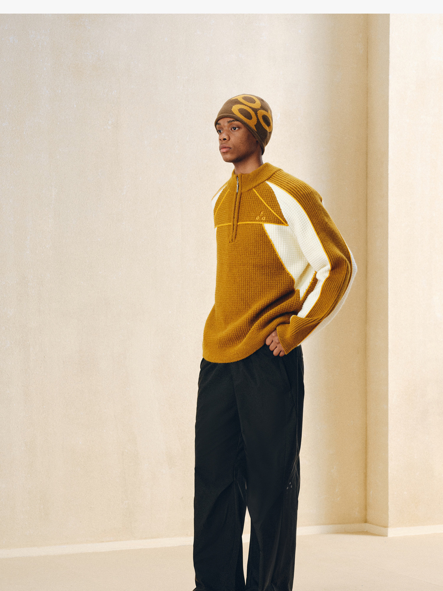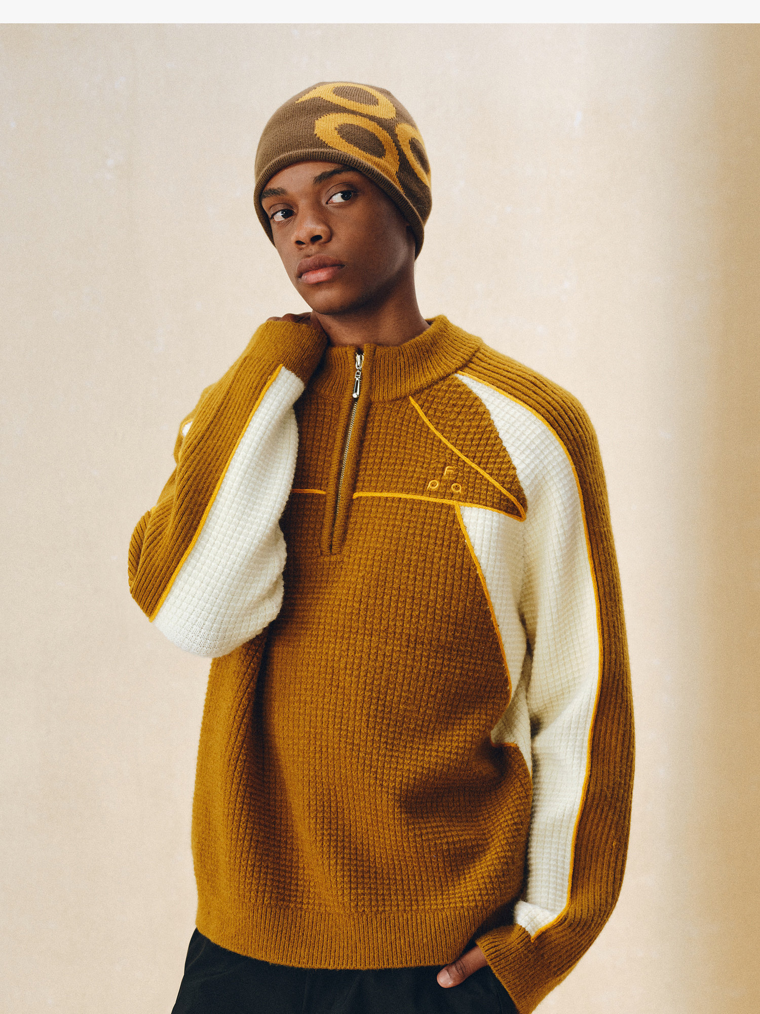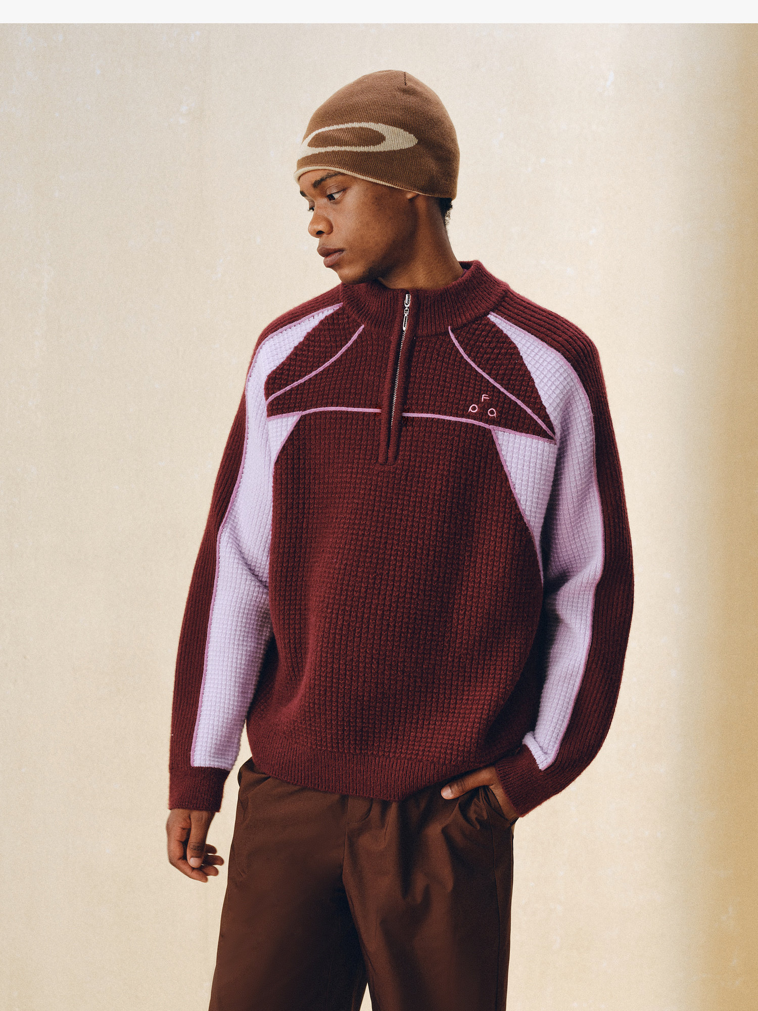 Fpa Half-Zip Sports Outdoor Color-Blocked Sweater Spring and Autumn Pullover Retro Couple Outfit High-End Knitwear