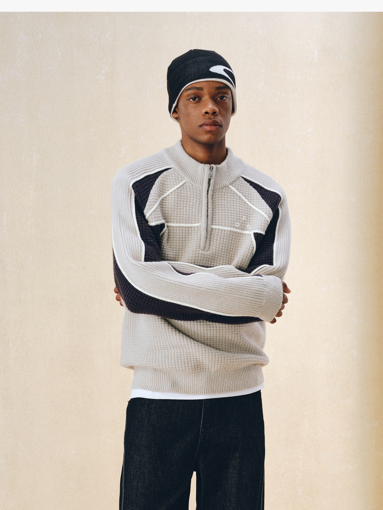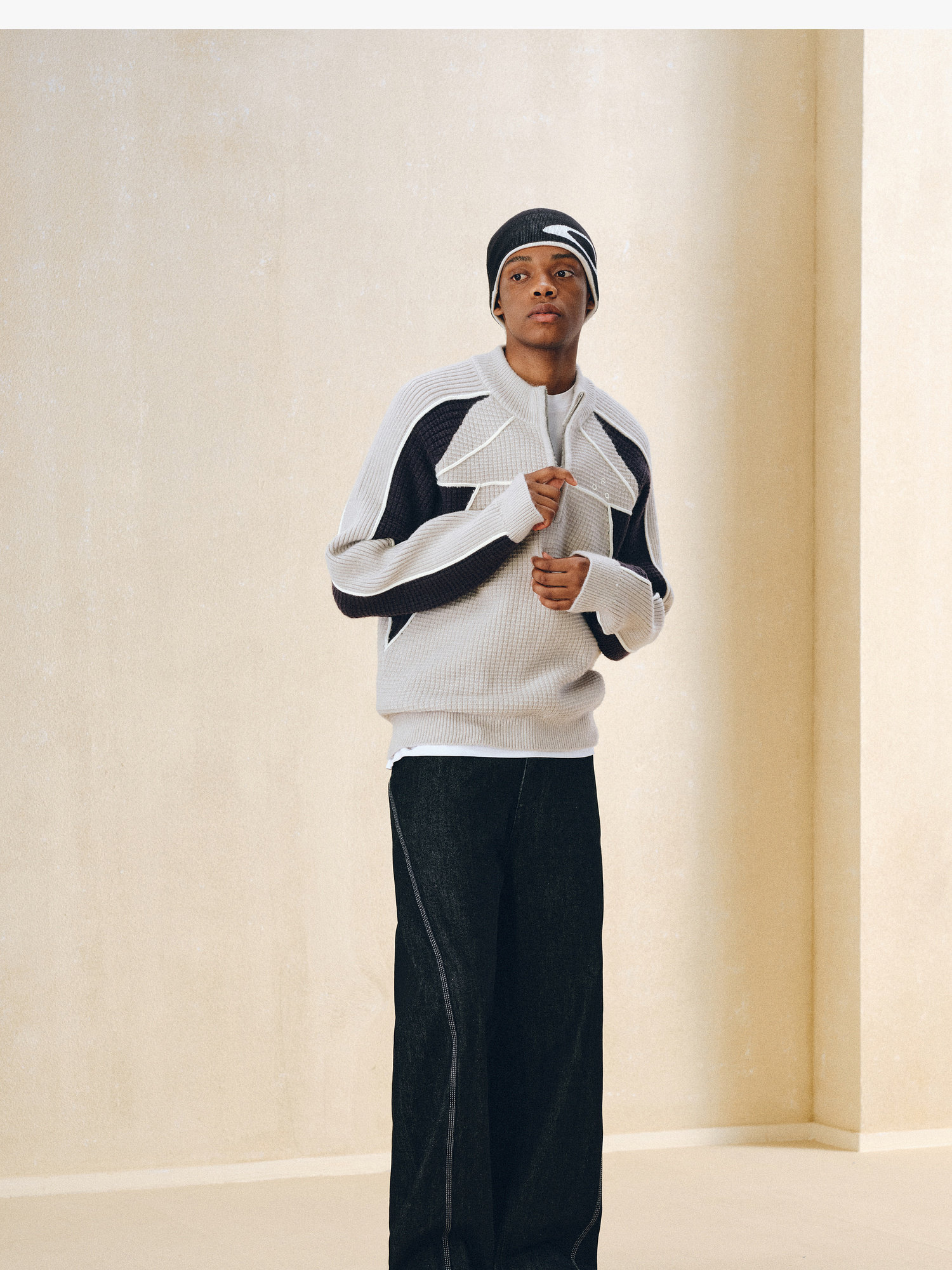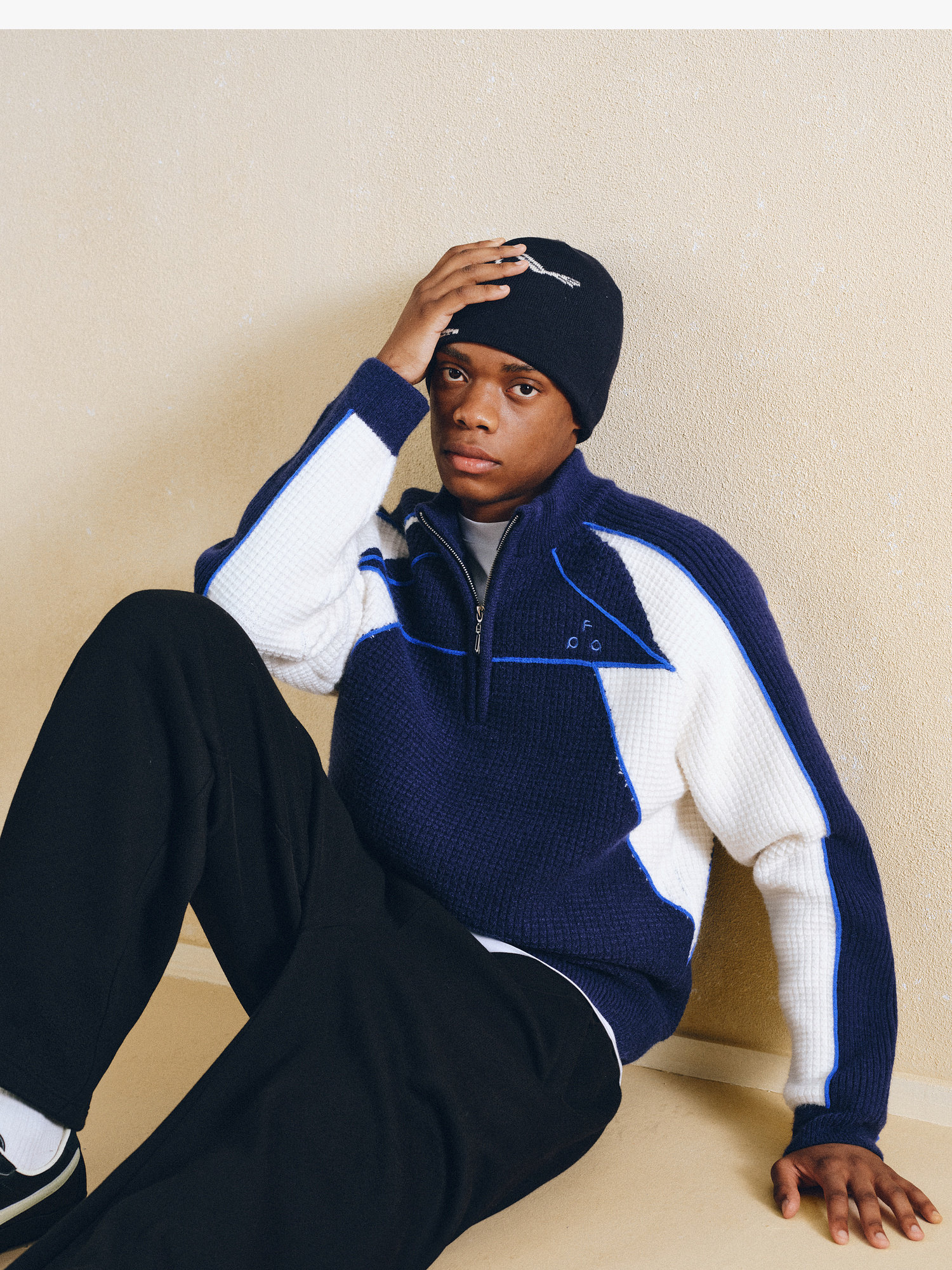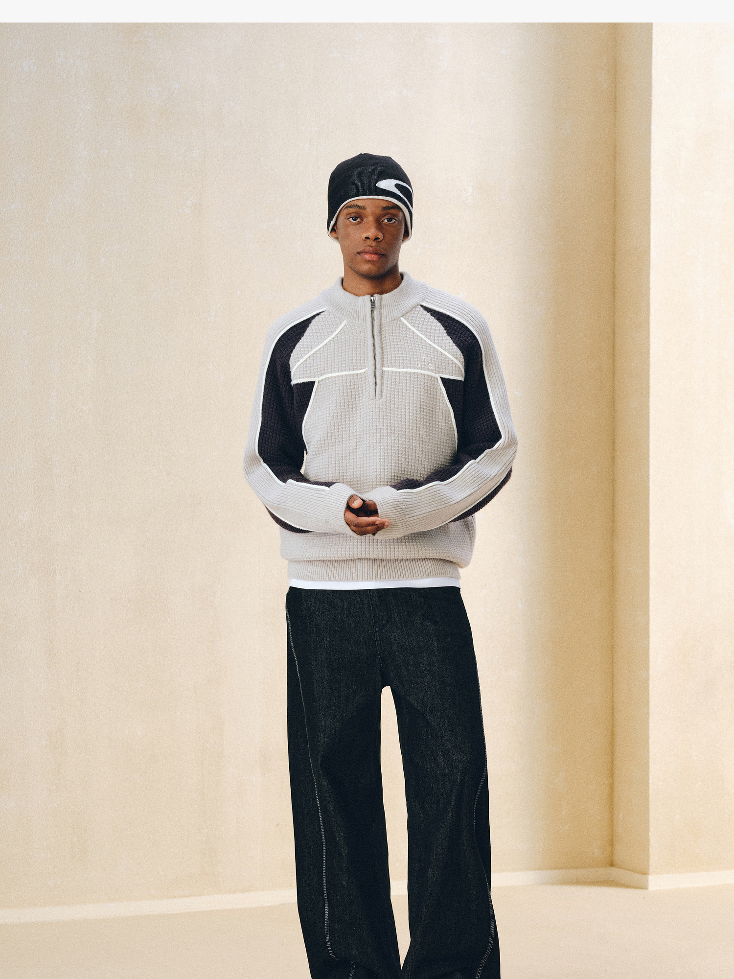 Fpa Half-Zip Sports Outdoor Color-Blocked Sweater Spring and Autumn Pullover Retro Couple Outfit High-End Knitwear