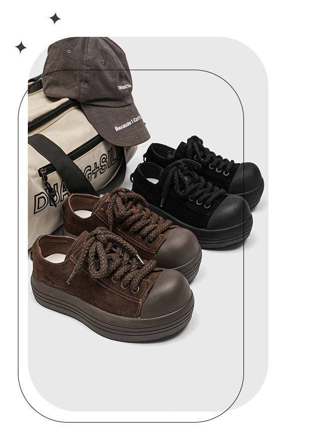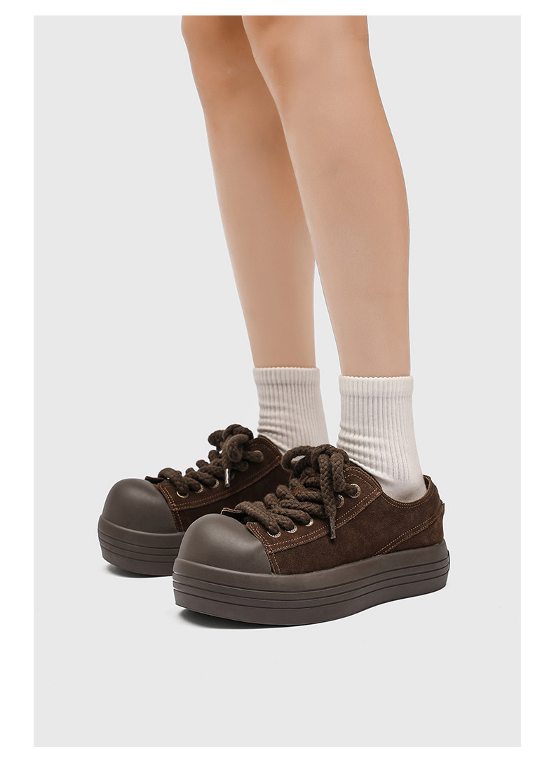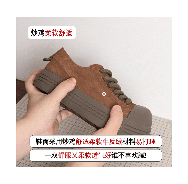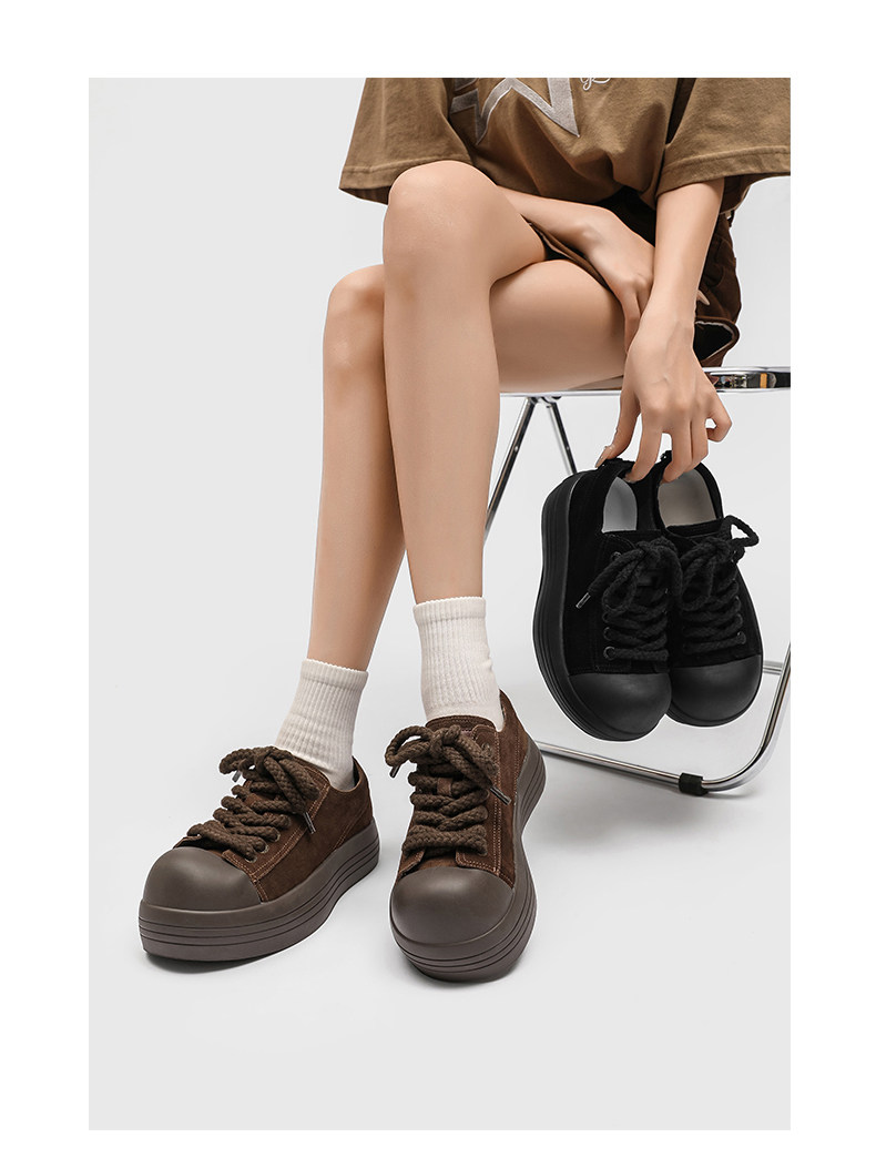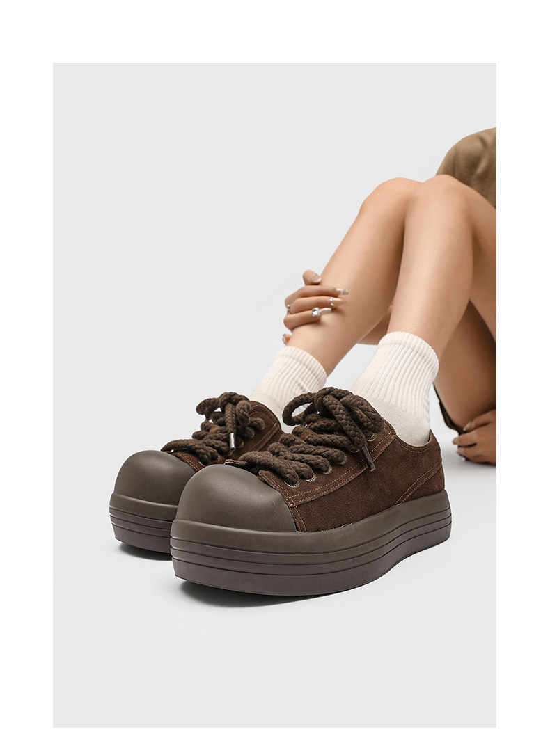 Hong Kong Thick-Soled Niche Mickey Big-Toe Shoes for Women, 2025 Autumn New Retro Suede Versatile Sneakers, Ugly-Cute Bread Shoes