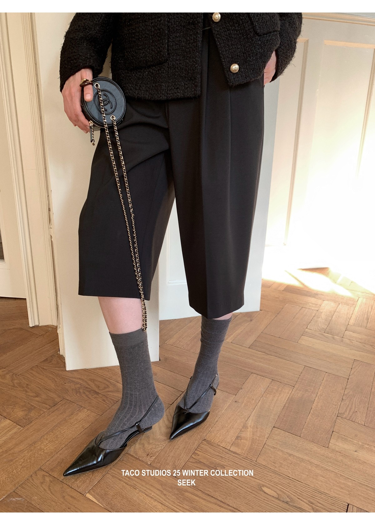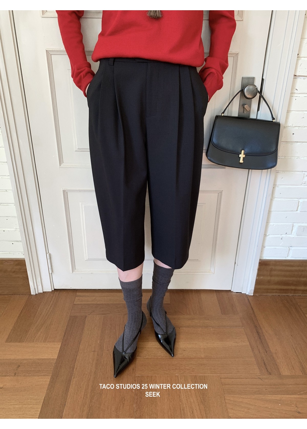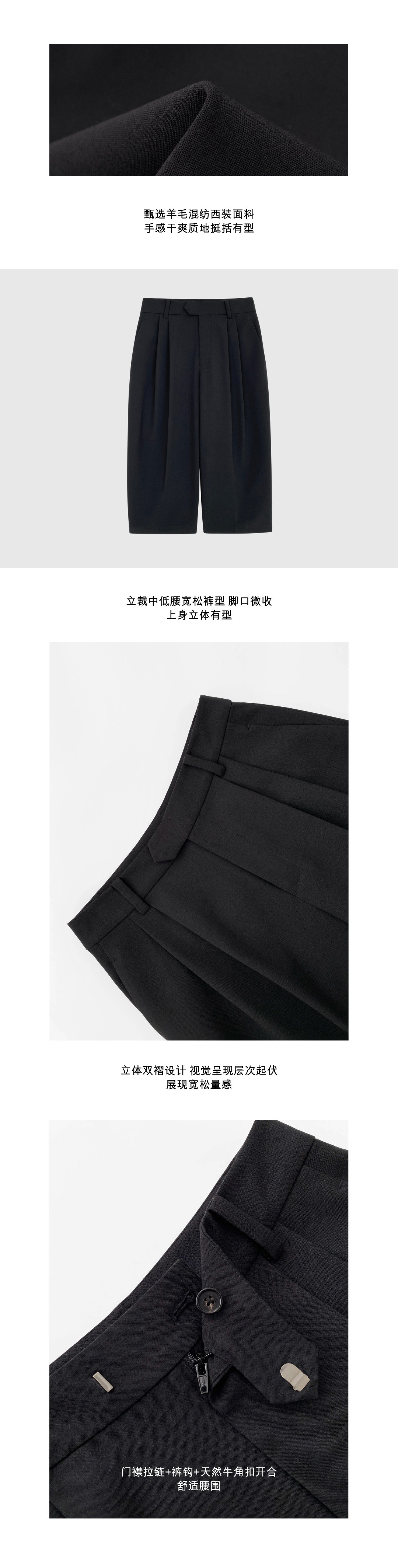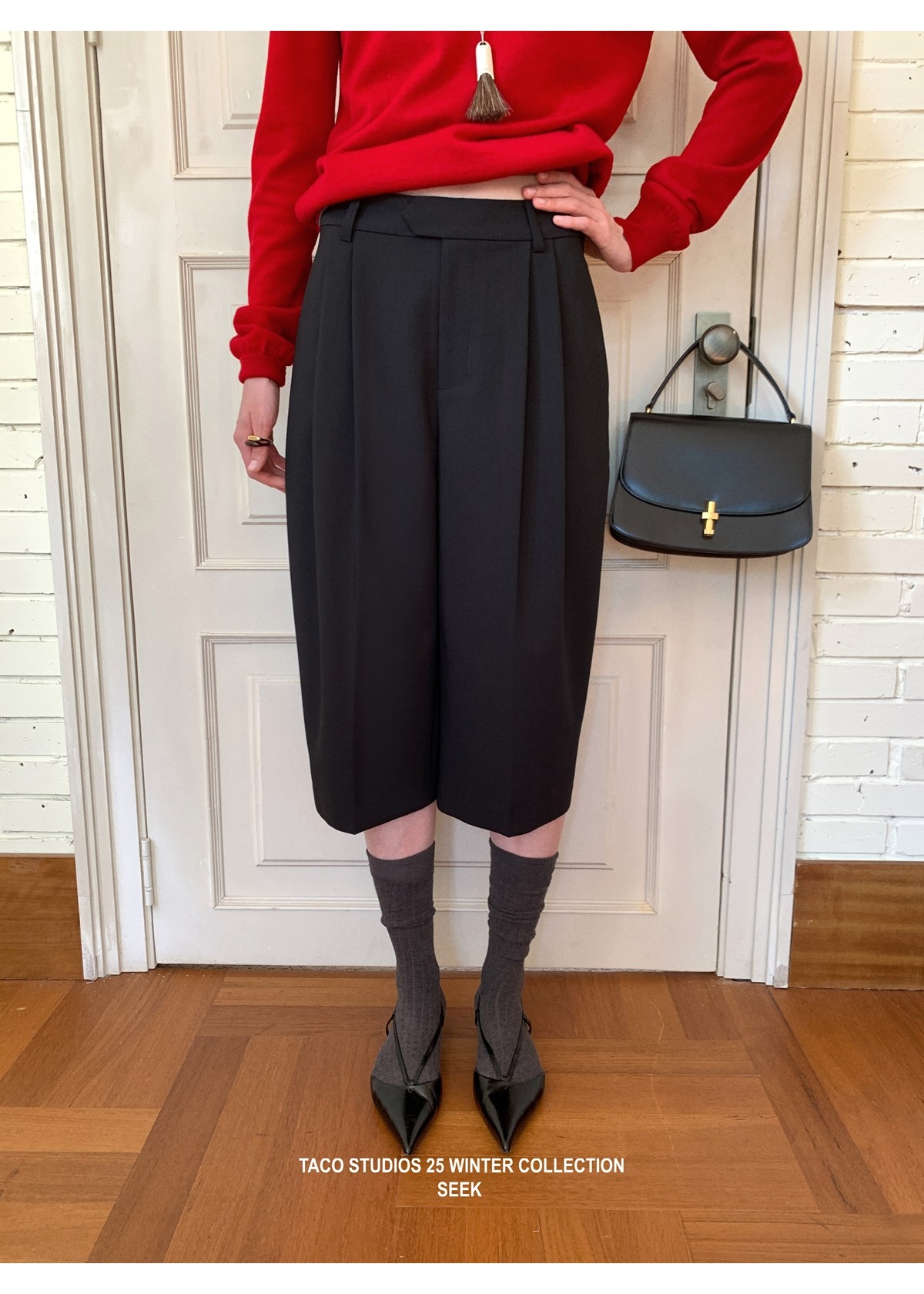 Taco Studios Stylish Wool Loose Casual Shorts Simple Commuter Wide-Leg Cigarette Pants