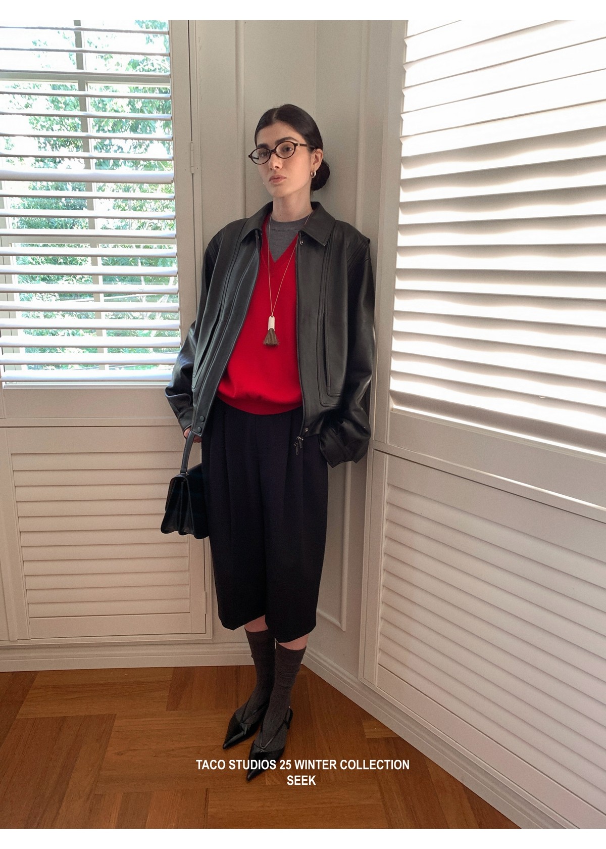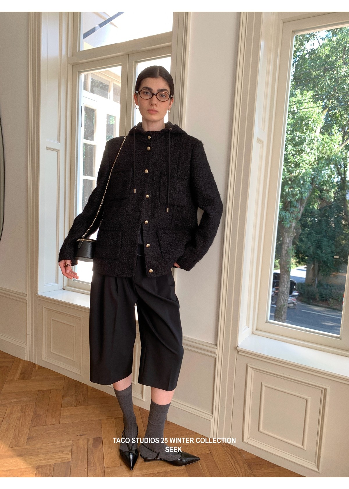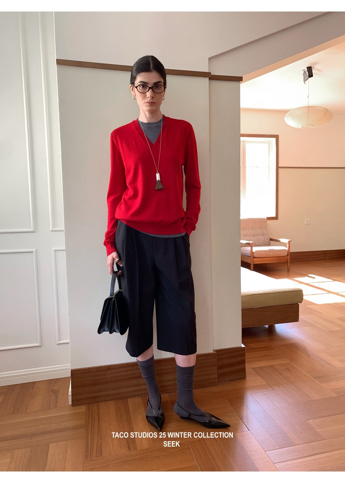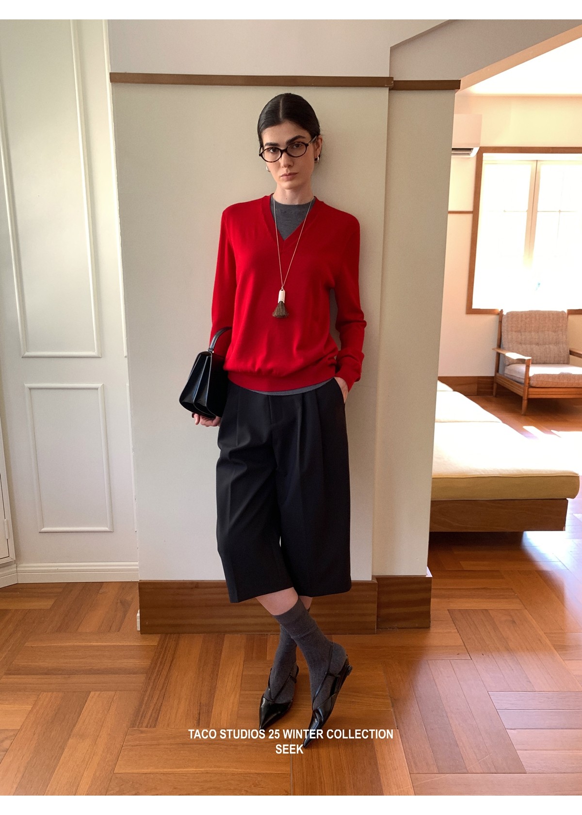 Taco Studios Stylish Wool Loose Casual Shorts Simple Commuter Wide-Leg Cigarette Pants