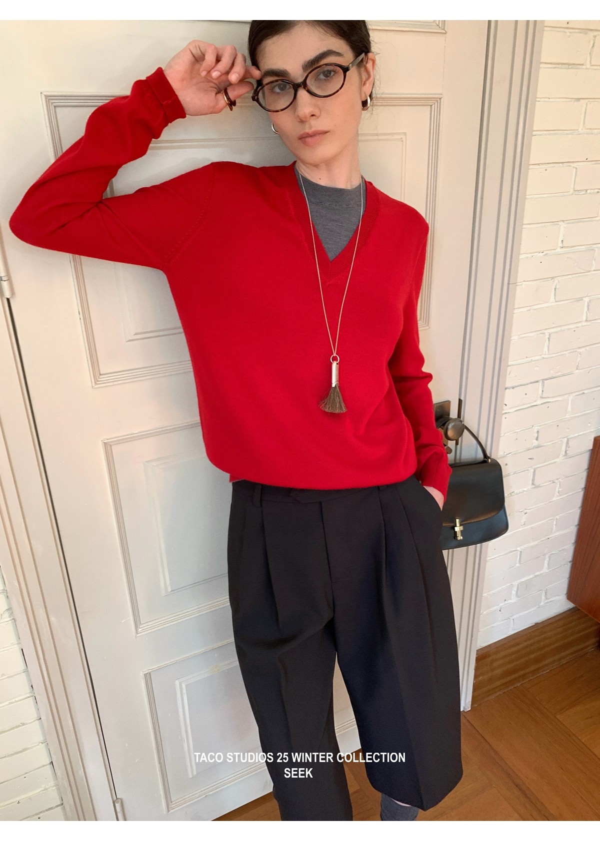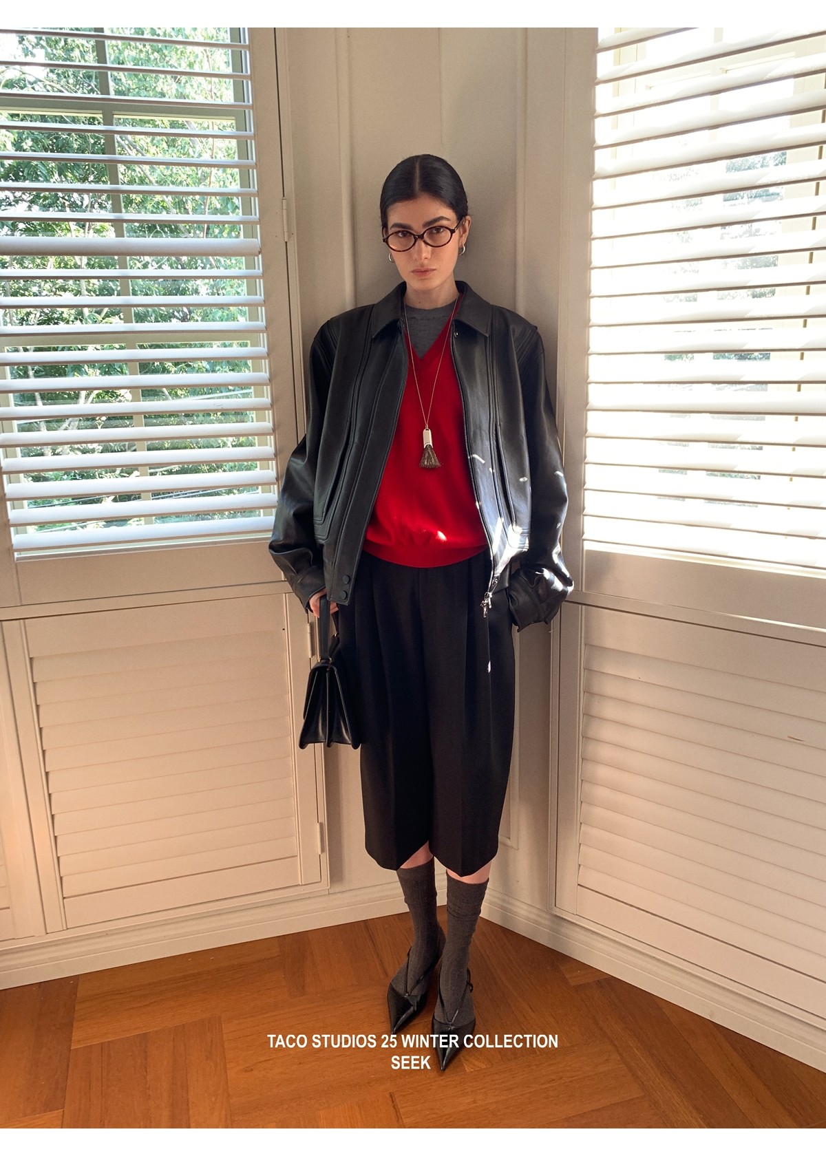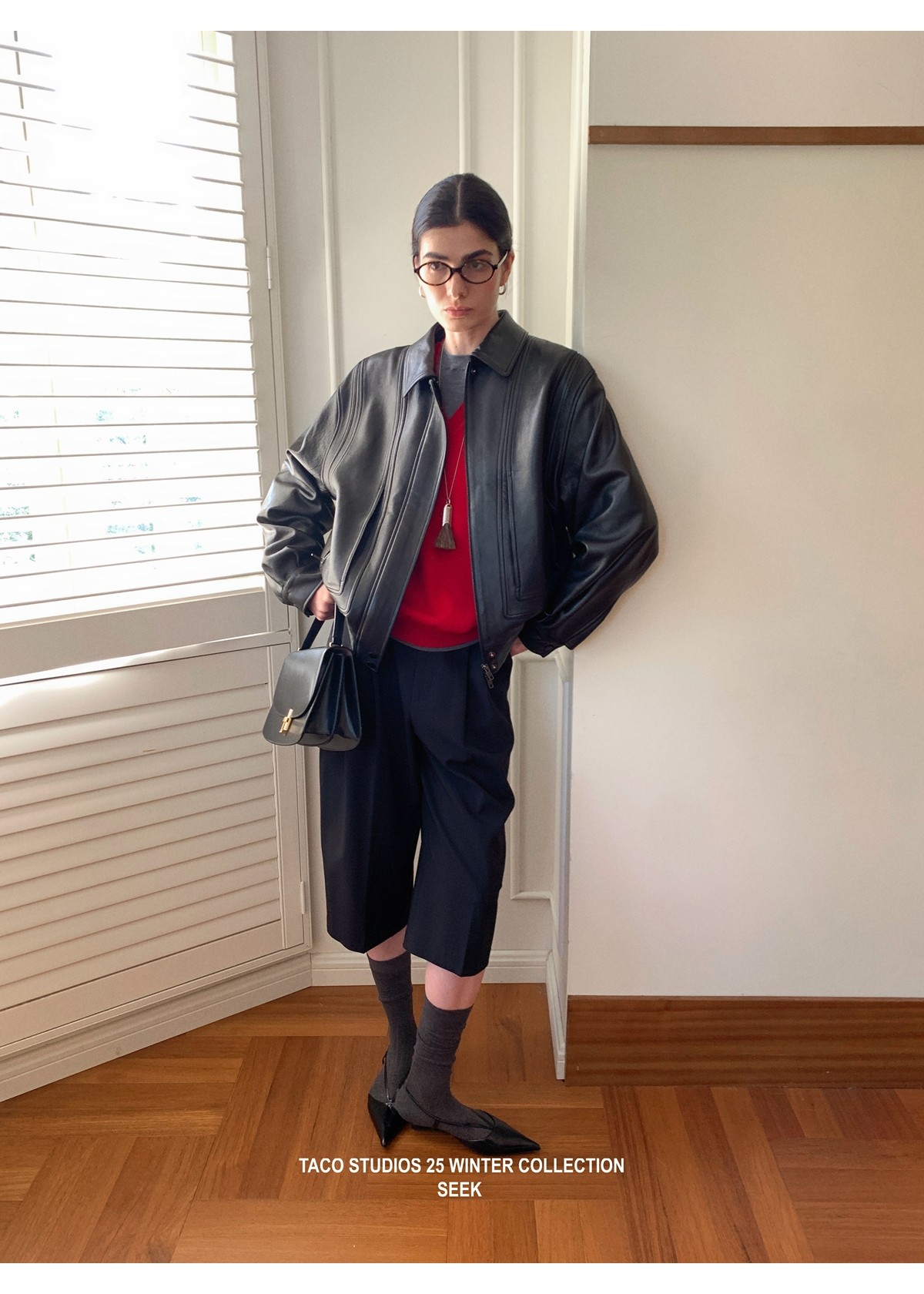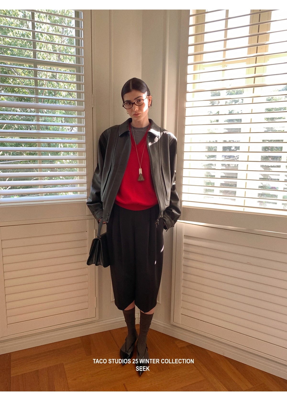 Taco Studios Stylish Wool Loose Casual Shorts Simple Commuter Wide-Leg Cigarette Pants