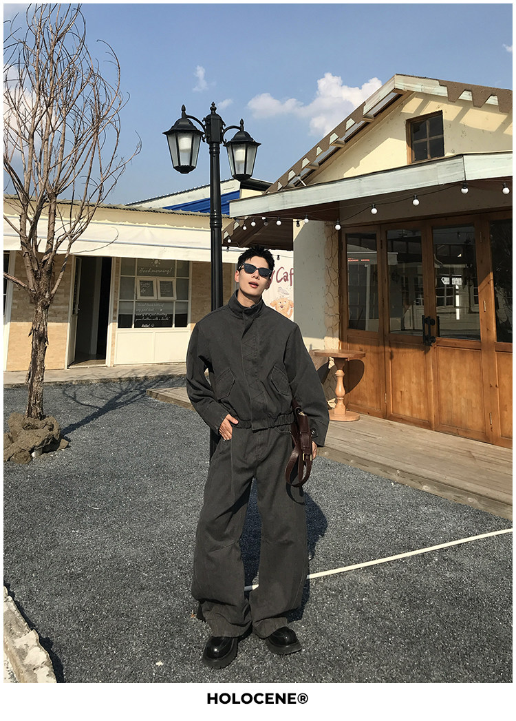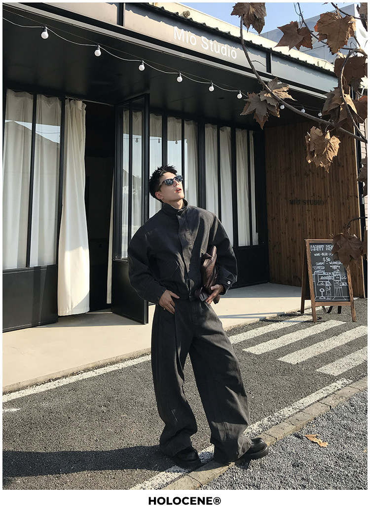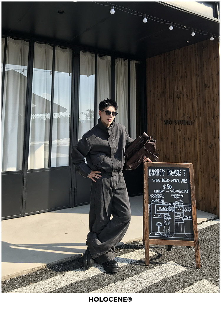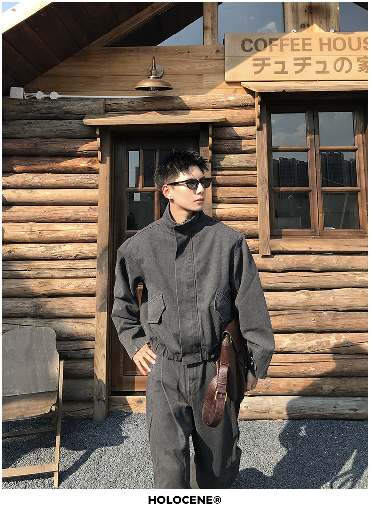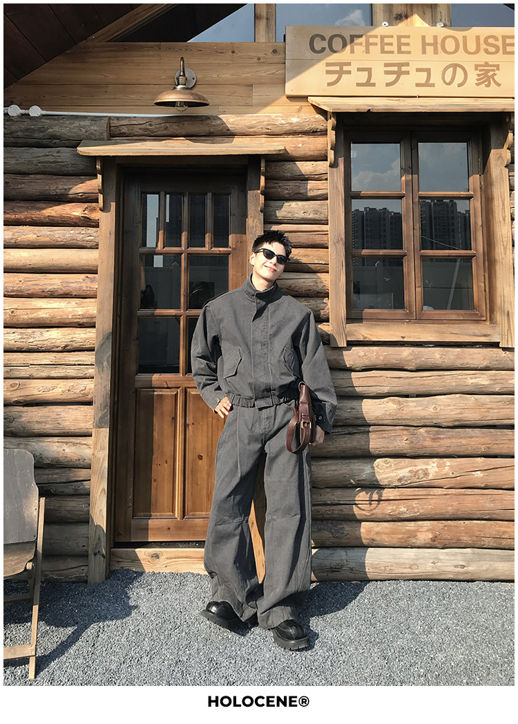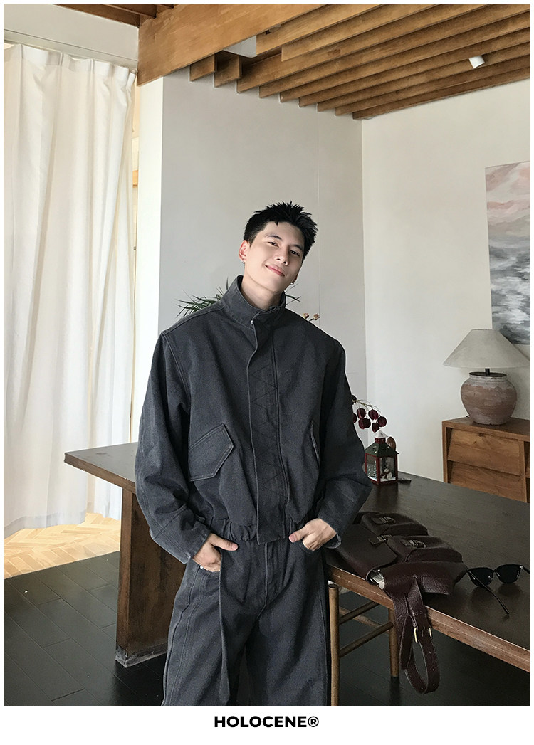 Holocene American-Style Trendy Brand Autumn Old Money Pure Cotton Denim Jacket Set Men's High Street Straight-Leg Jeans Set