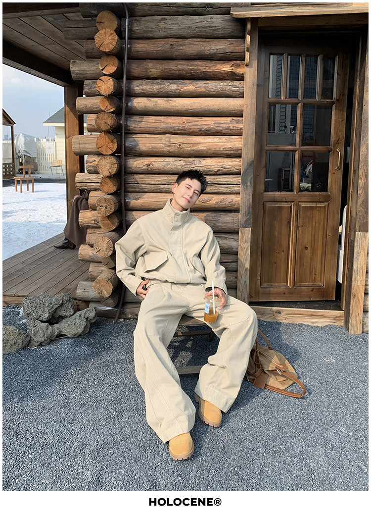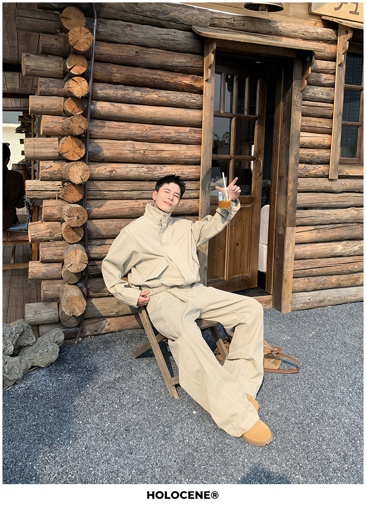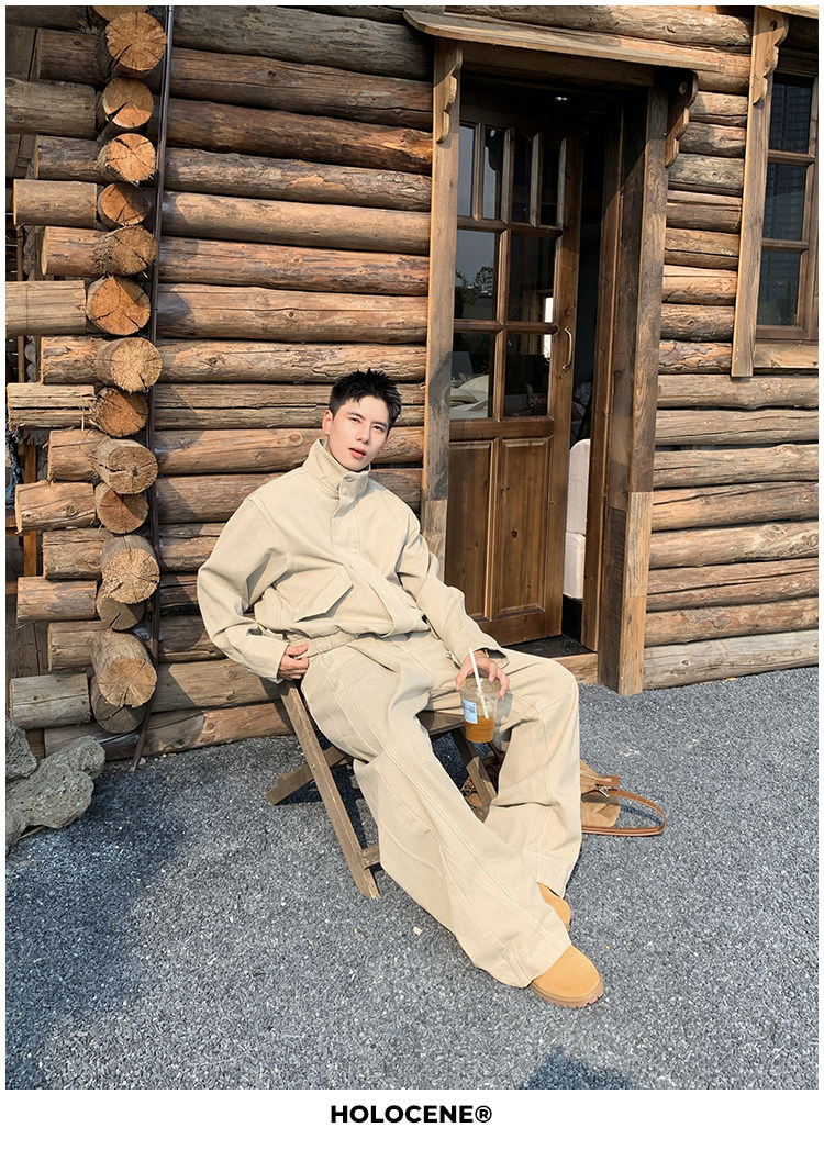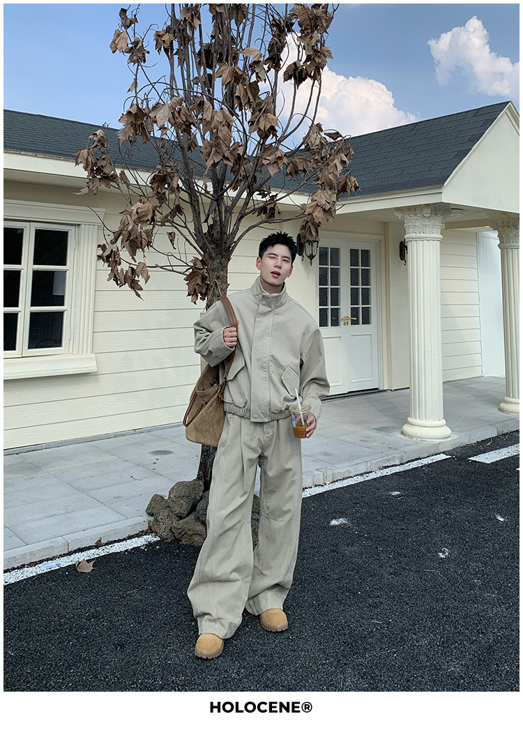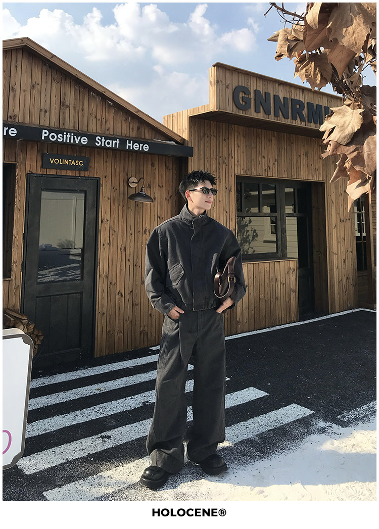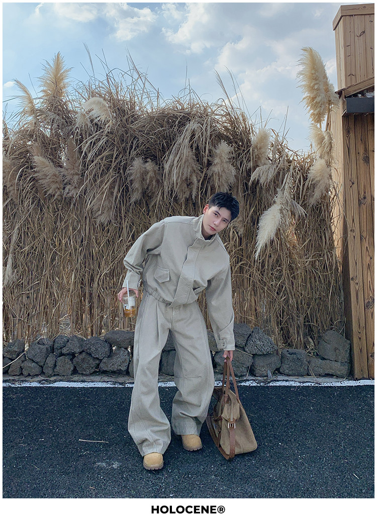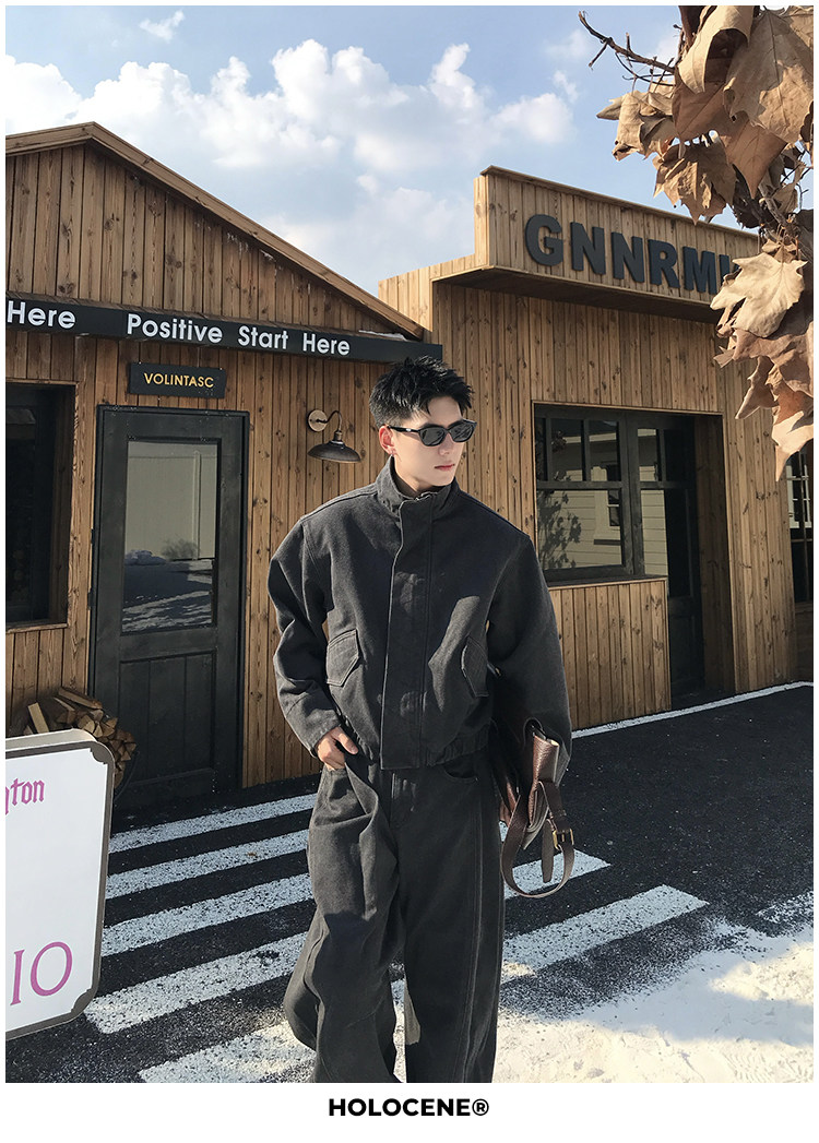 Holocene American-Style Trendy Brand Autumn Old Money Pure Cotton Denim Jacket Set Men's High Street Straight-Leg Jeans Set