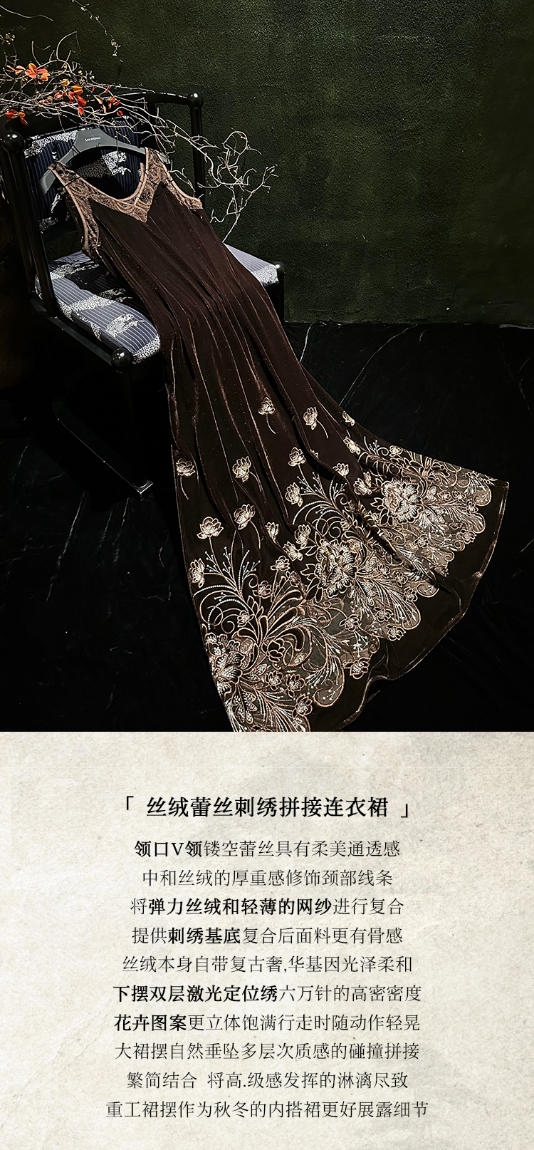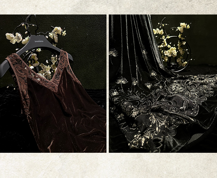 Sanzhi Heihua (Black Flower)'9/25 New at 10 Am 5% off 【Hanabuki Tsubaki】Velvet Lace Embroidery Patchwork Dress