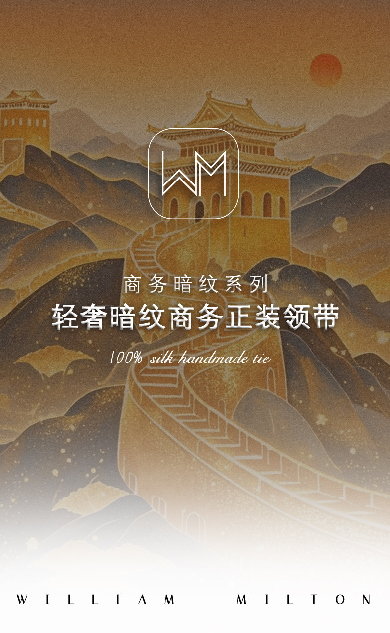 William Milton New Product National Trend Great Wall Pattern Silk Tie Men's Mulberry Silk Light Luxury Tie Gift Box