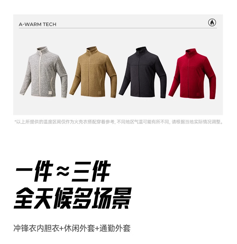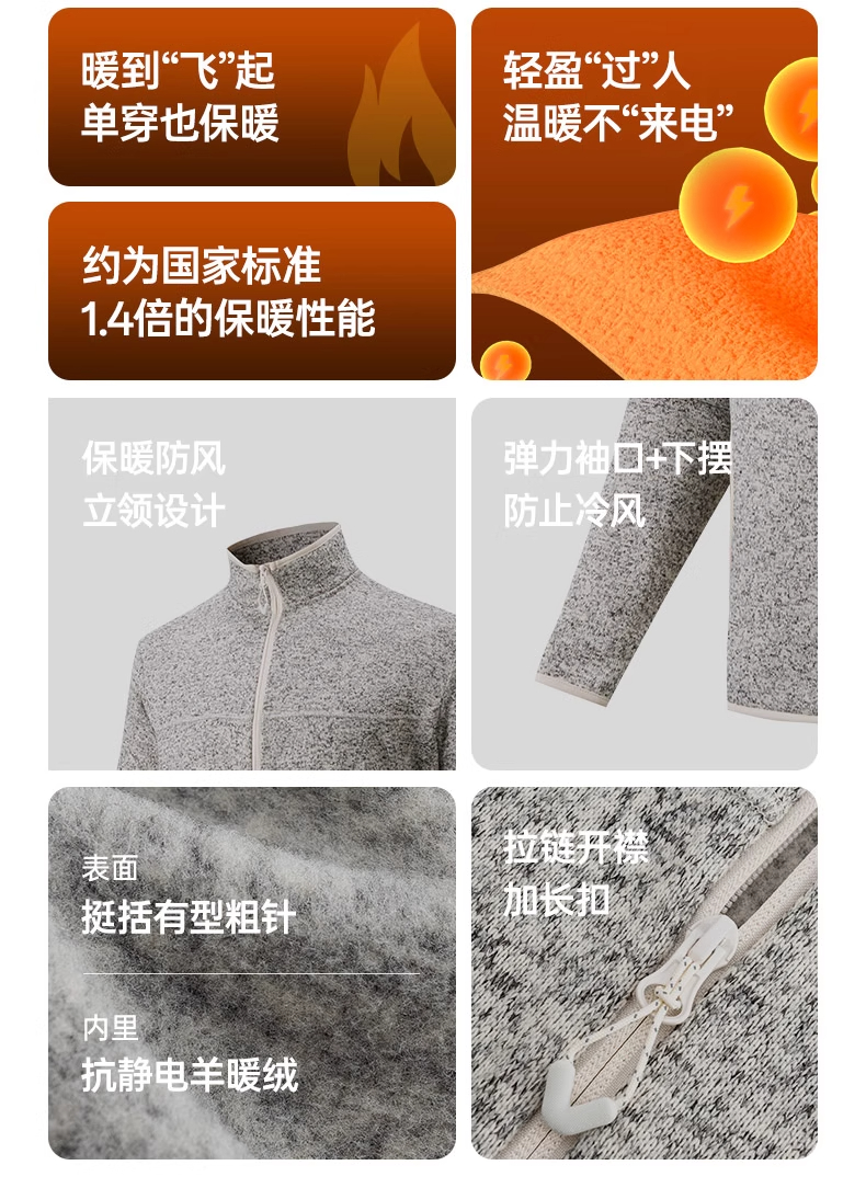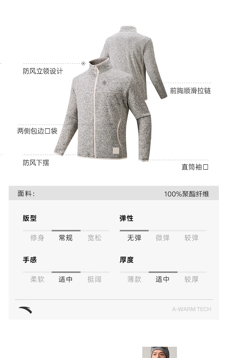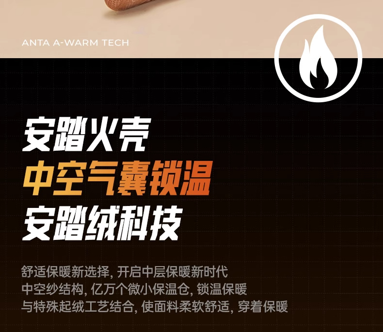 Anta Fire Shell 3.0 Anti-Static Thick Fleece Jacket for Men, Warm 2025 Autumn/Winter New Style Inner Stand Collar Coat