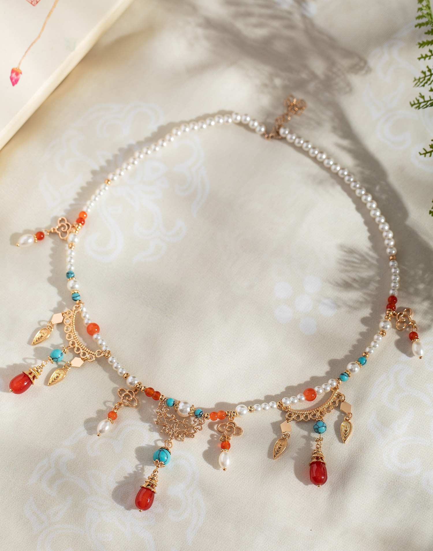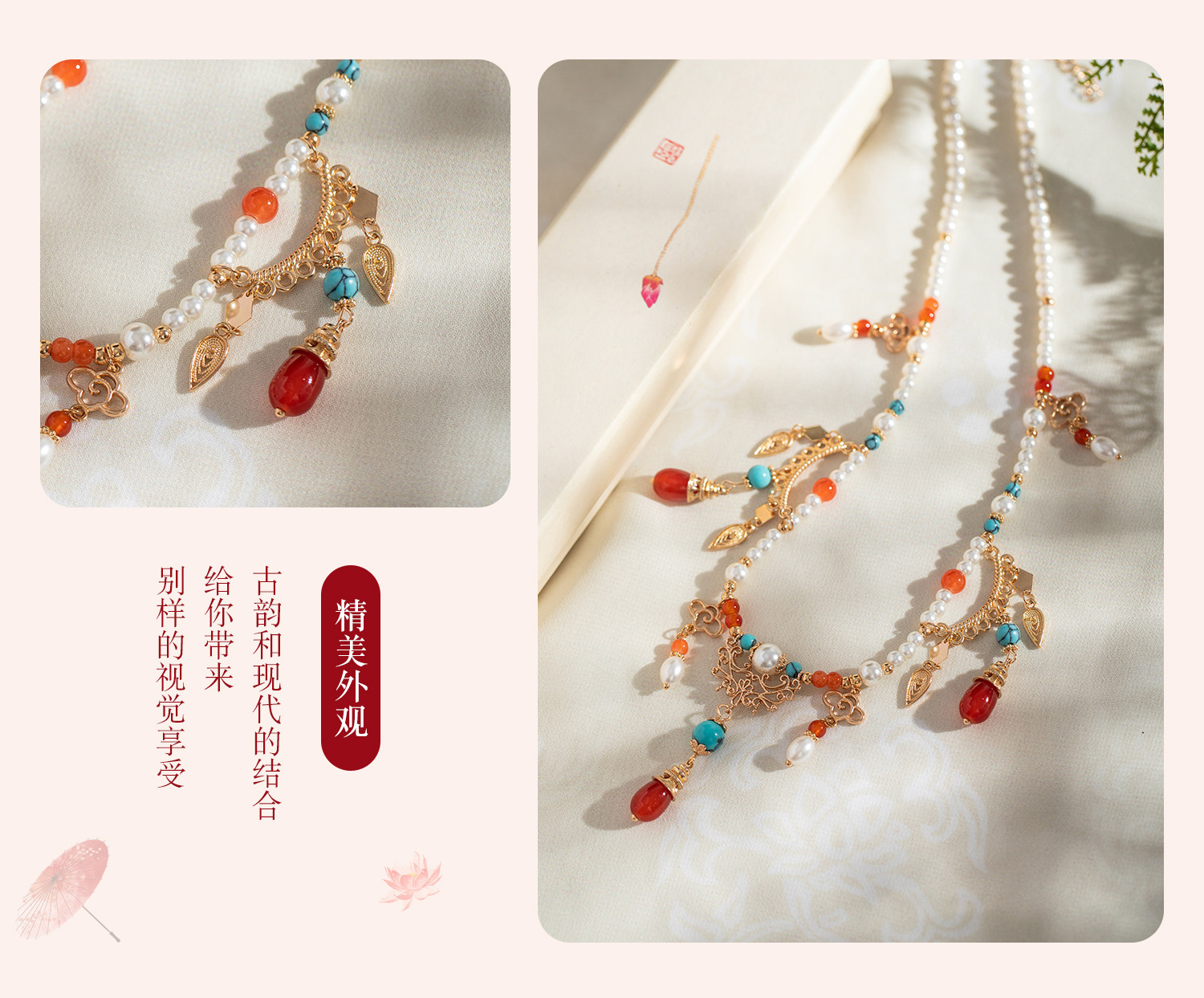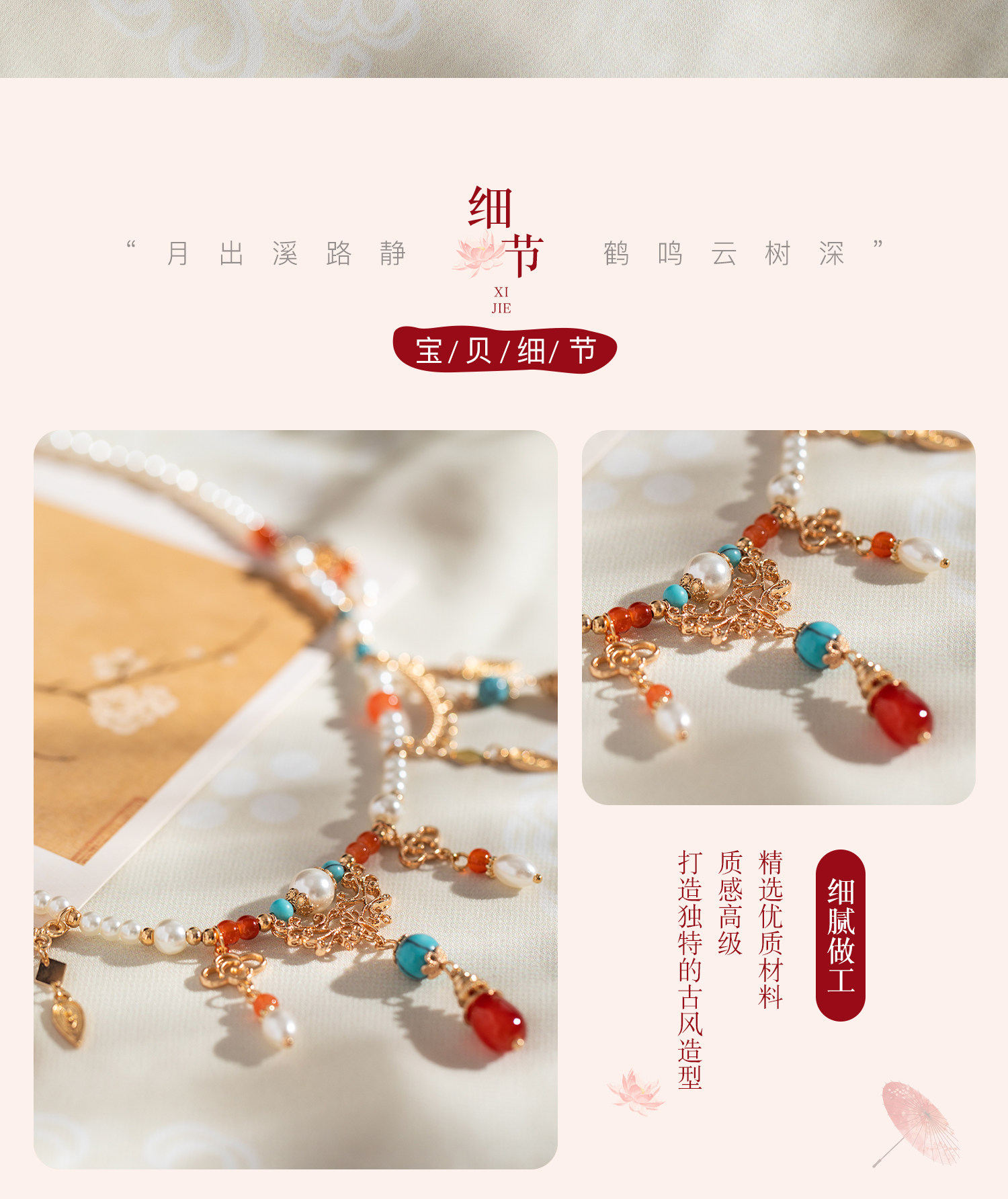 【Jin Hua】National Style New Chinese Necklace with Pearl Tassels, Hanfu Accessories, Ancient Style Jewelry, Cheongsam Collarbone Chain Necklace