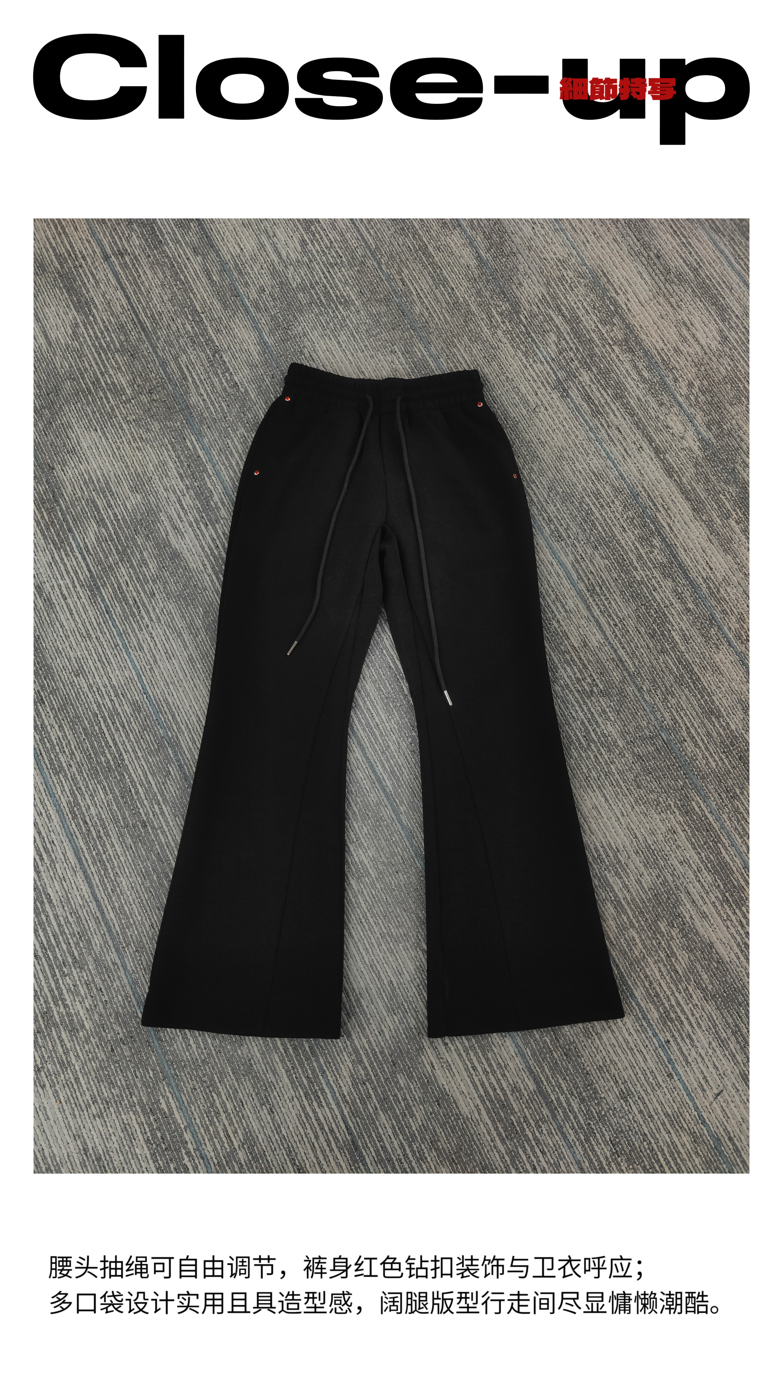 Loyaltyofficial2025S Black Sweatshirt and Sweatpants Diamond Buckle Set Casual Sports Cleanfit American Style