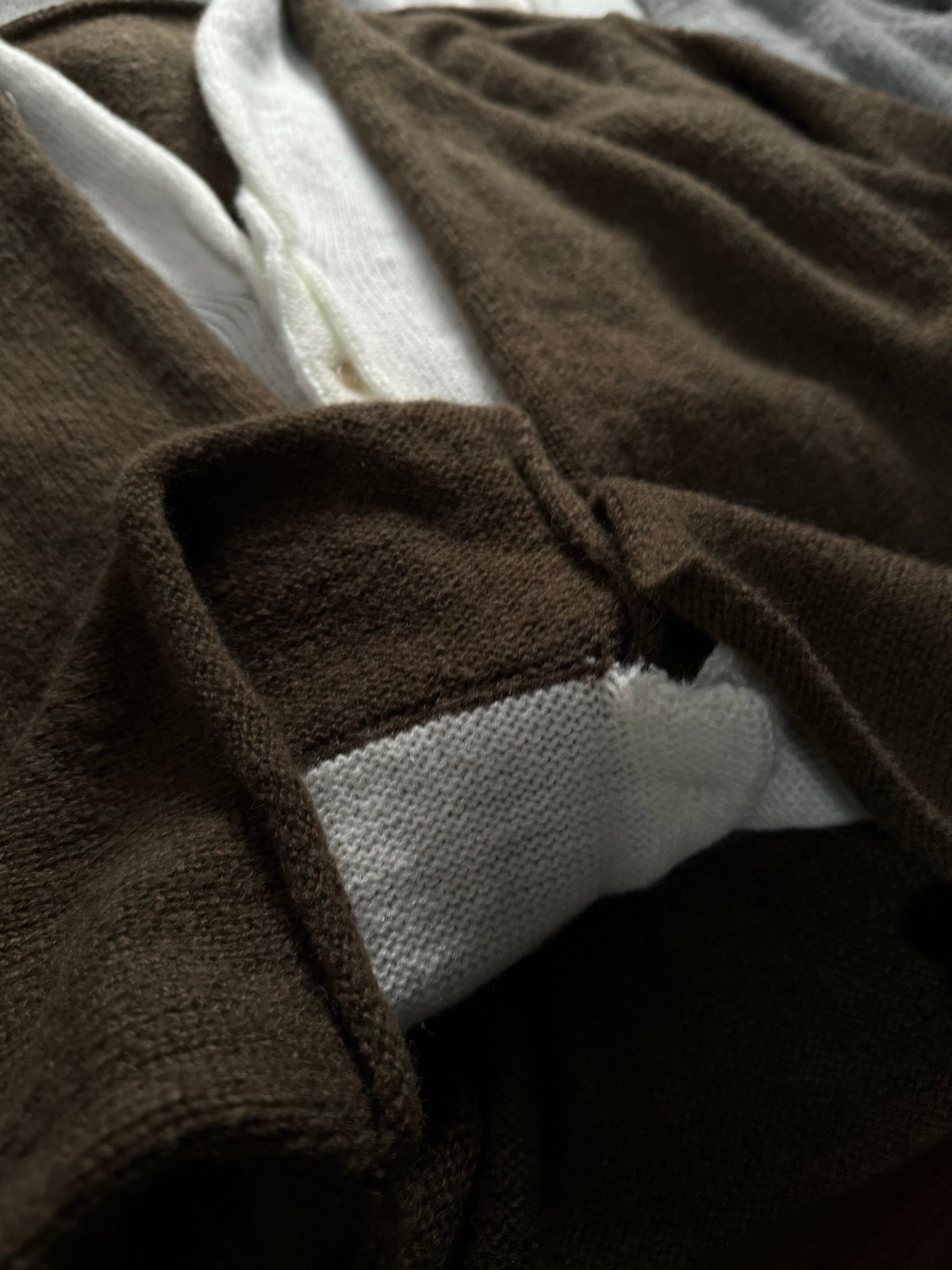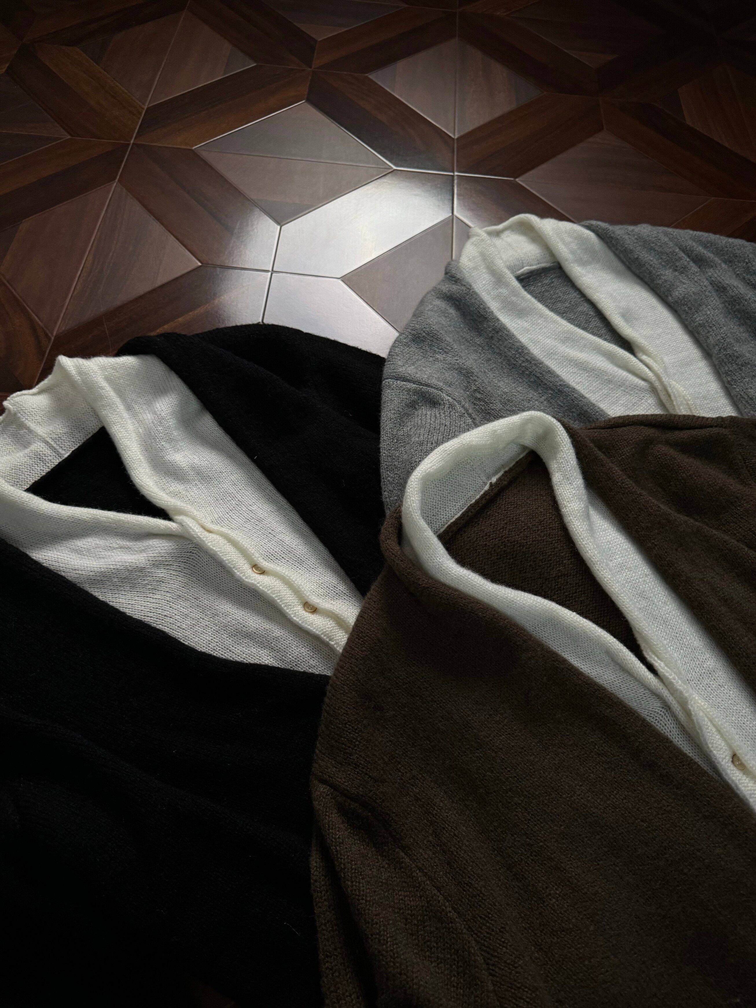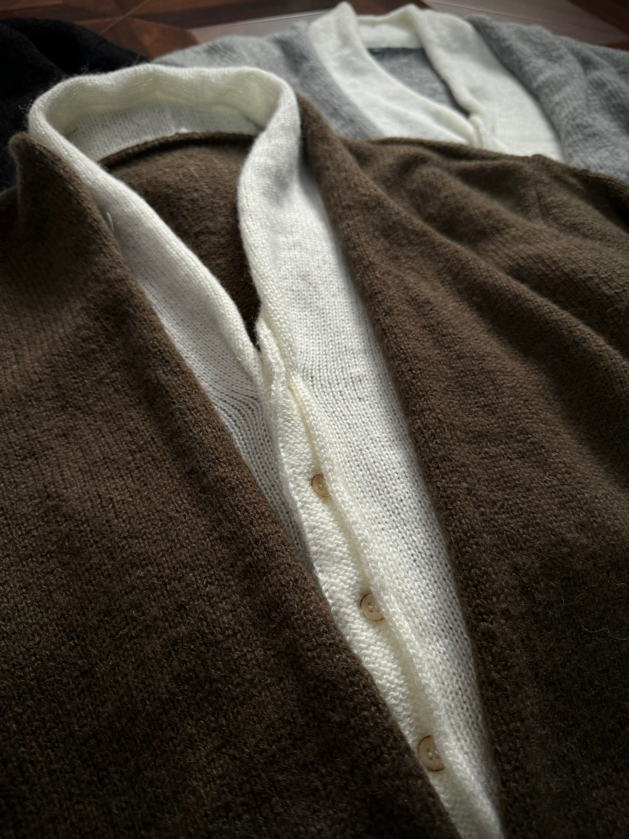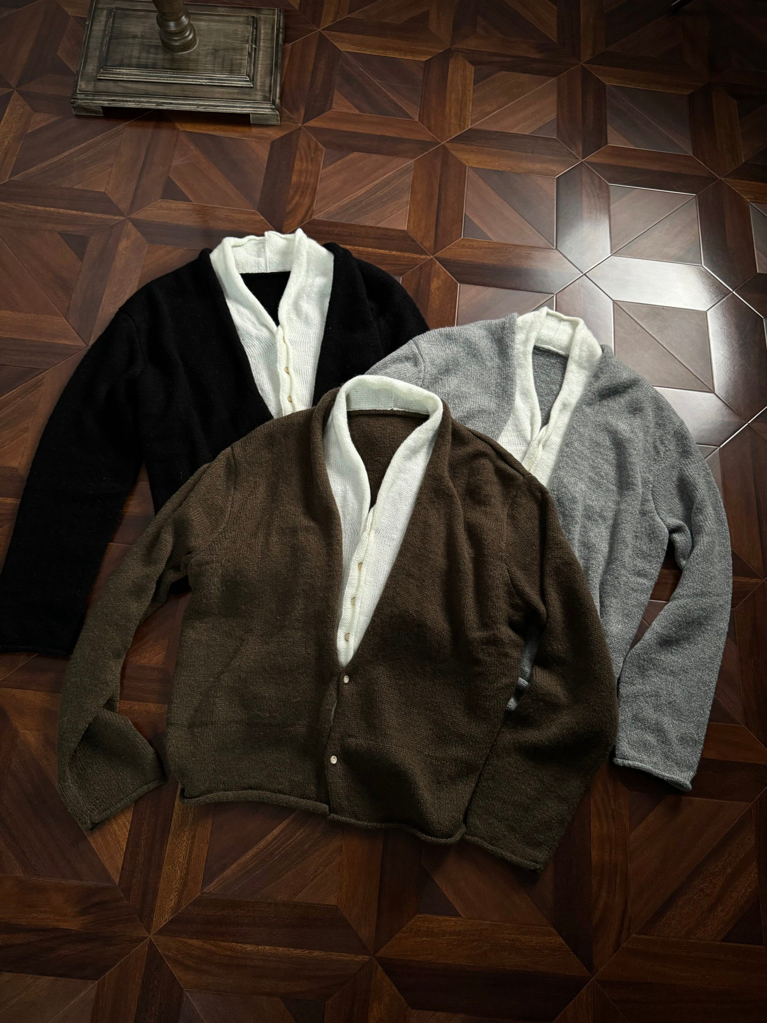 Oclin Elegant Double-Breasted Sweater Cardigan Knitted Wool Blend Short Wide Fit Faux Two-Piece with Burnished Buttons