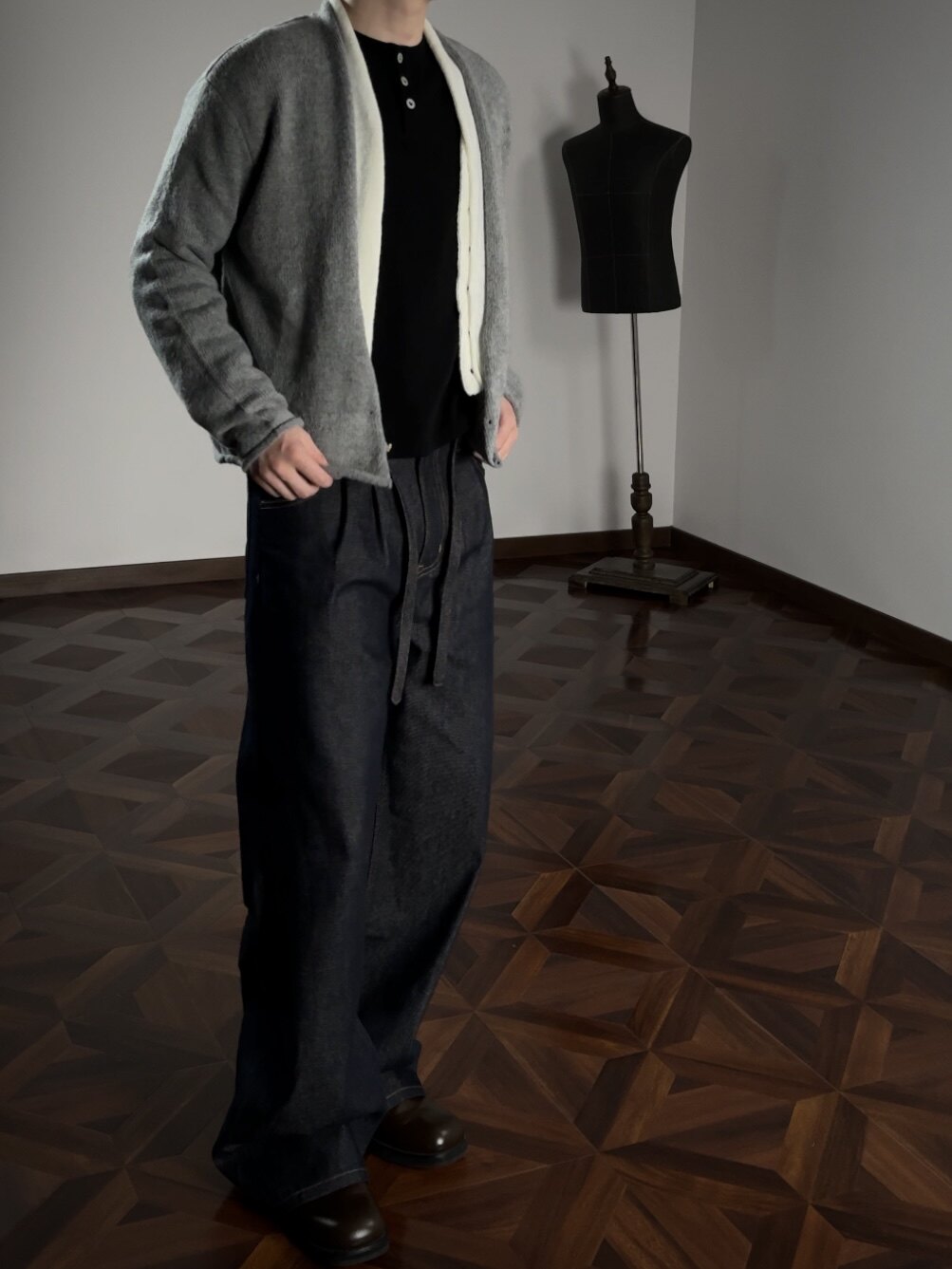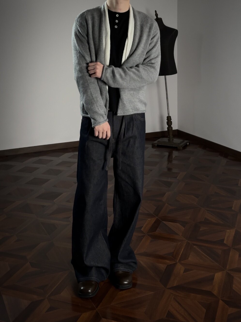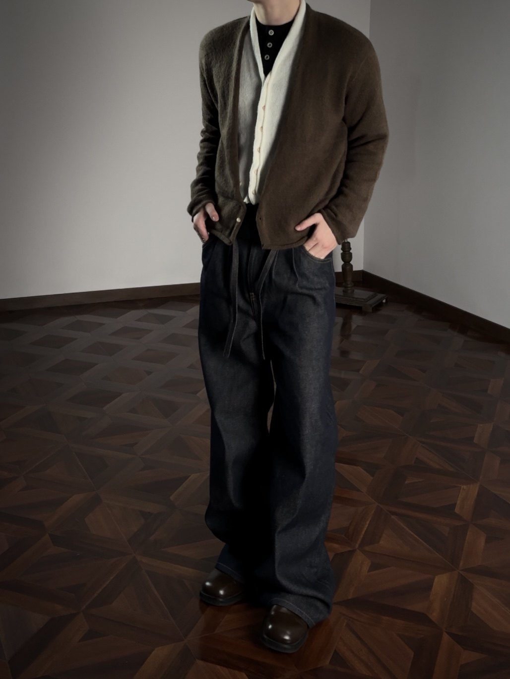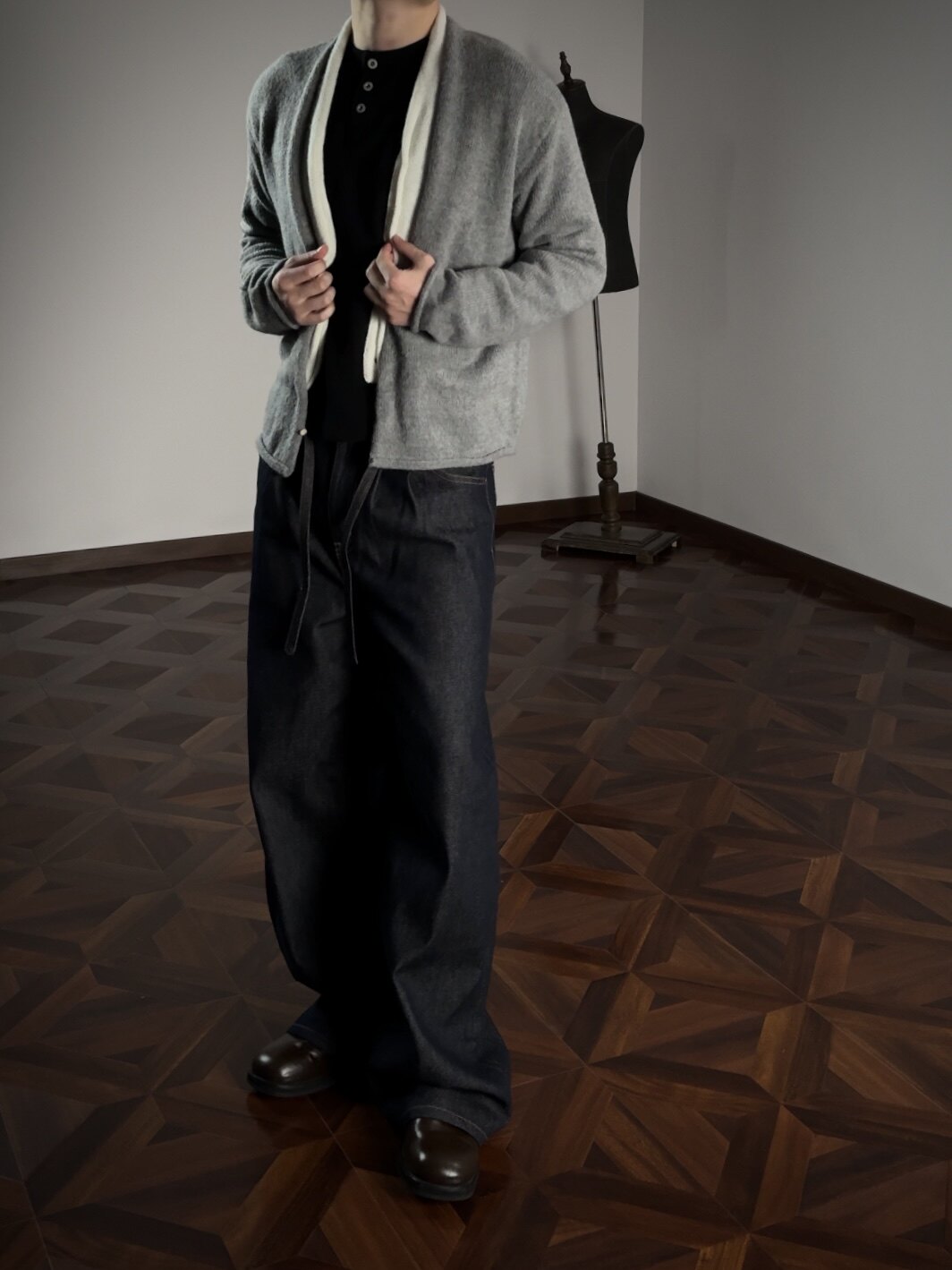 Oclin Elegant Double-Breasted Sweater Cardigan Knitted Wool Blend Short Wide Fit Faux Two-Piece with Burnished Buttons