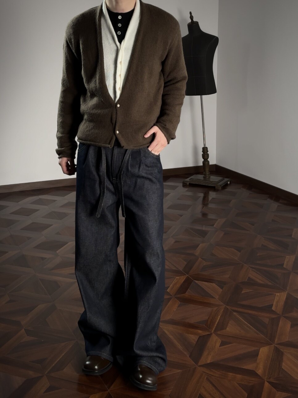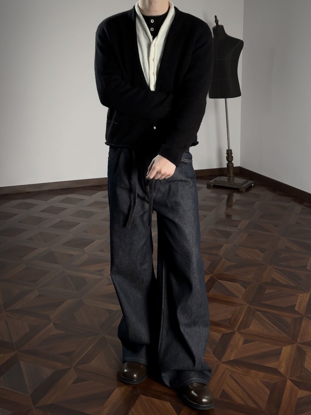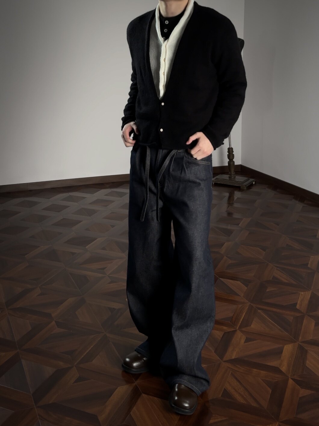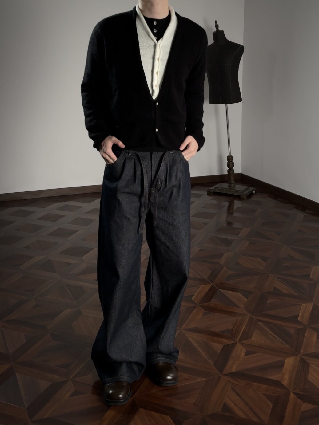 Oclin Elegant Double-Breasted Sweater Cardigan Knitted Wool Blend Short Wide Fit Faux Two-Piece with Burnished Buttons