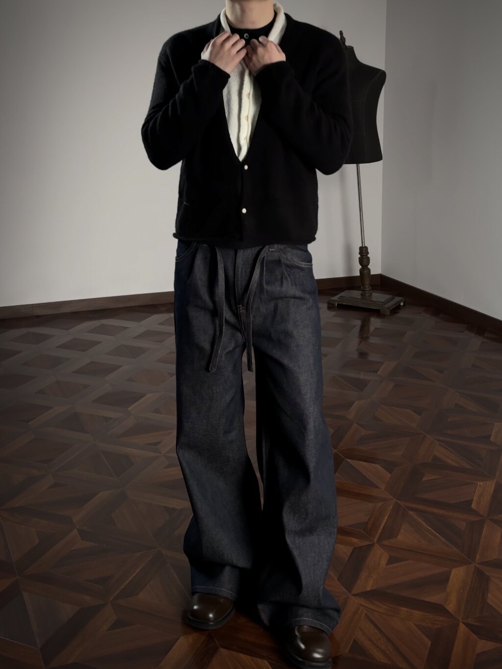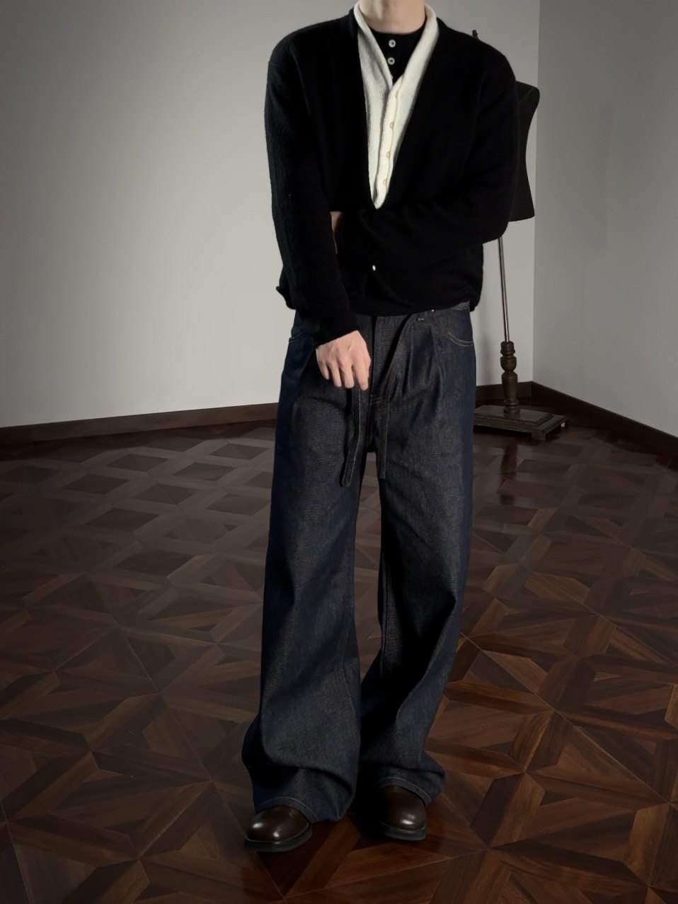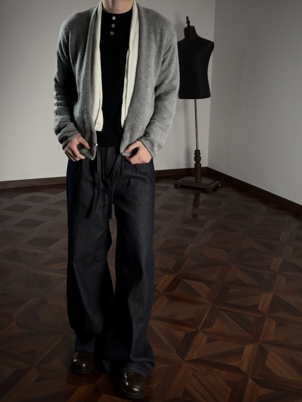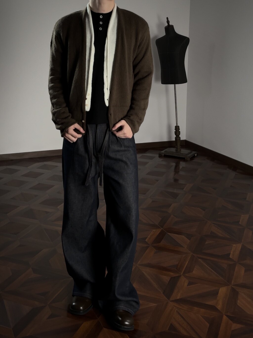 Oclin Elegant Double-Breasted Sweater Cardigan Knitted Wool Blend Short Wide Fit Faux Two-Piece with Burnished Buttons