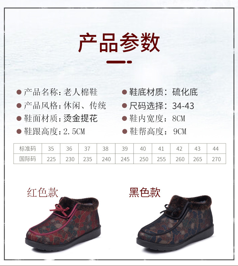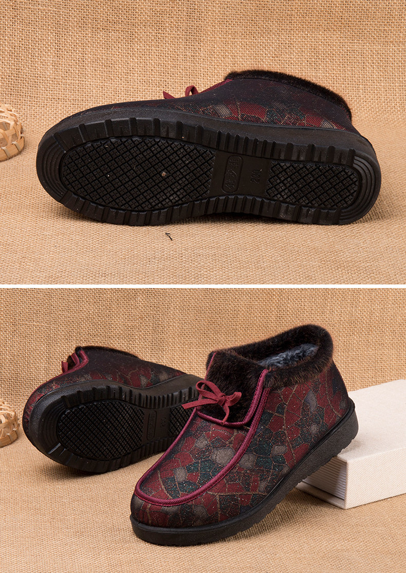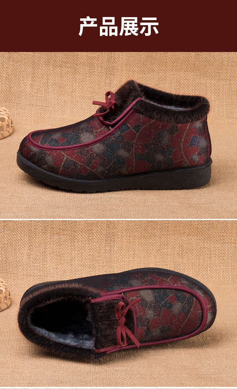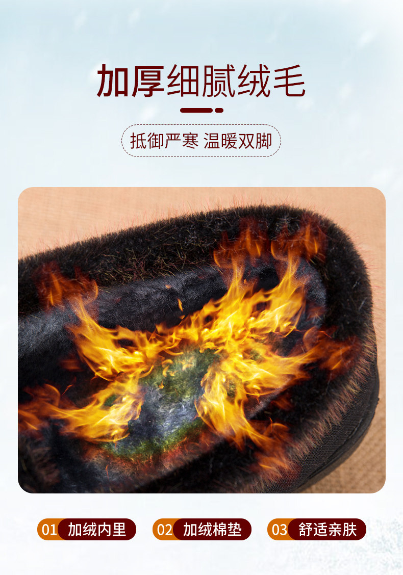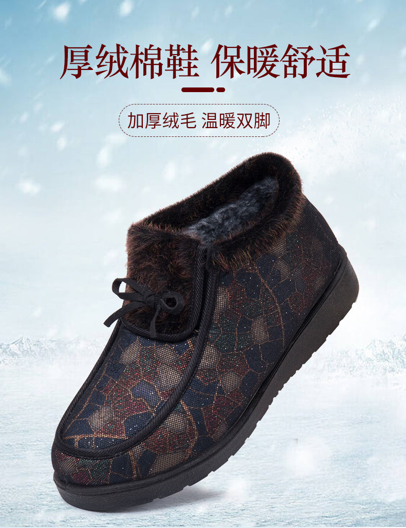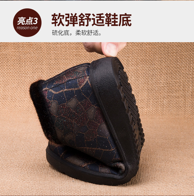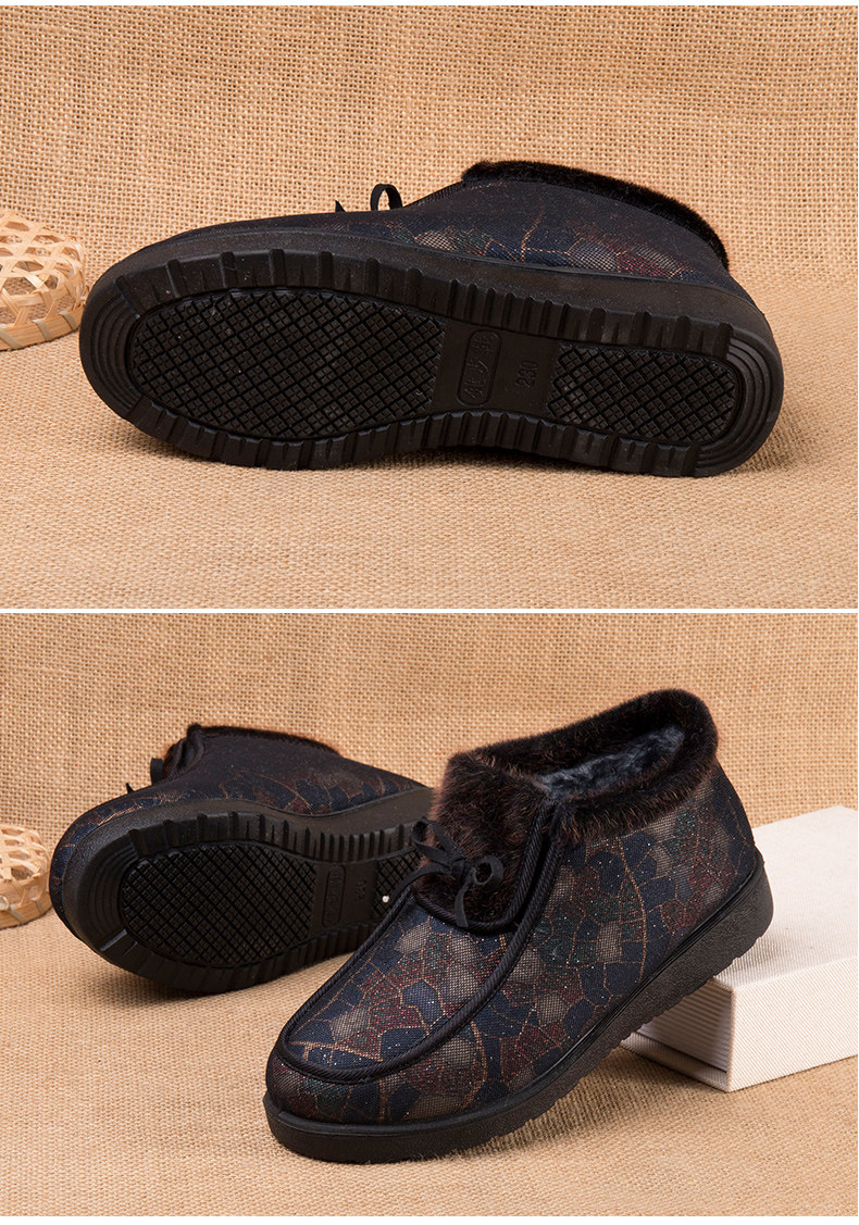 Winter Shoes for Elderly Women, Grandma's Cotton Shoes, Women's Fleece-Lined Old Beijing Cloth Shoes, Non-Slip Soft Sole, Home Shoes for Elderly Mothers