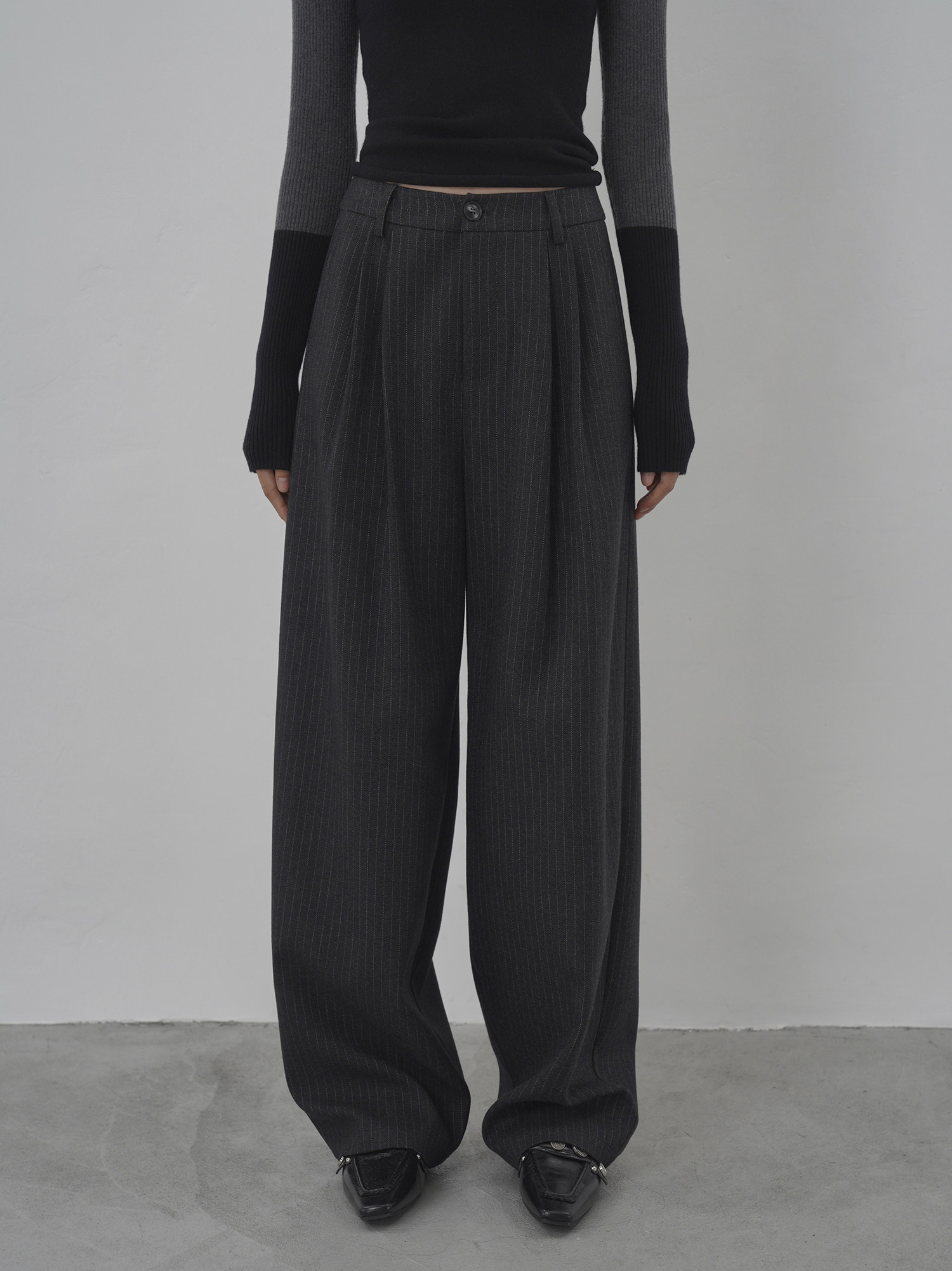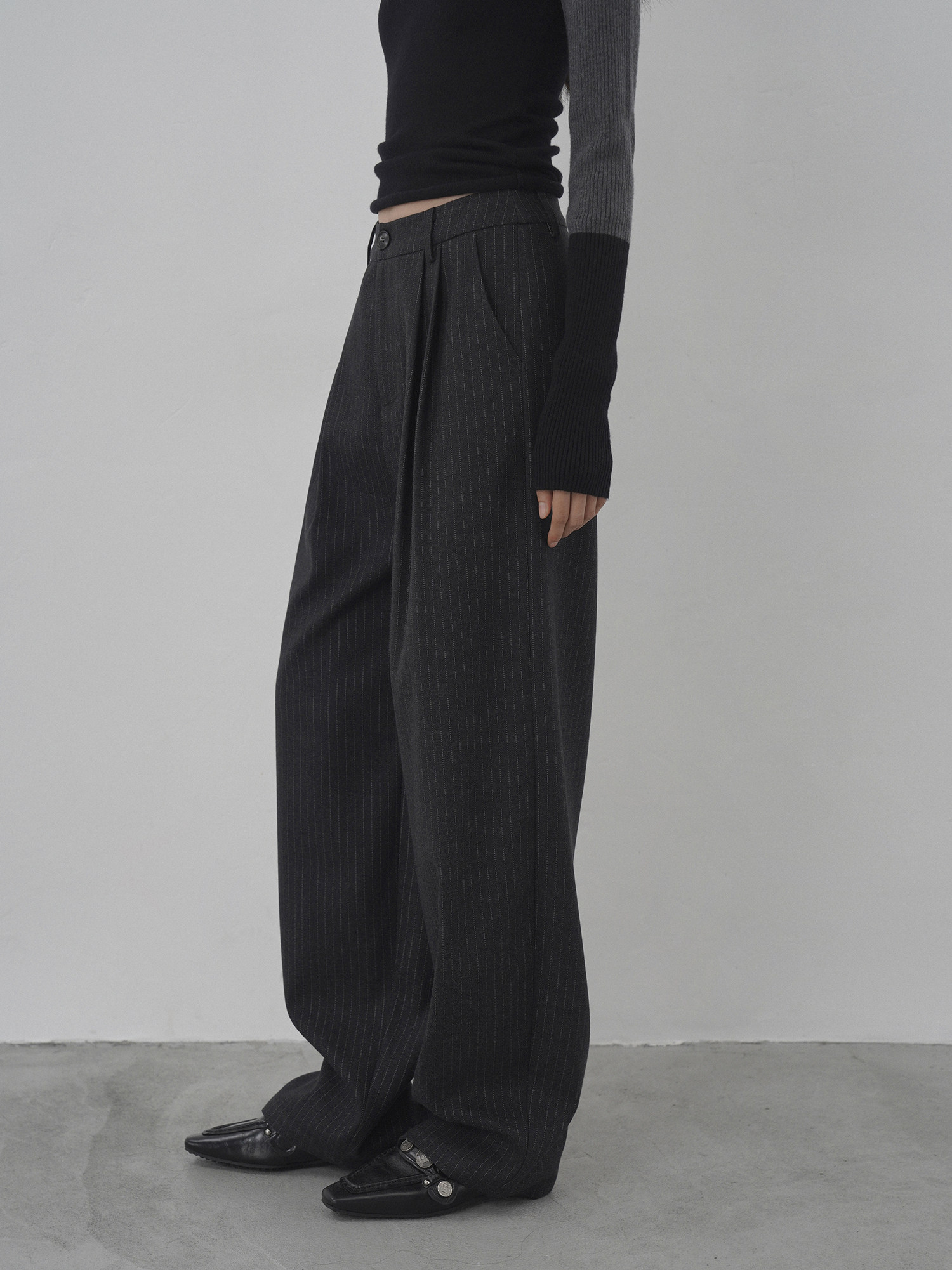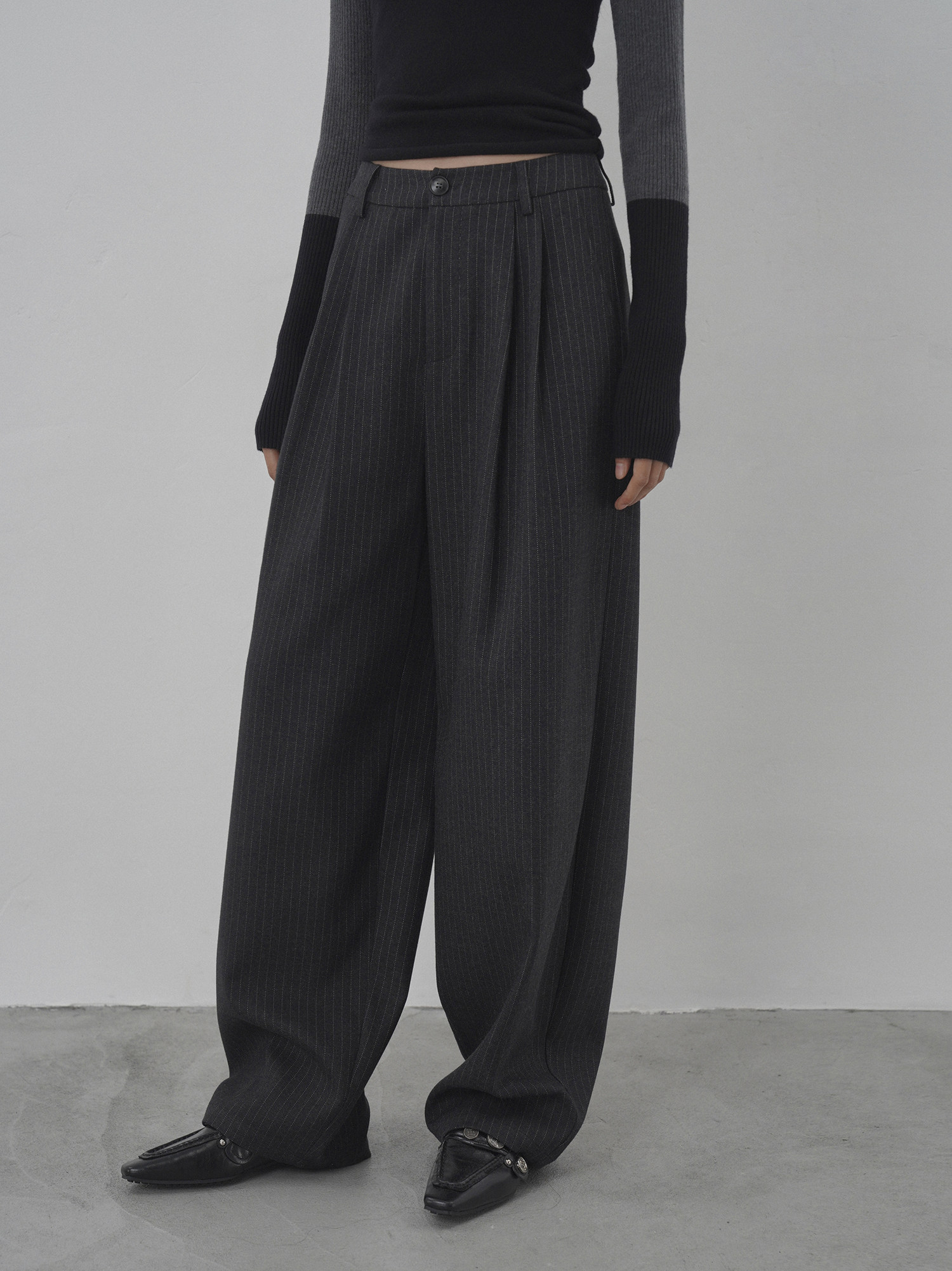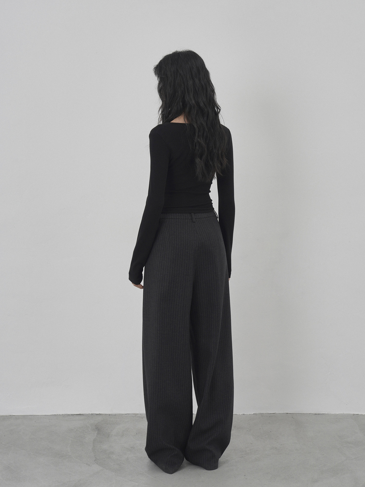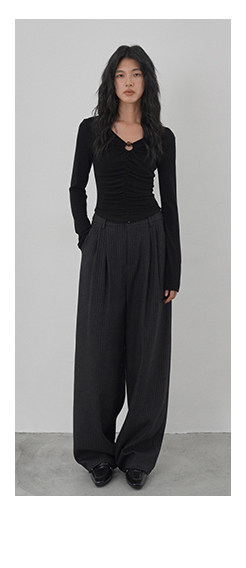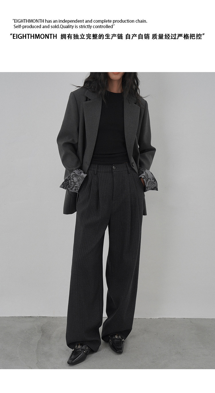 Eighthmonth August Fine Striped Wide-Leg Pants for Women, Autumn High-Waisted Slimming Loose Drapey Floor-Length Trousers