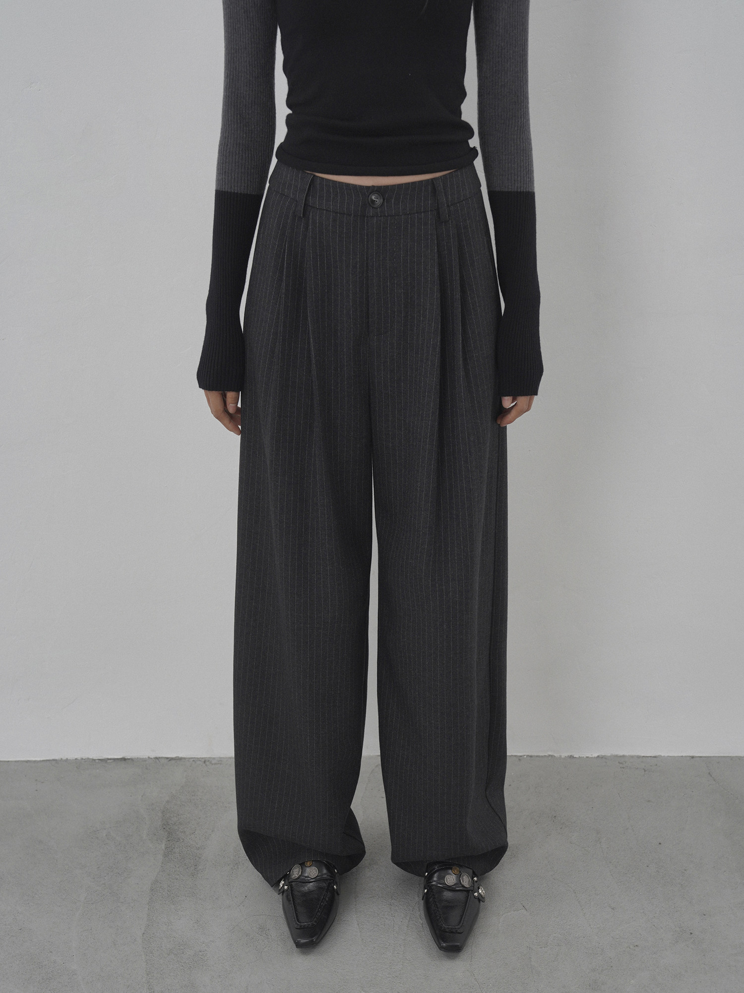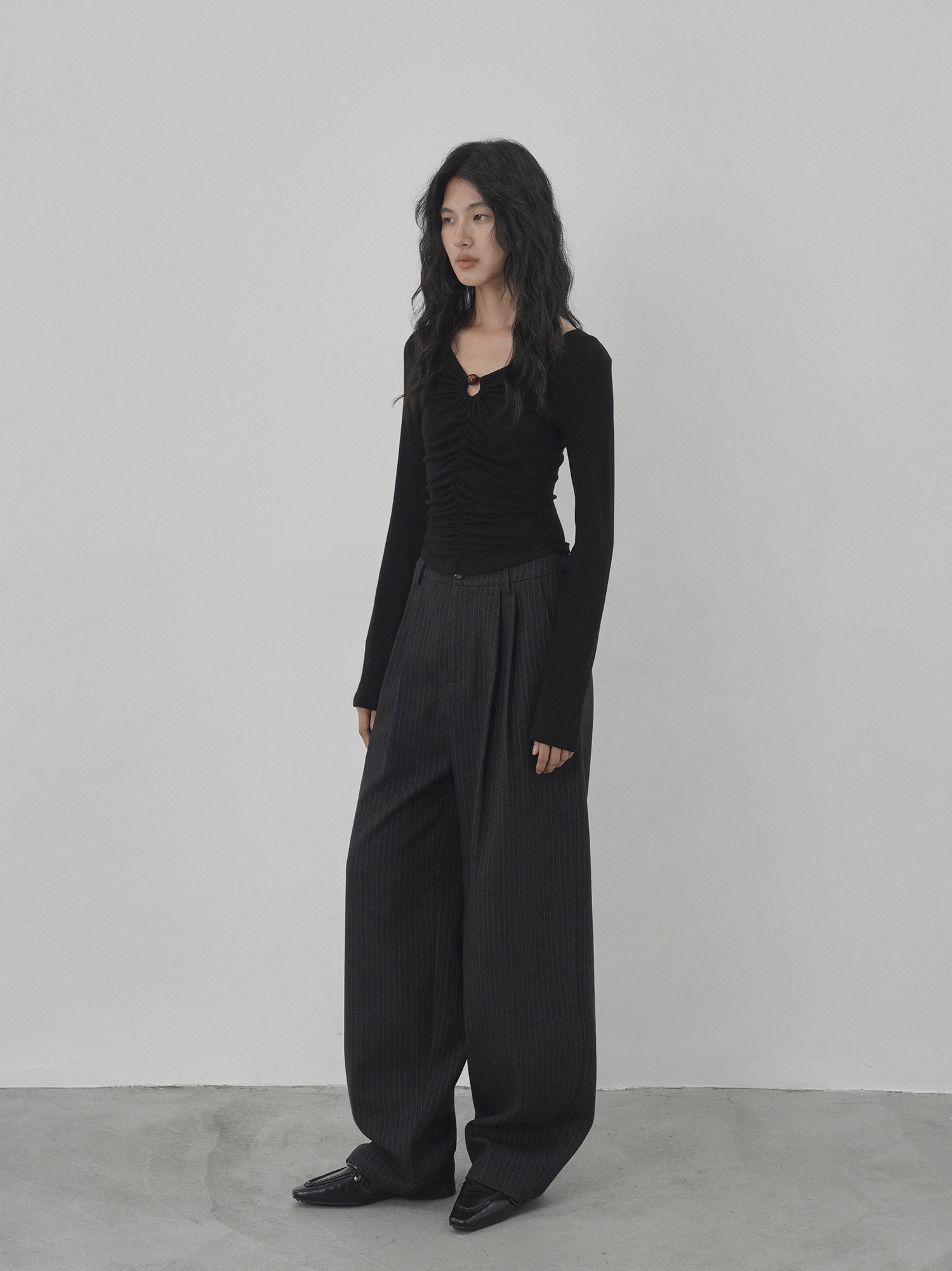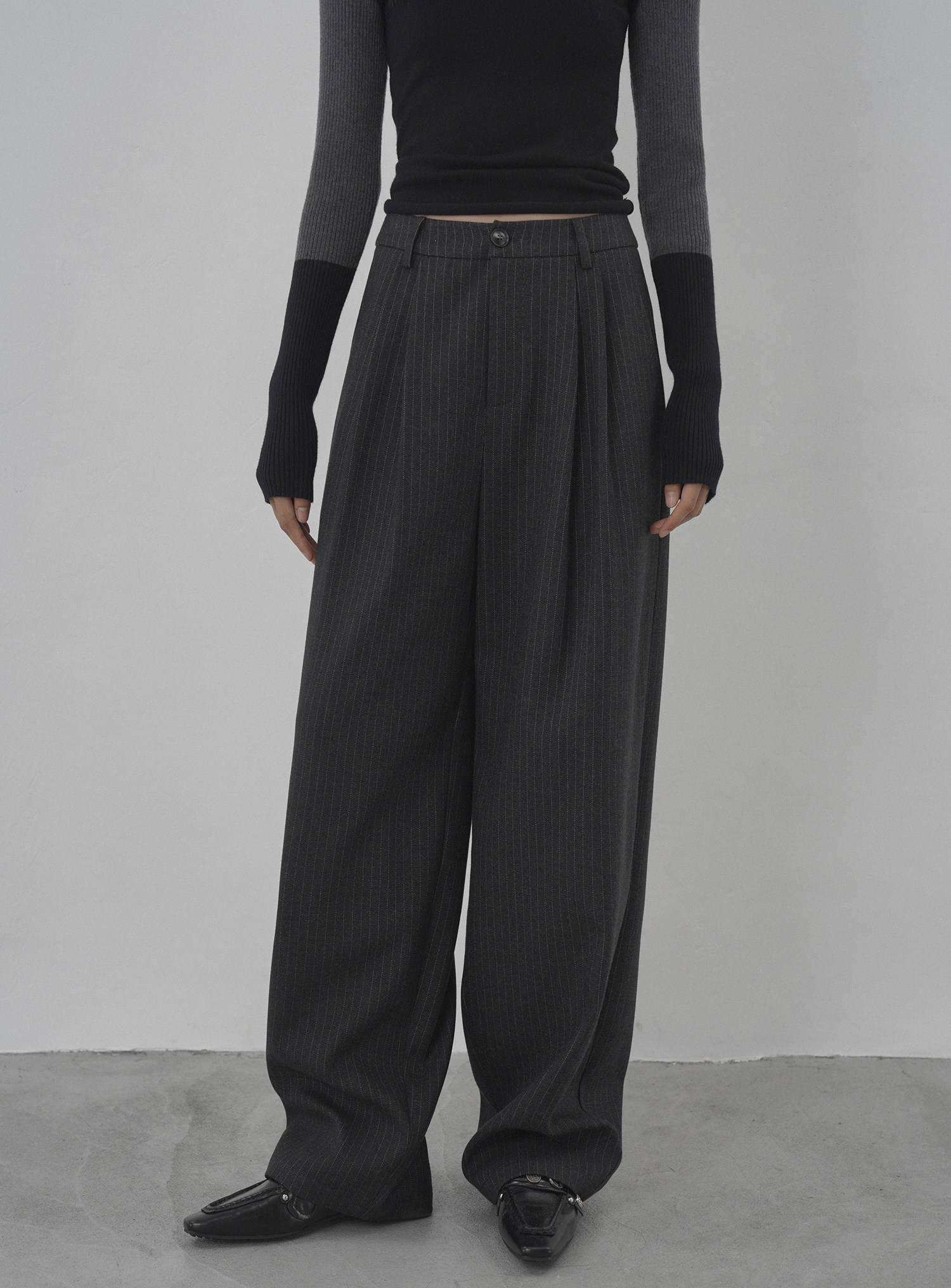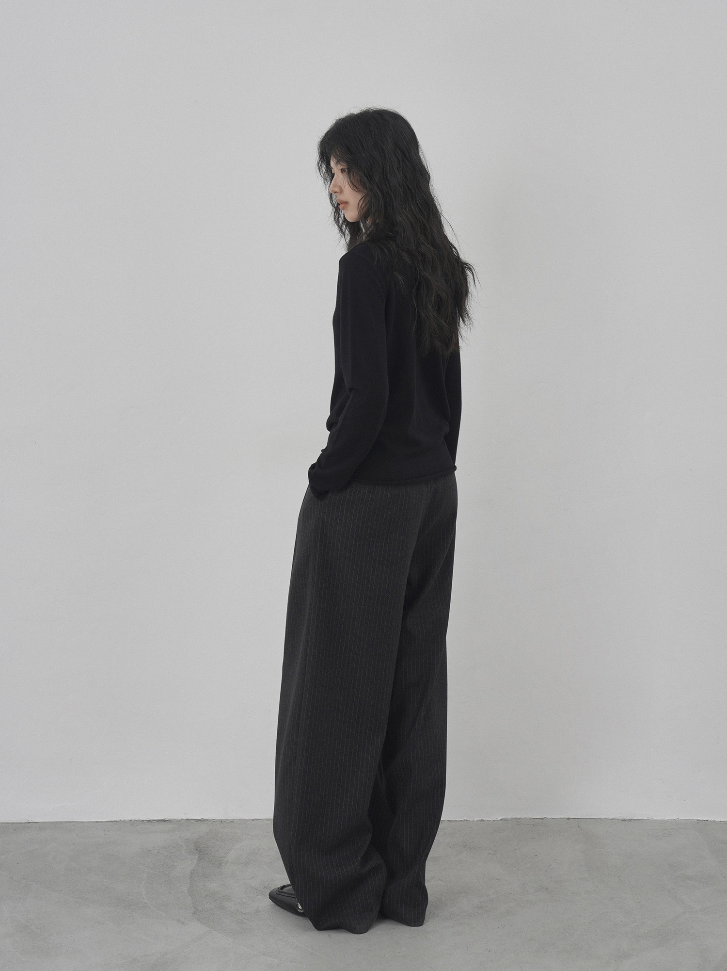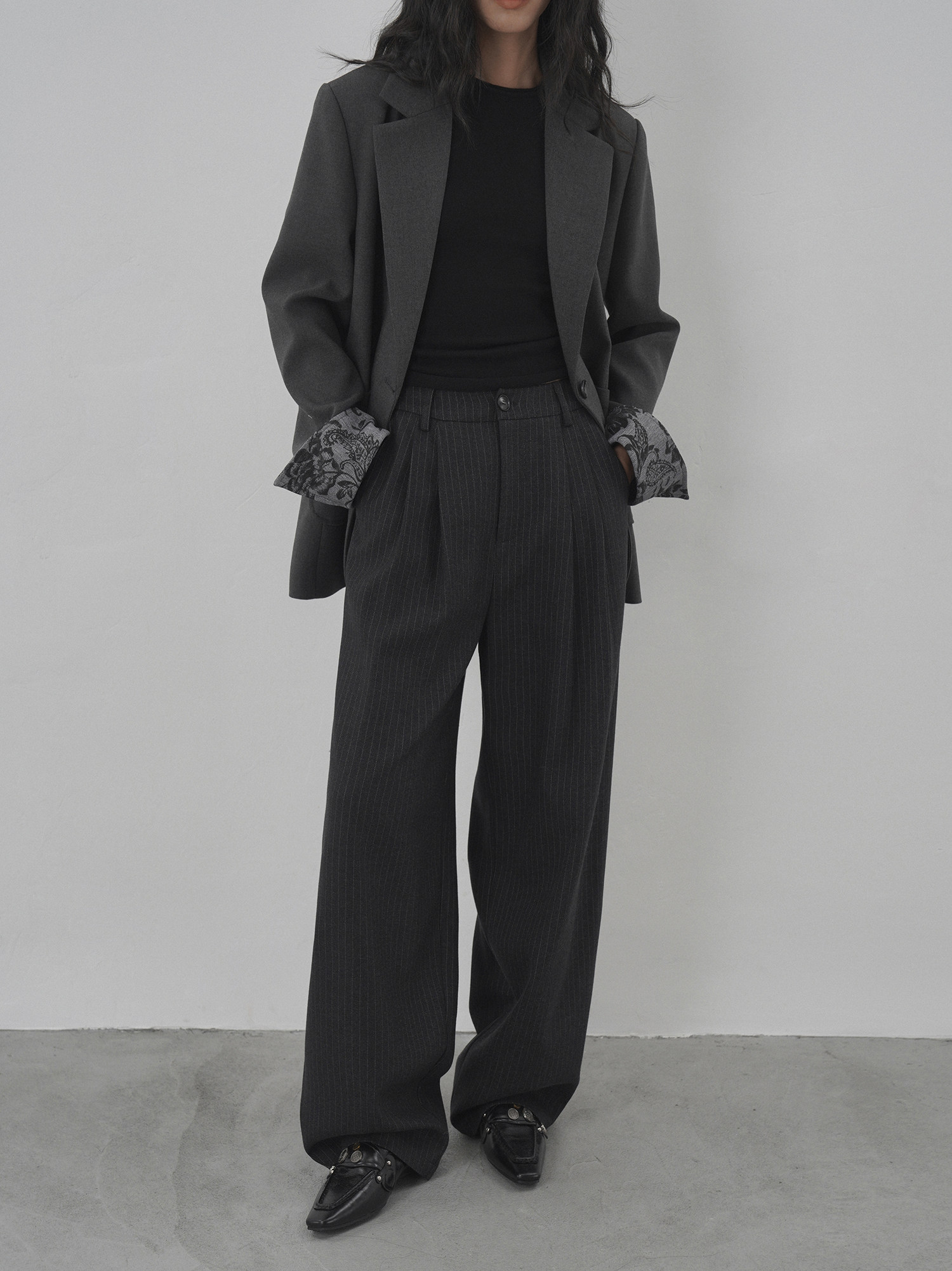Eighthmonth August Fine Striped Wide-Leg Pants for Women, Autumn High-Waisted Slimming Loose Drapey Floor-Length Trousers