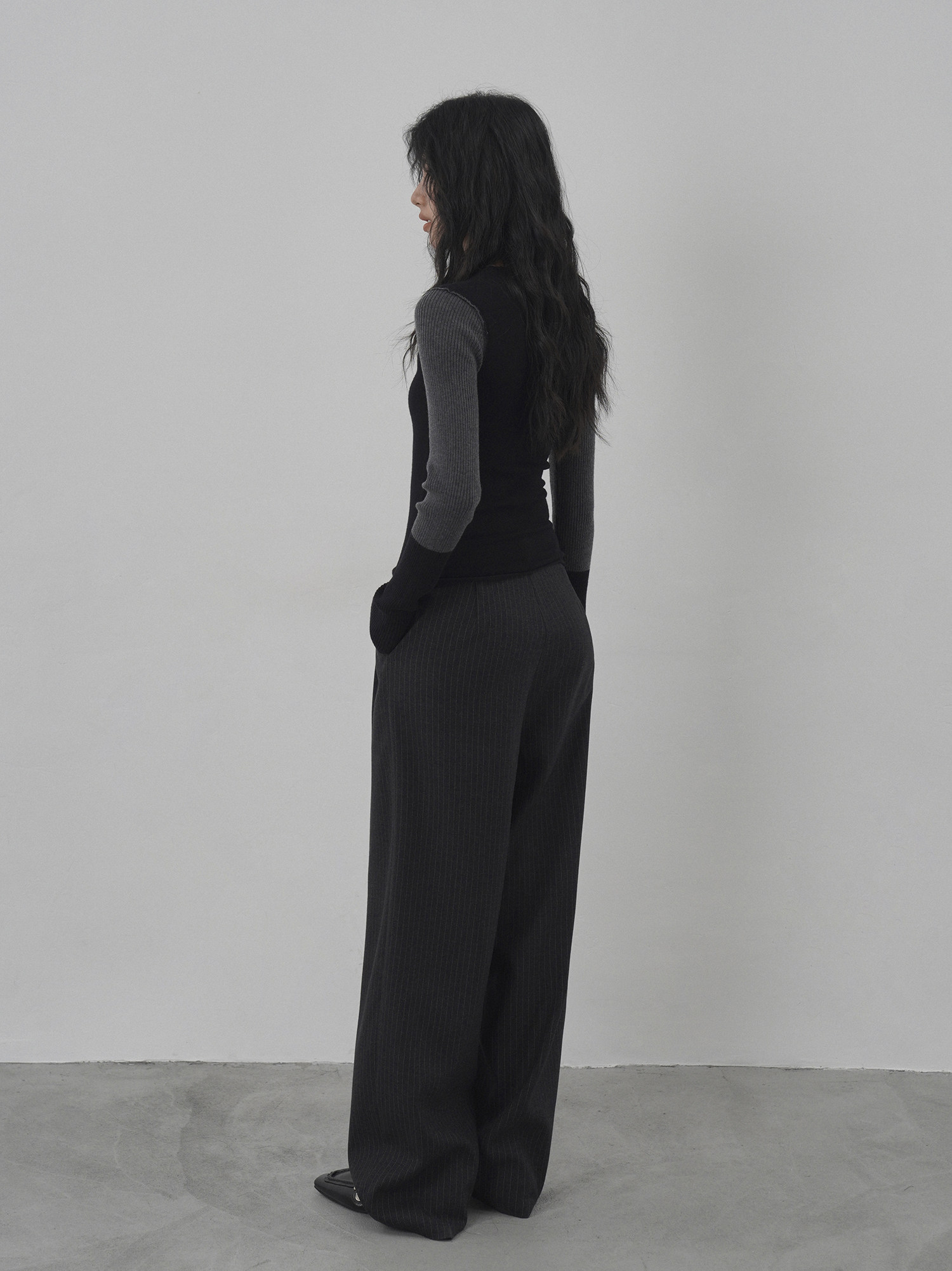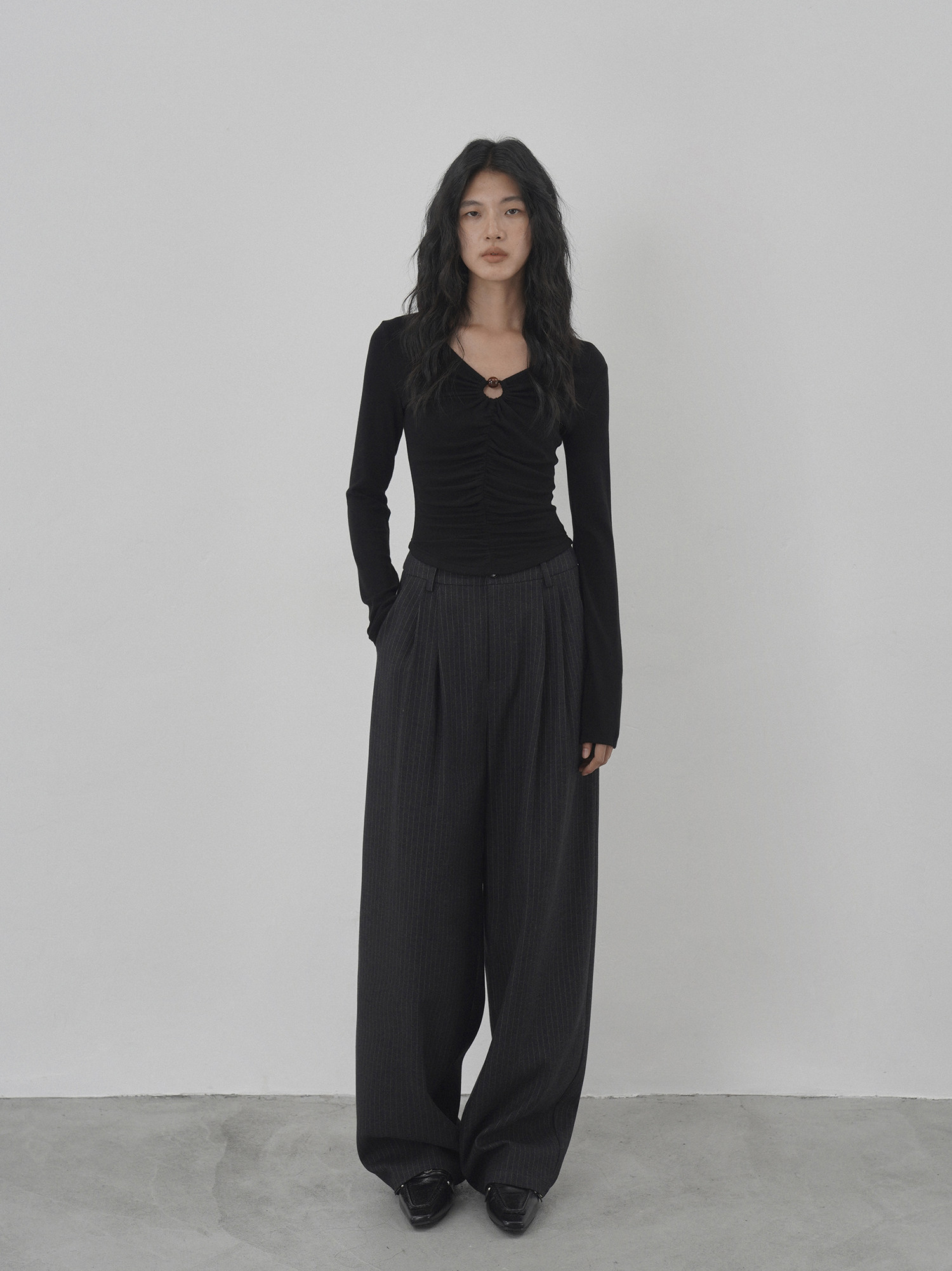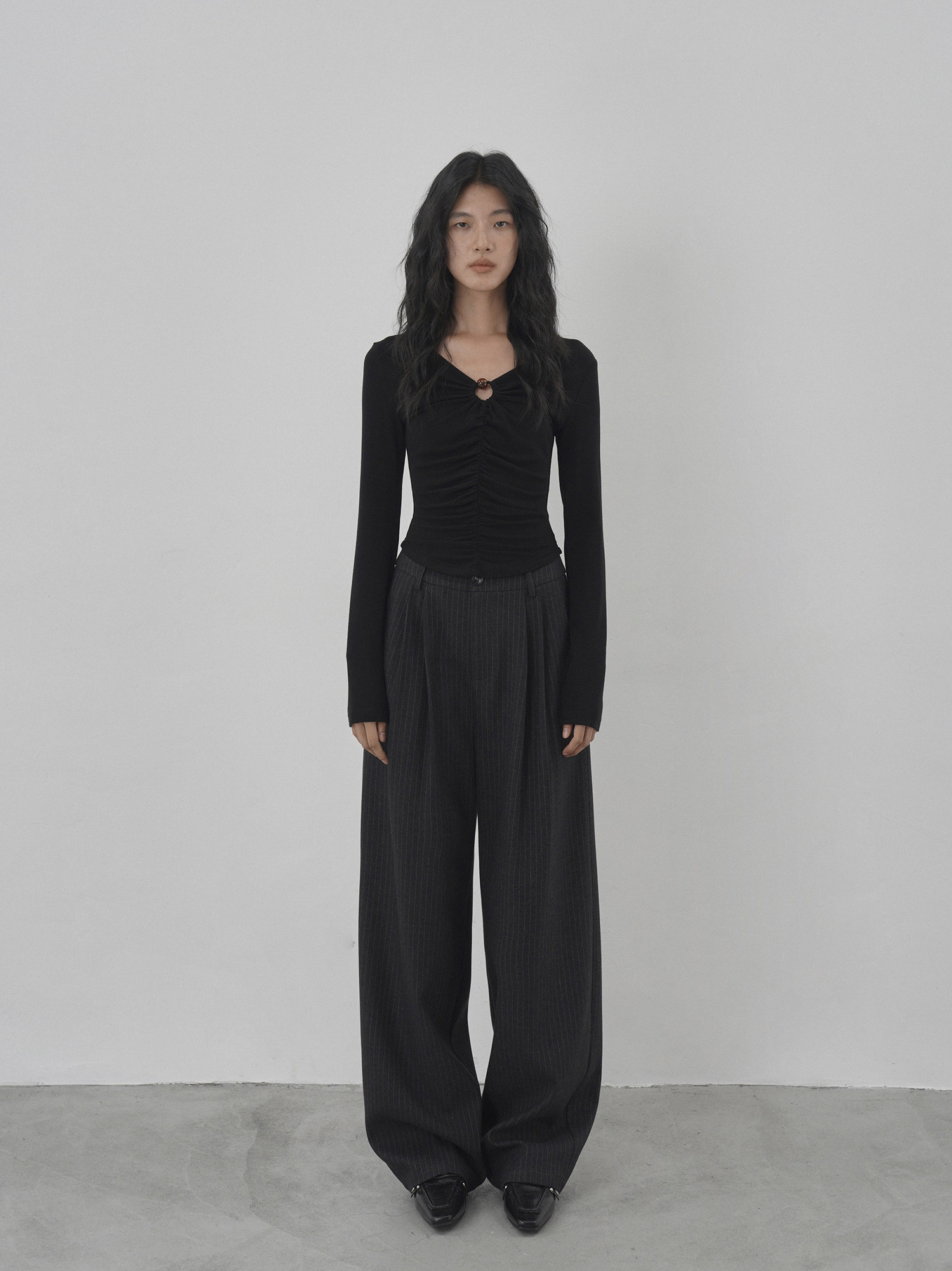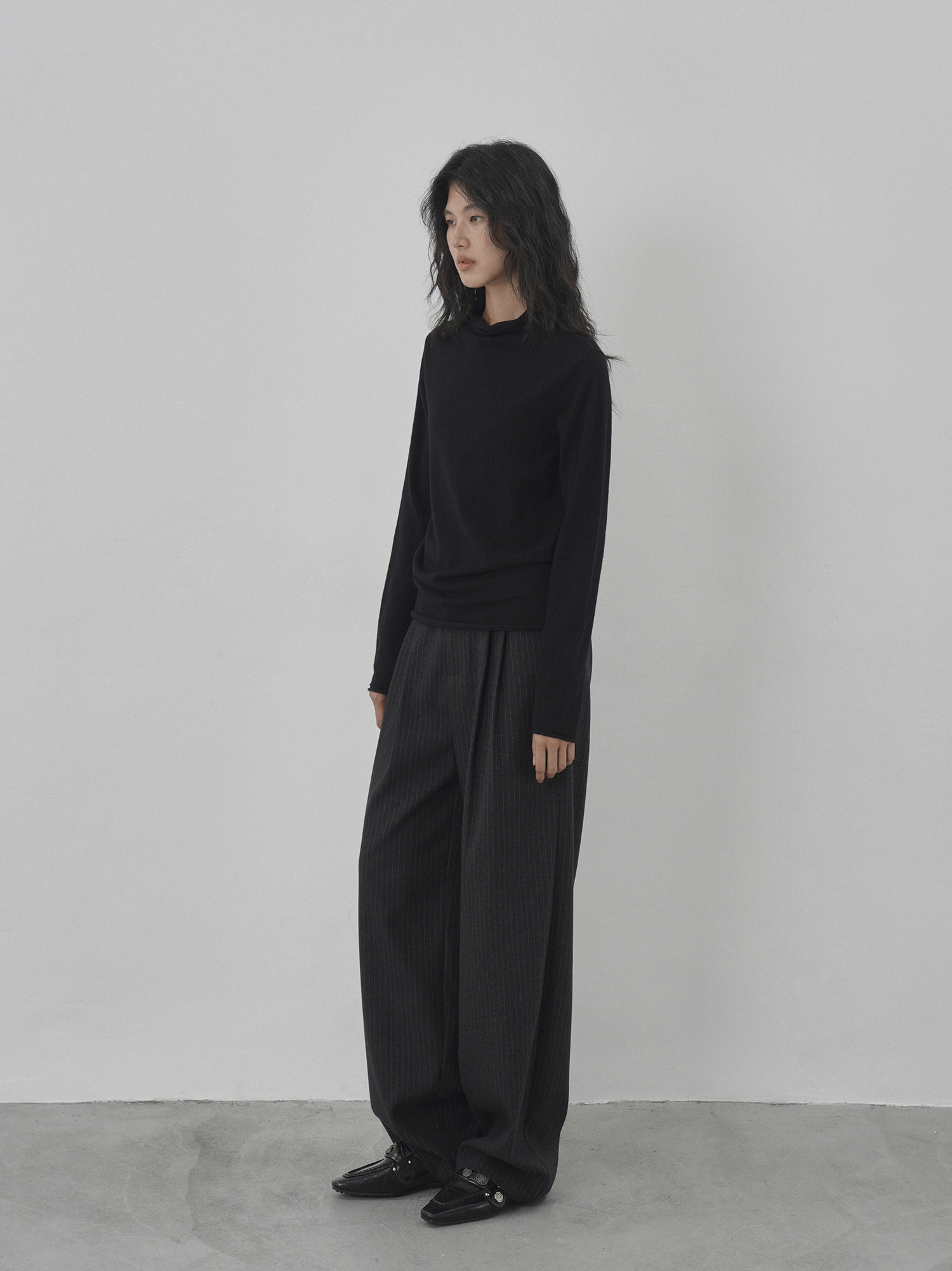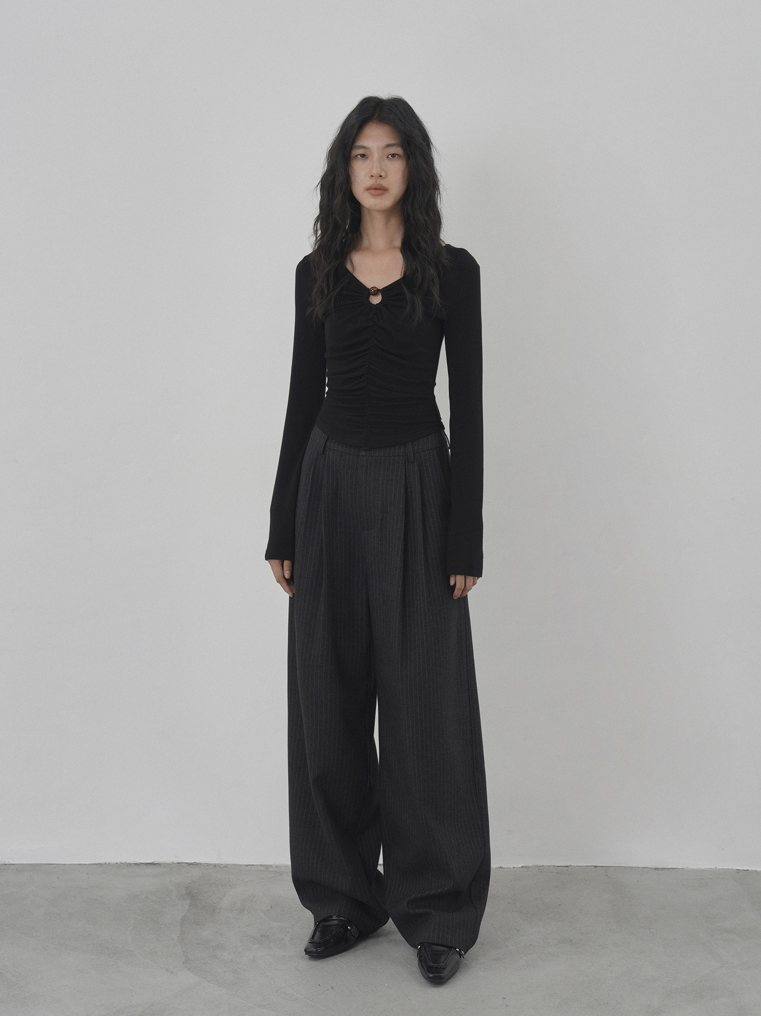 Eighthmonth August Fine Striped Wide-Leg Pants for Women, Autumn High-Waisted Slimming Loose Drapey Floor-Length Trousers