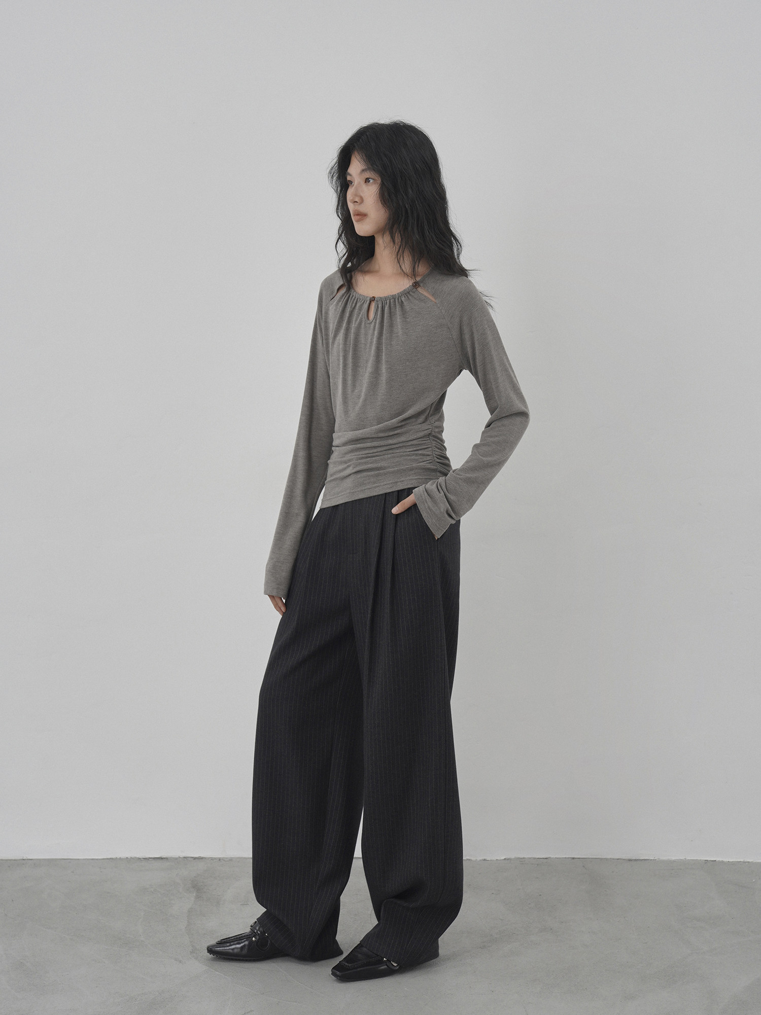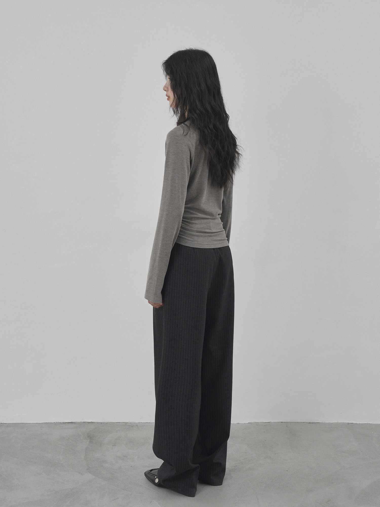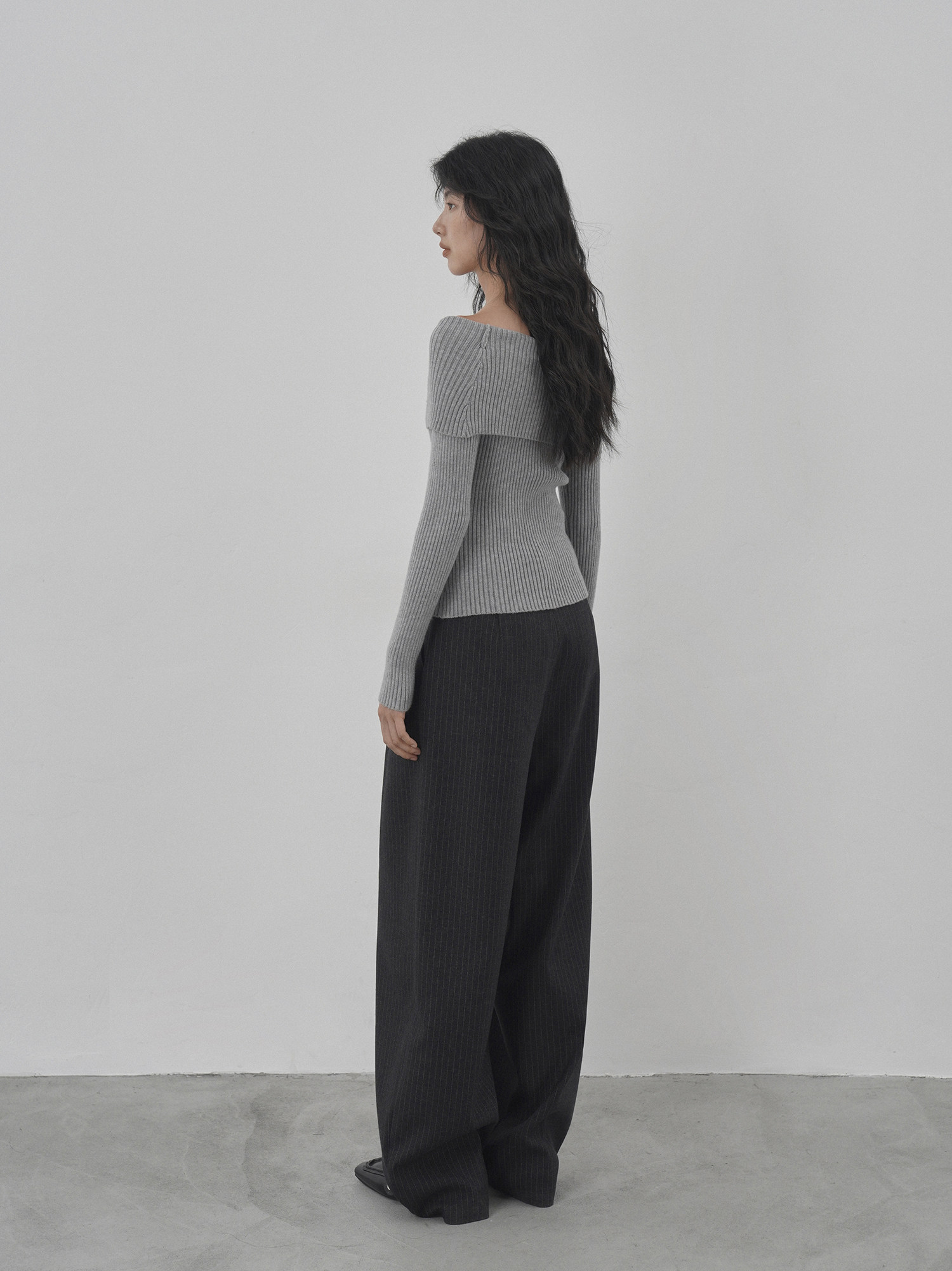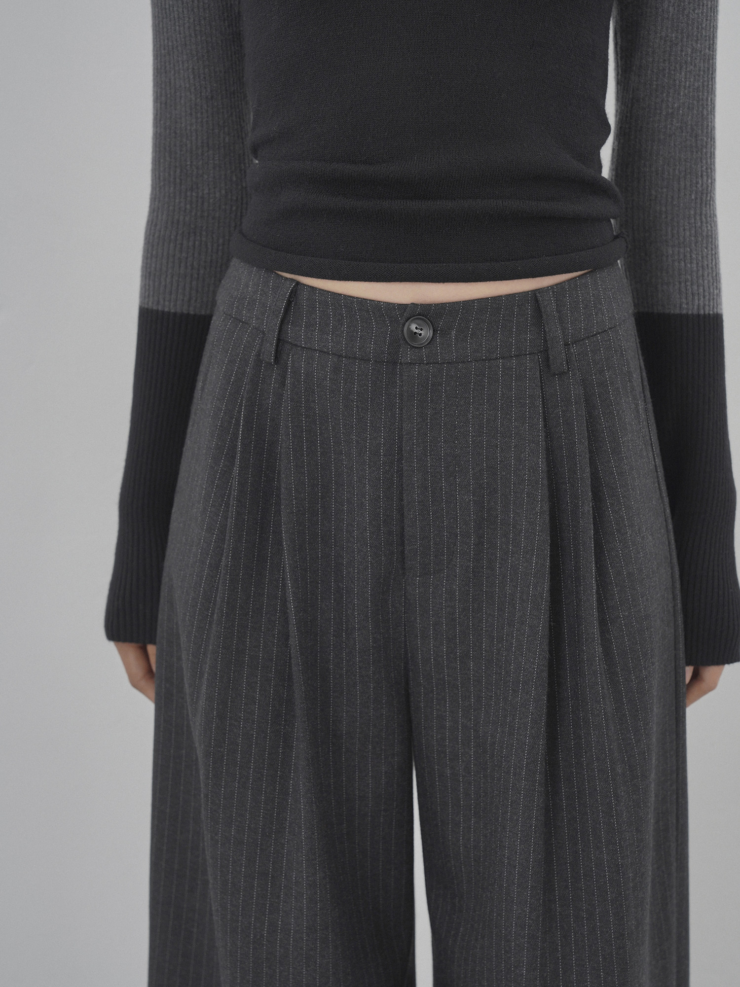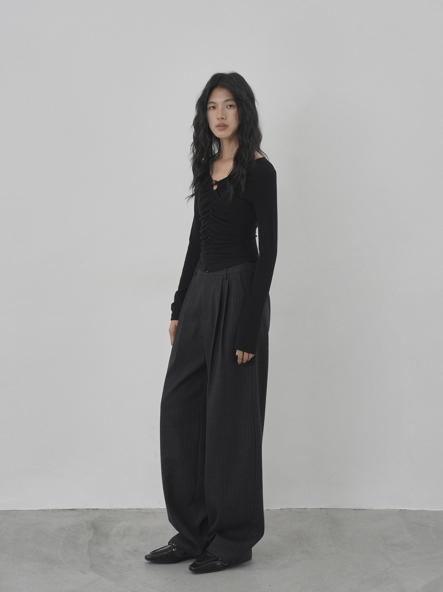 Eighthmonth August Fine Striped Wide-Leg Pants for Women, Autumn High-Waisted Slimming Loose Drapey Floor-Length Trousers