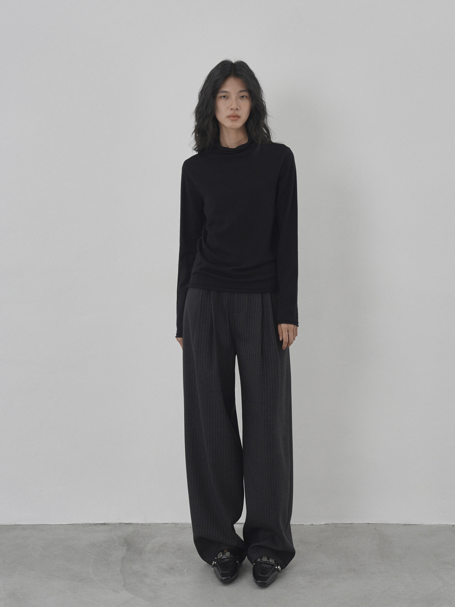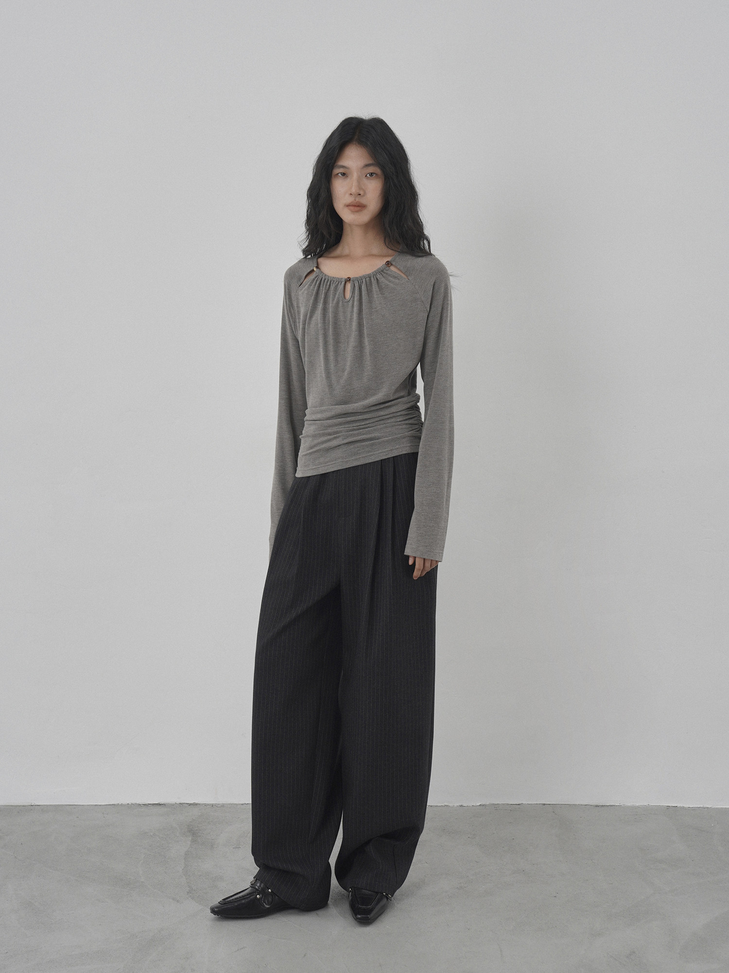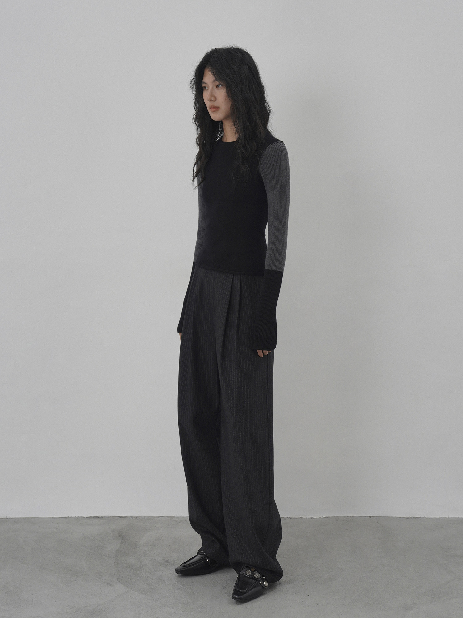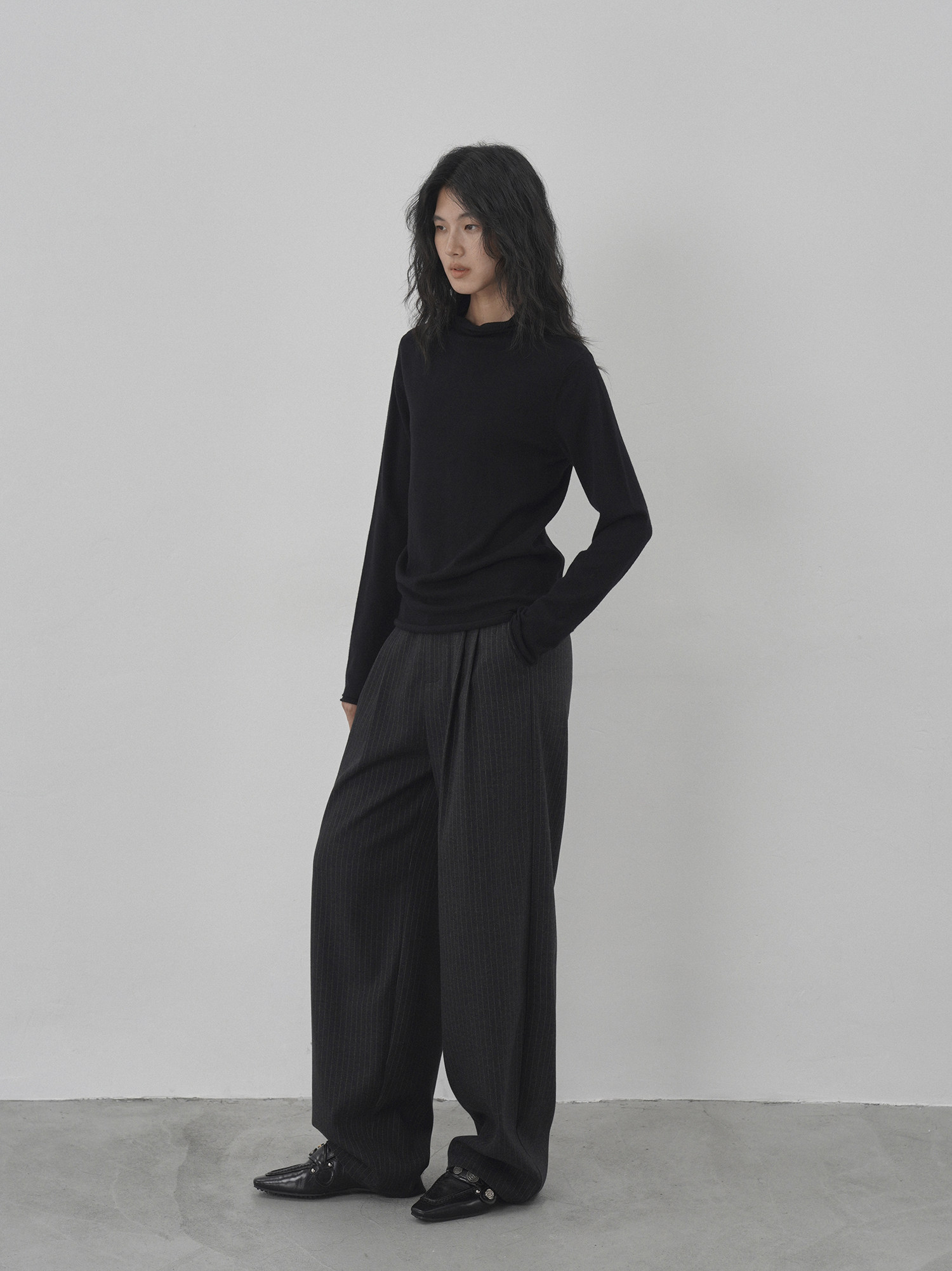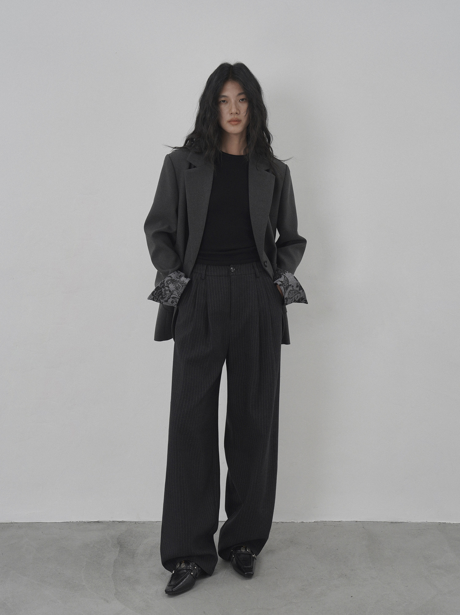 Eighthmonth August Fine Striped Wide-Leg Pants for Women, Autumn High-Waisted Slimming Loose Drapey Floor-Length Trousers