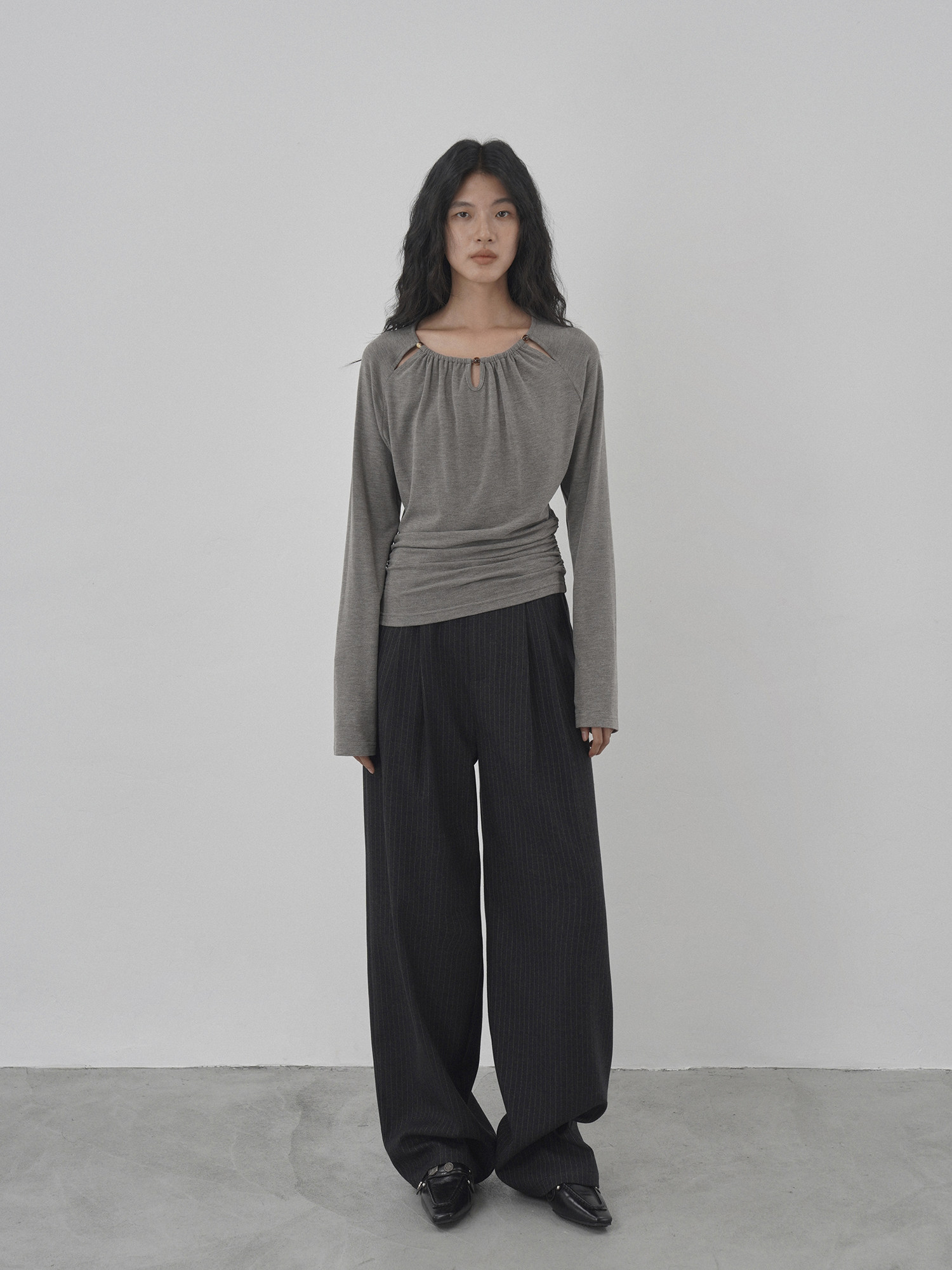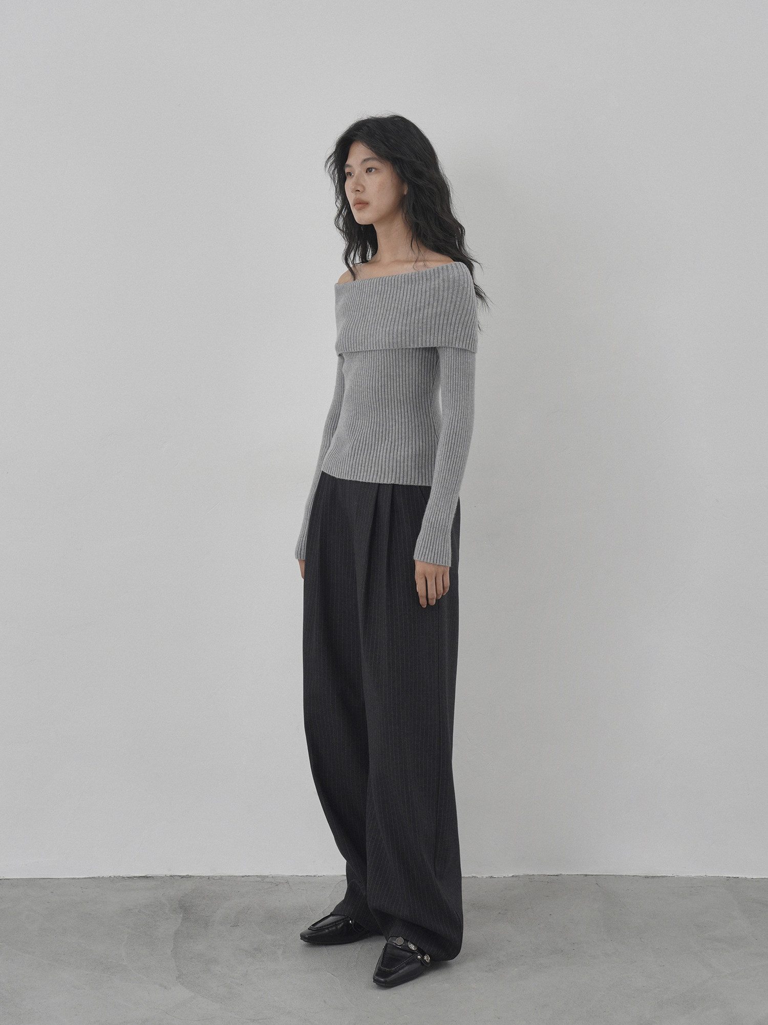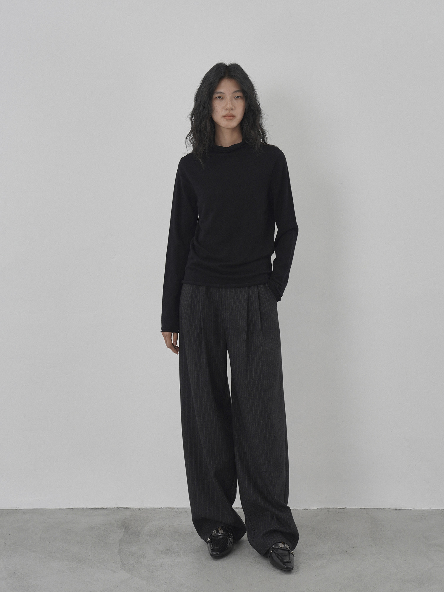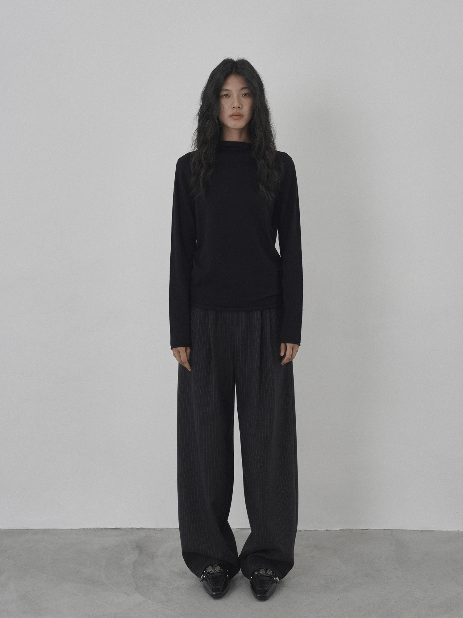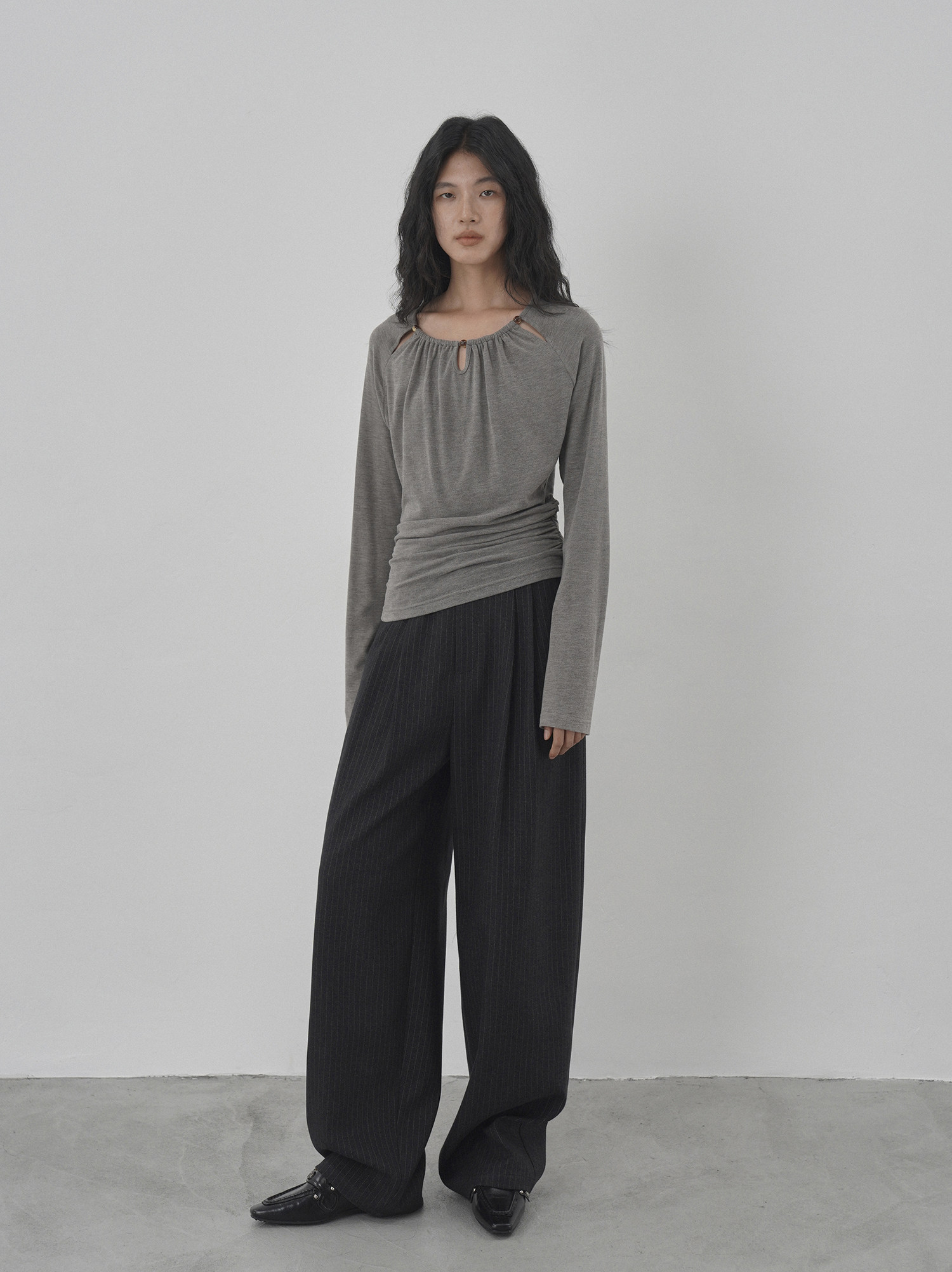 Eighthmonth August Fine Striped Wide-Leg Pants for Women, Autumn High-Waisted Slimming Loose Drapey Floor-Length Trousers