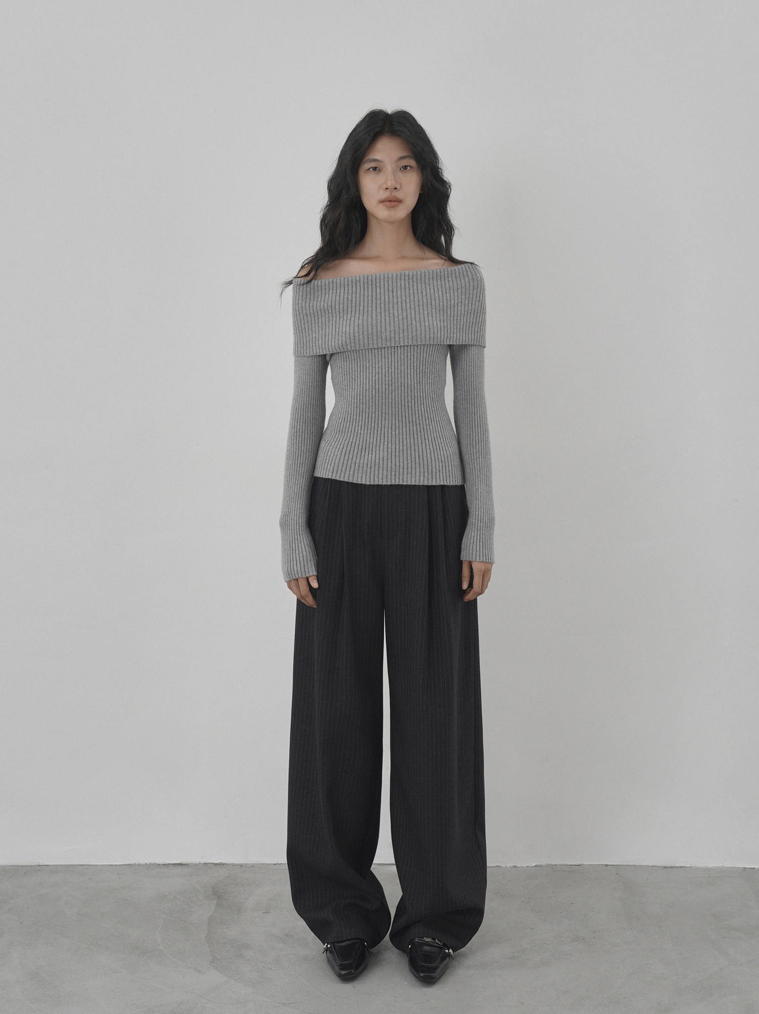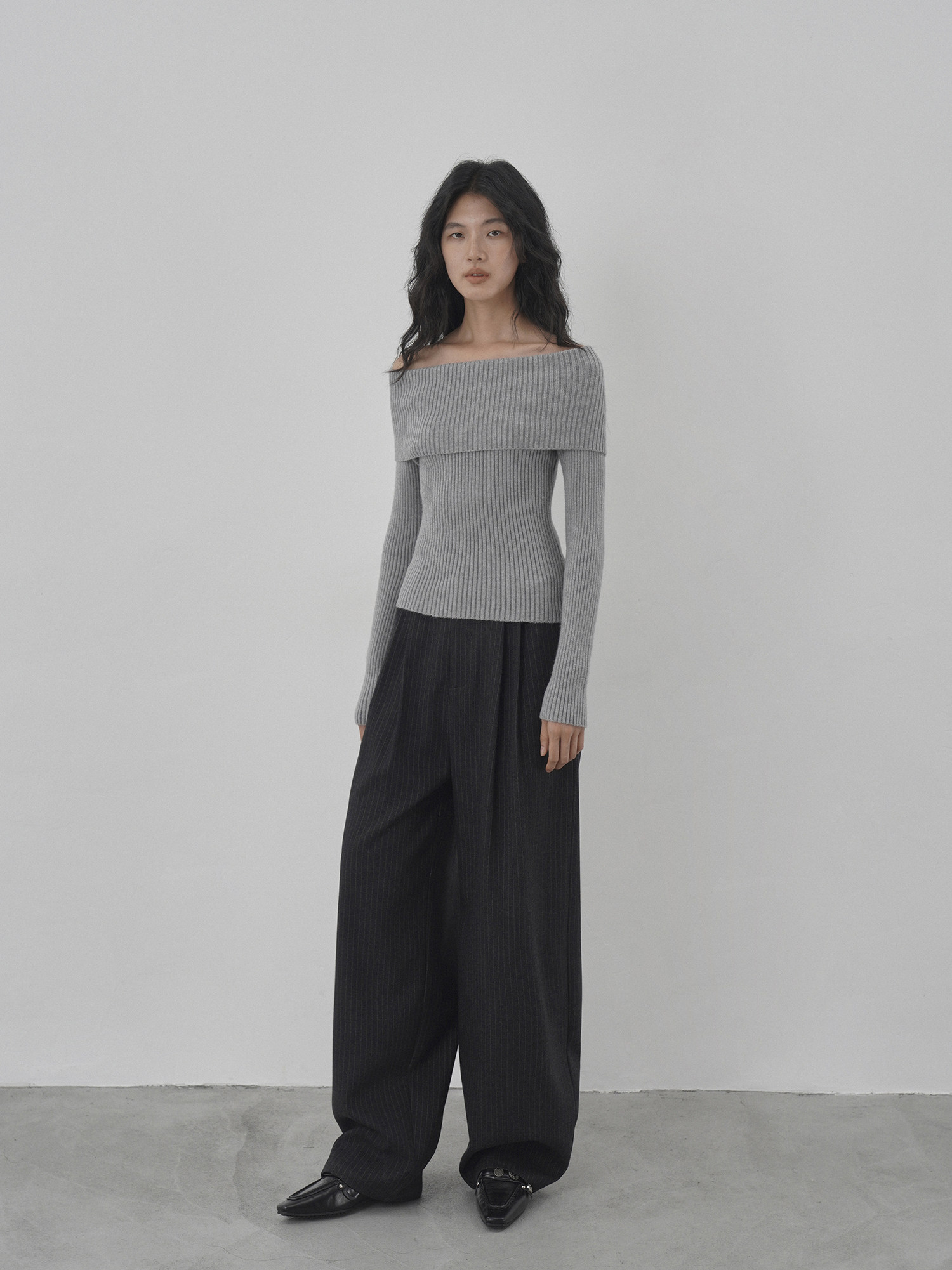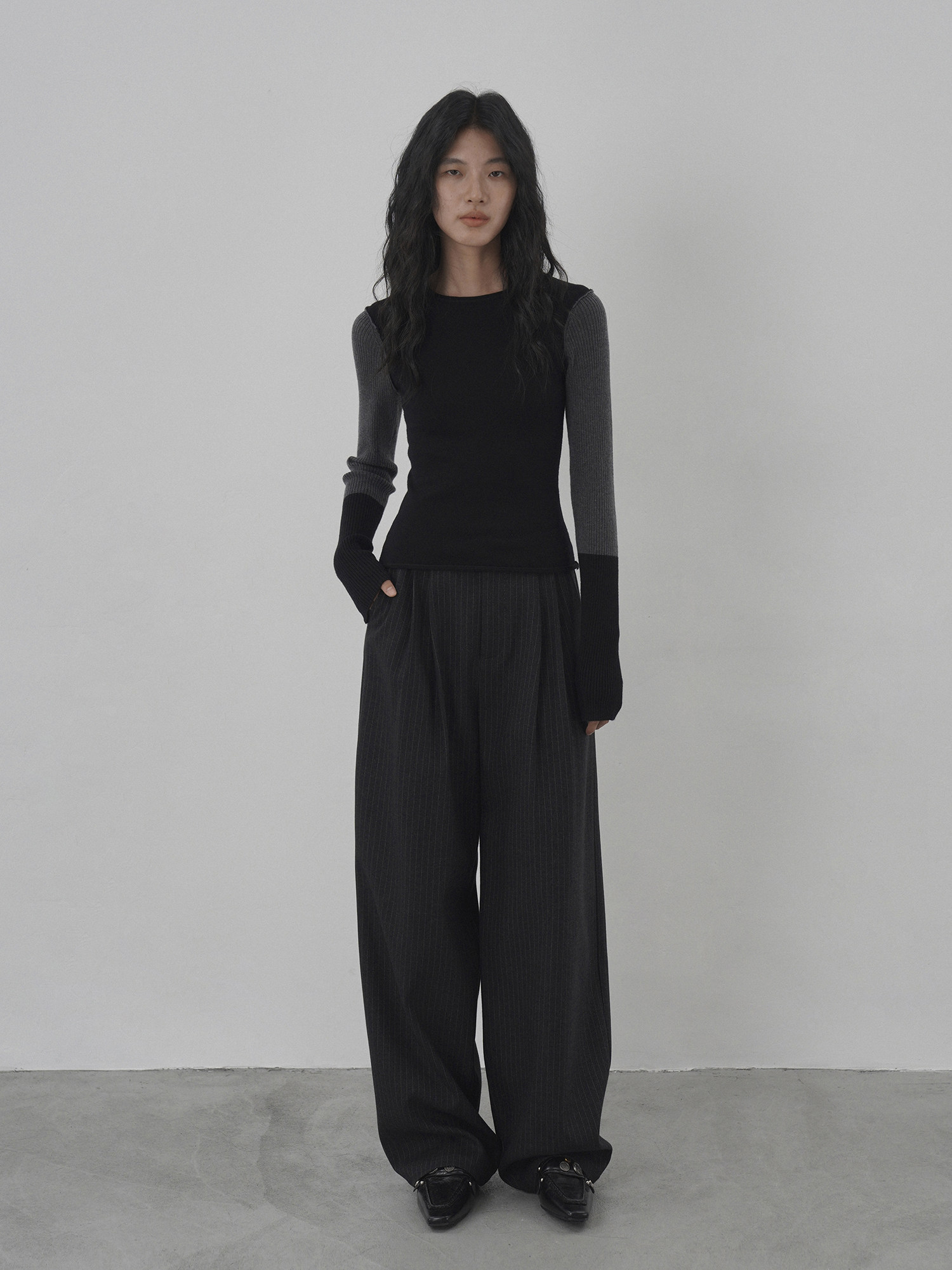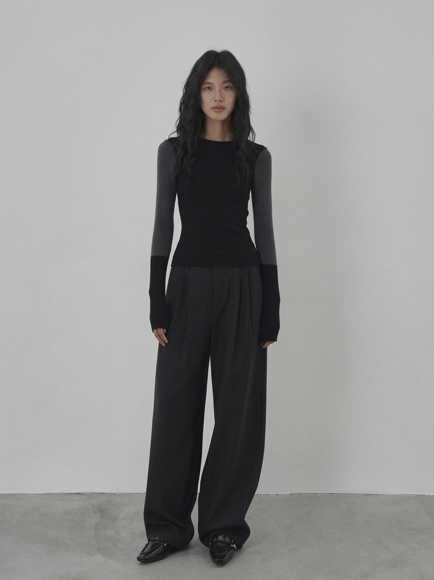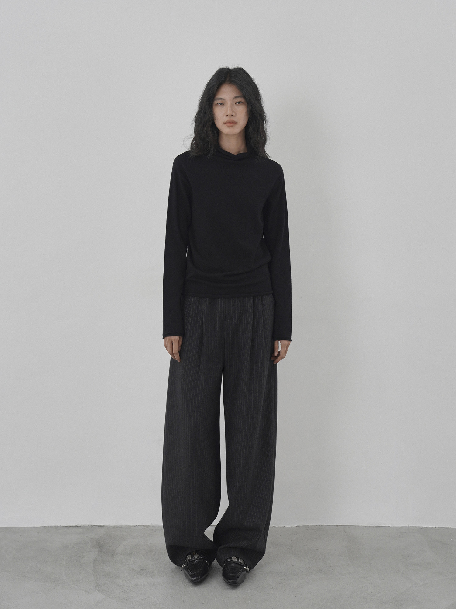 Eighthmonth August Fine Striped Wide-Leg Pants for Women, Autumn High-Waisted Slimming Loose Drapey Floor-Length Trousers