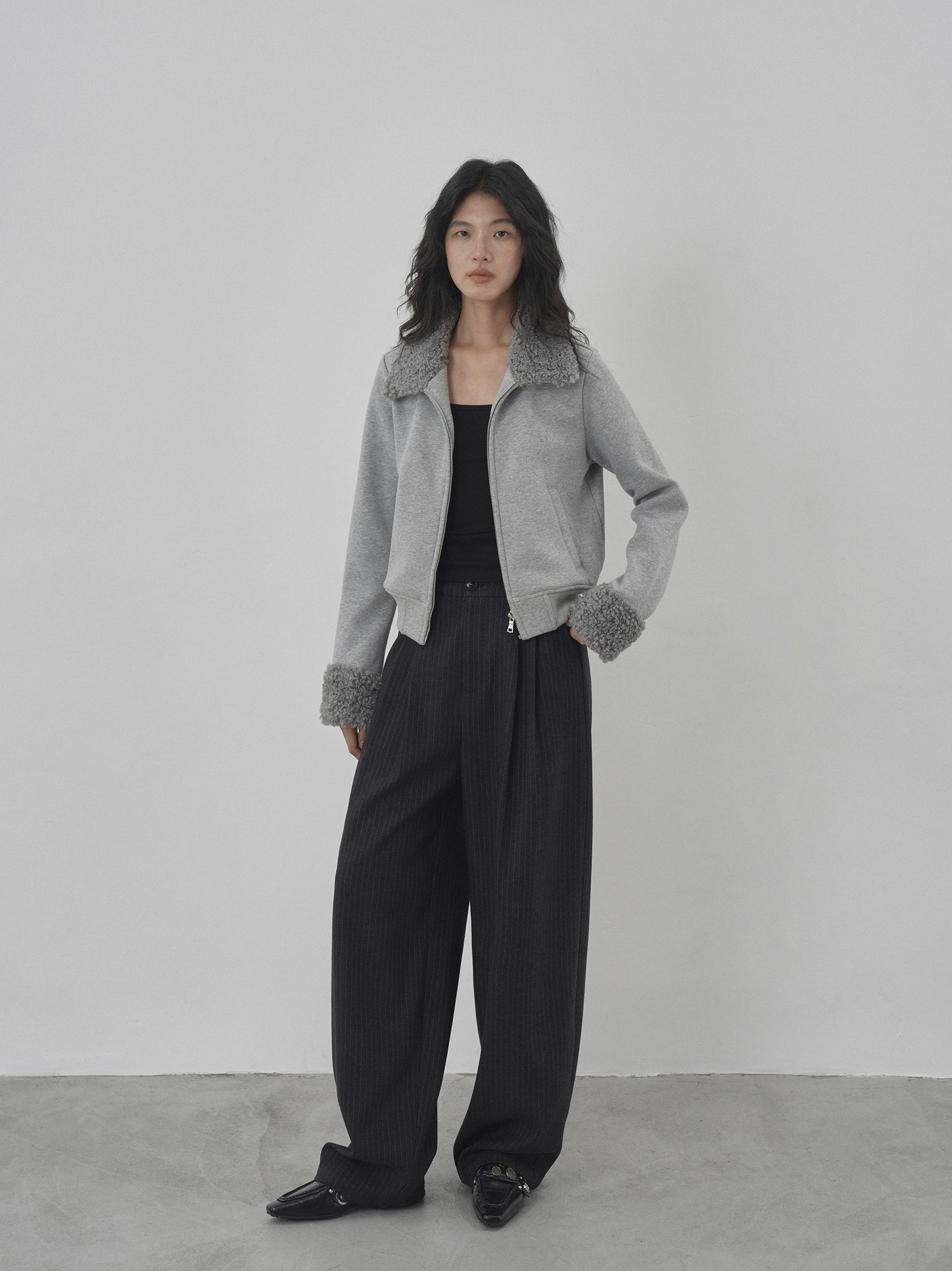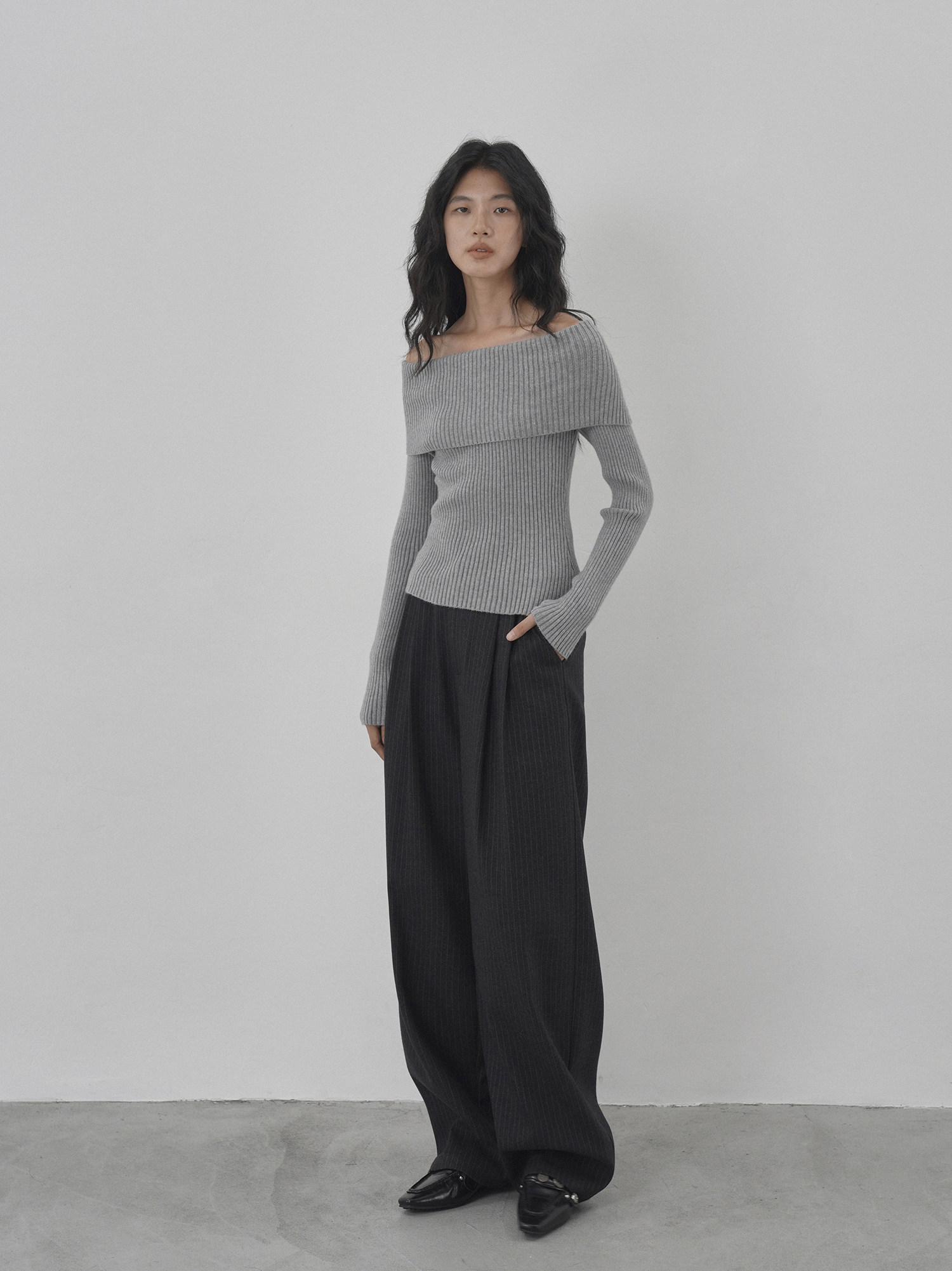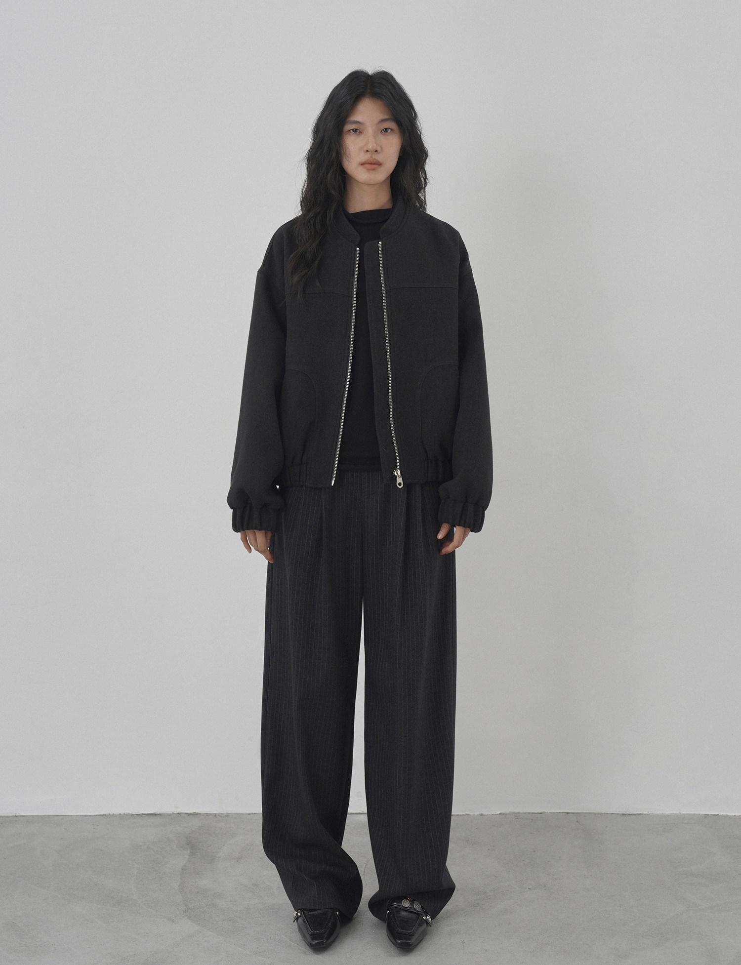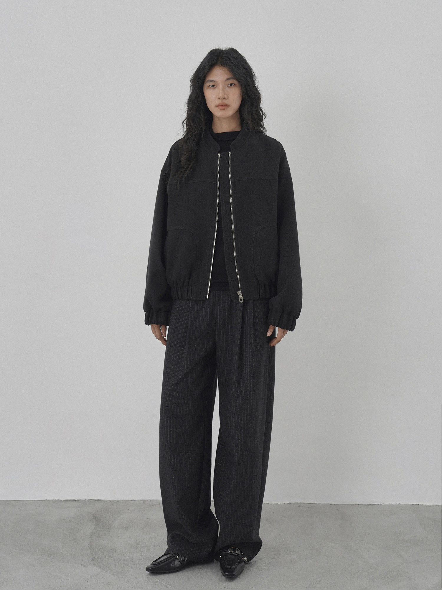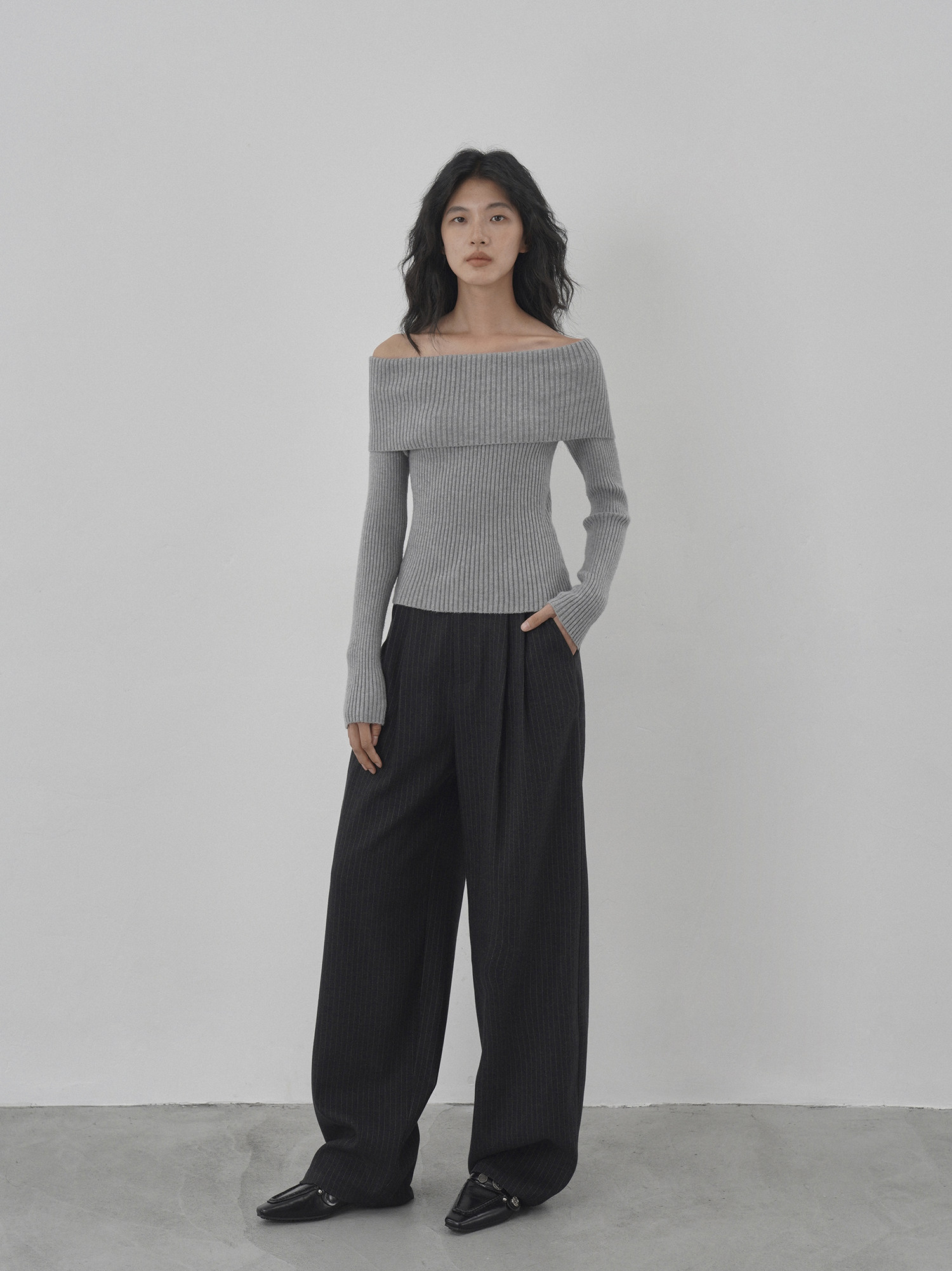 Eighthmonth August Fine Striped Wide-Leg Pants for Women, Autumn High-Waisted Slimming Loose Drapey Floor-Length Trousers