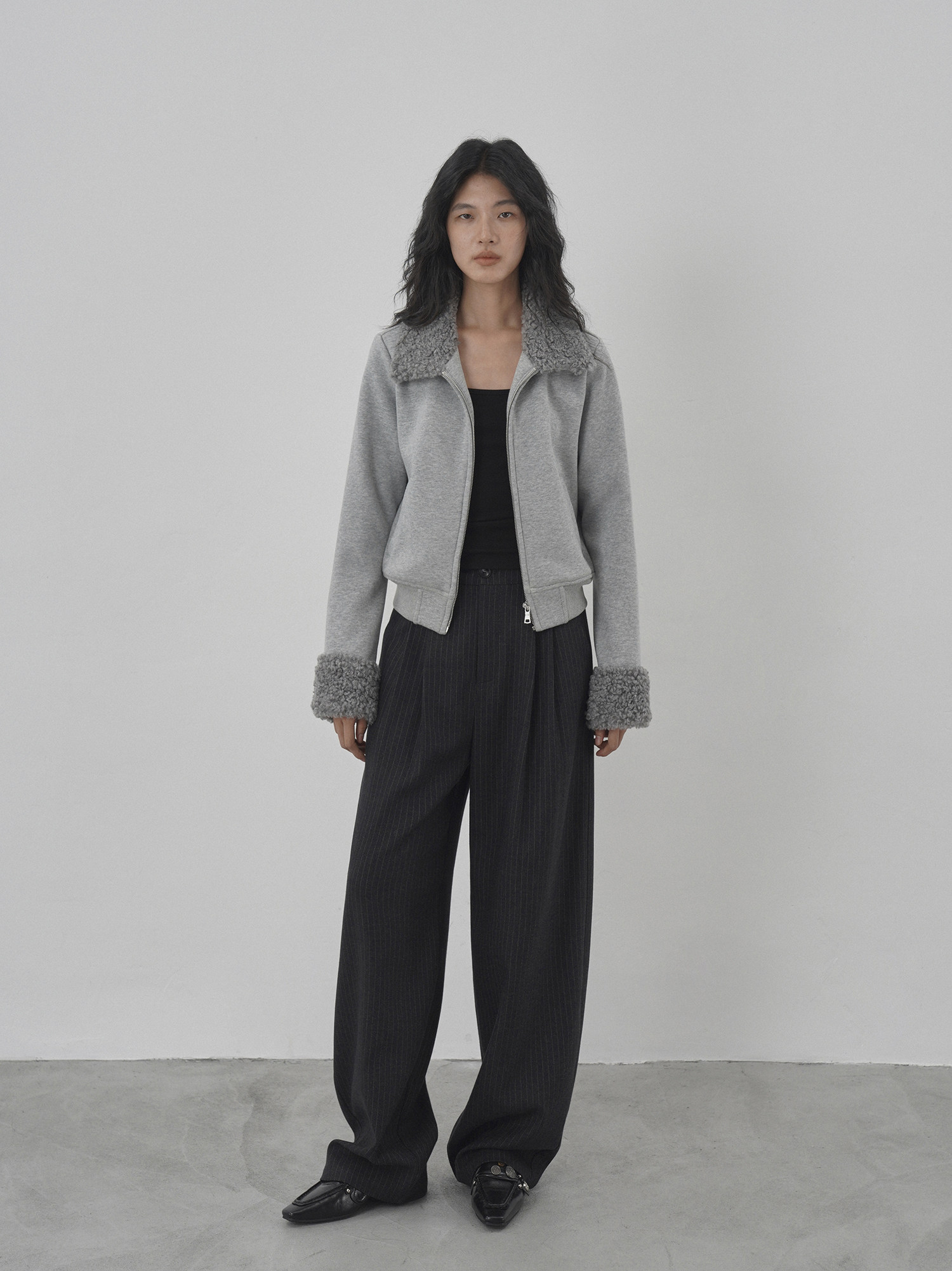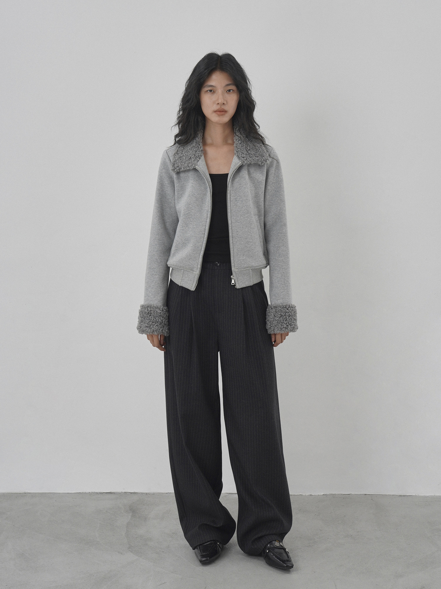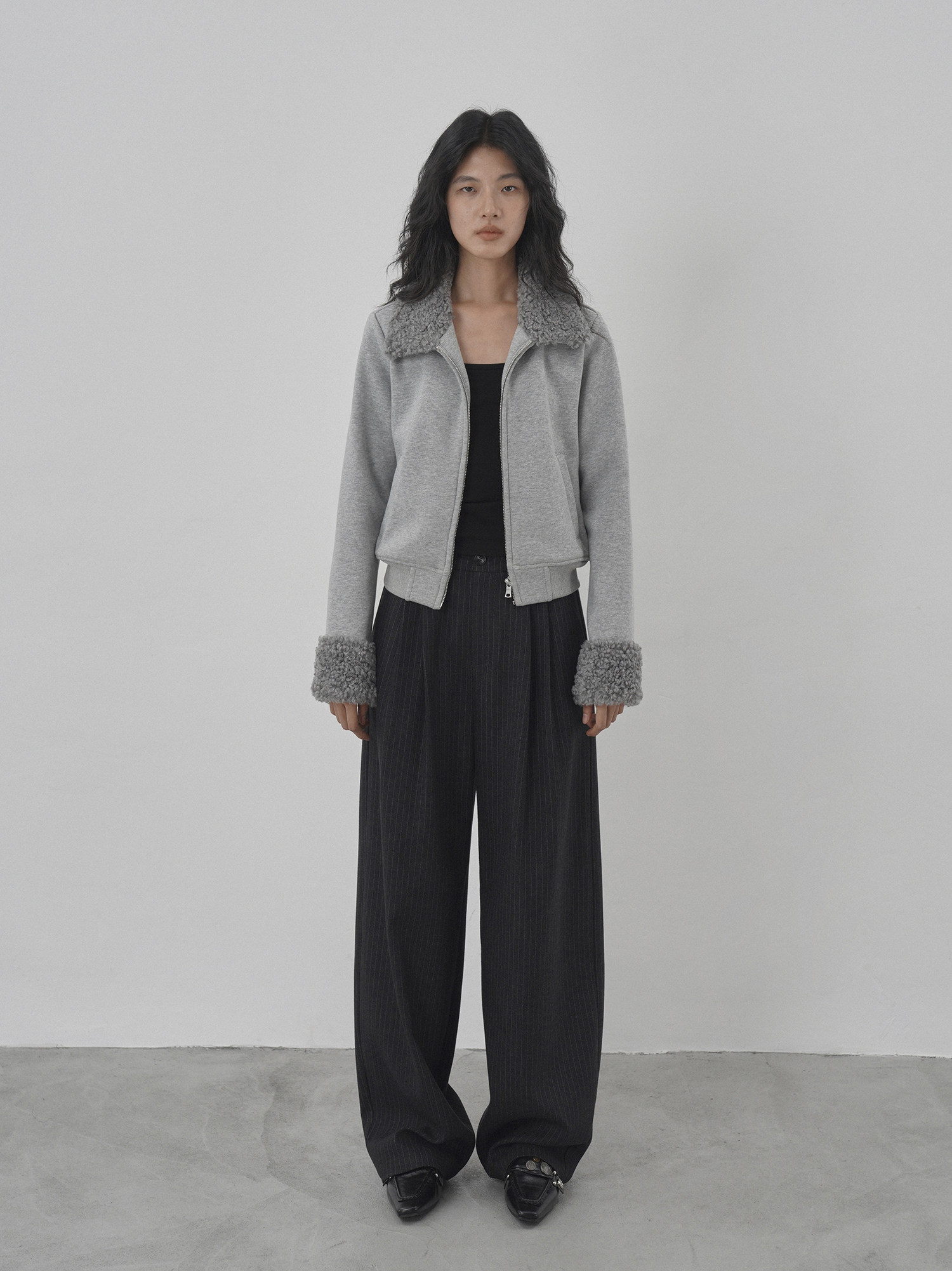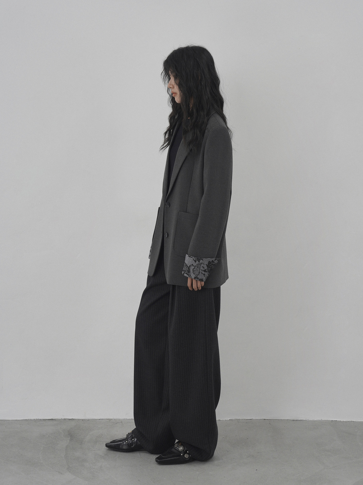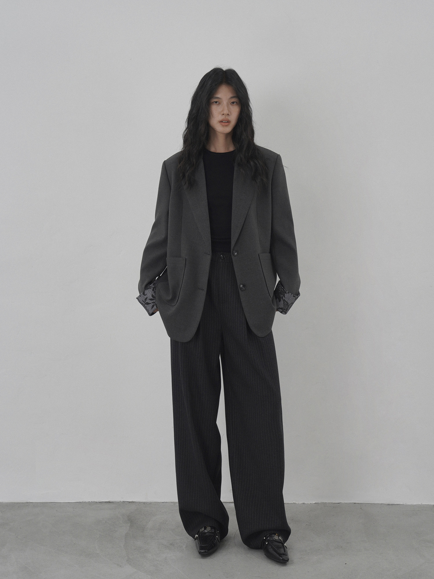 Eighthmonth August Fine Striped Wide-Leg Pants for Women, Autumn High-Waisted Slimming Loose Drapey Floor-Length Trousers