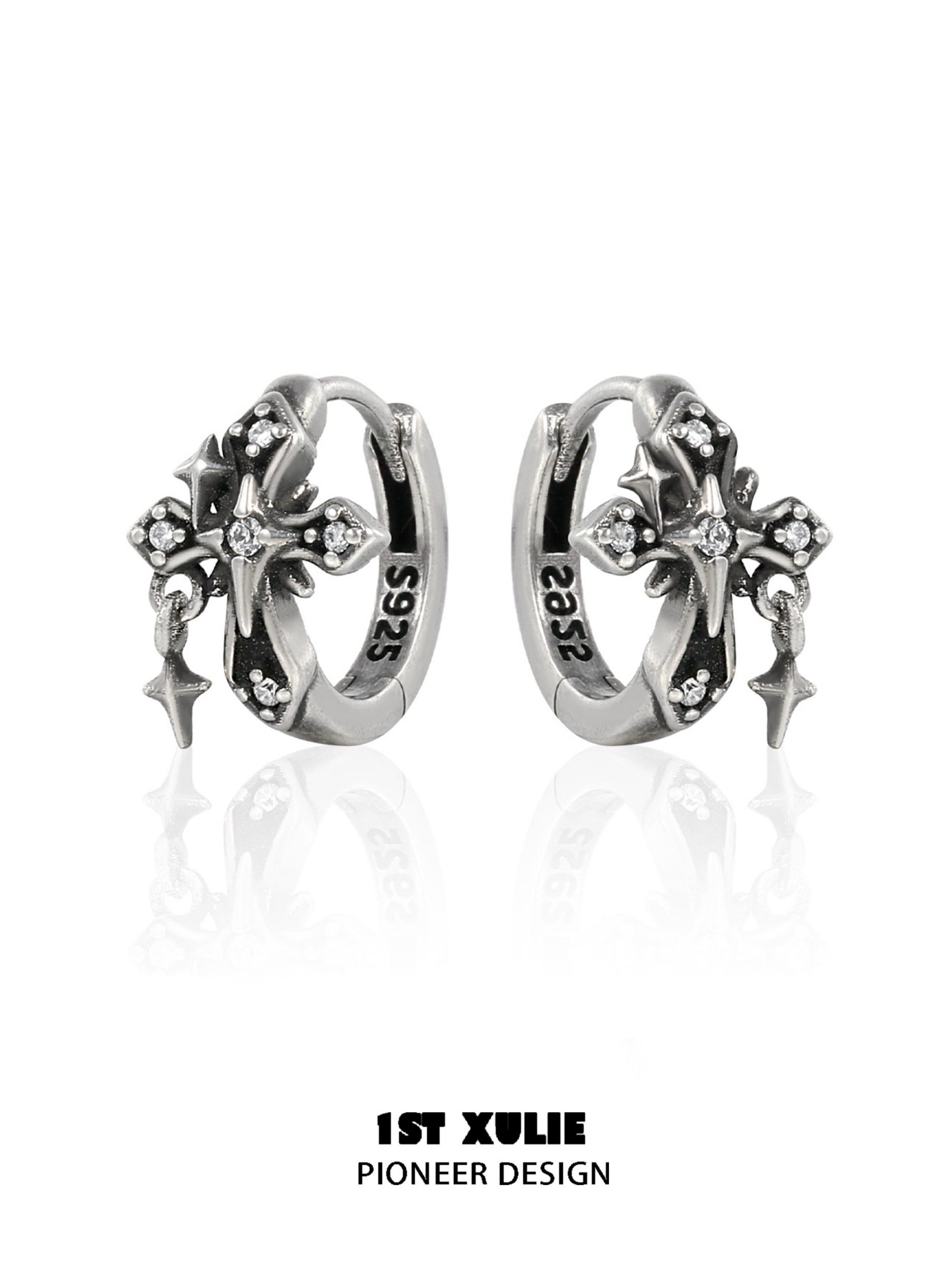 1Stxulie Sterling Silver Vintage Iris Cross Earrings Original Niche Design High-End Unisex Earrings