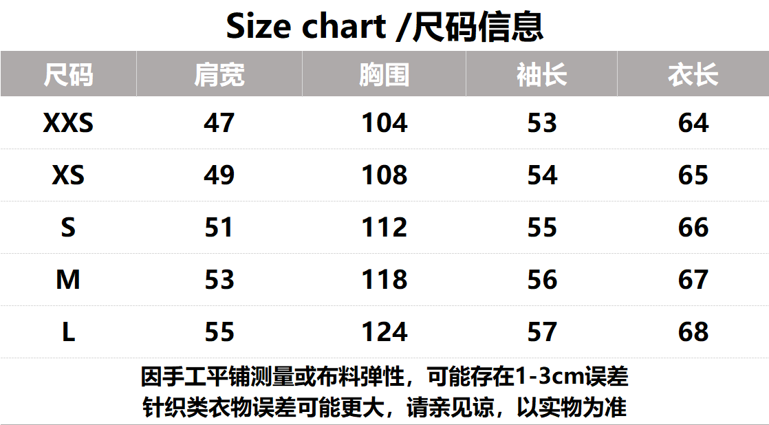 温馨提示:因每个人的体型和穿衣习惯不同,试穿表和客服推荐仅供参考,