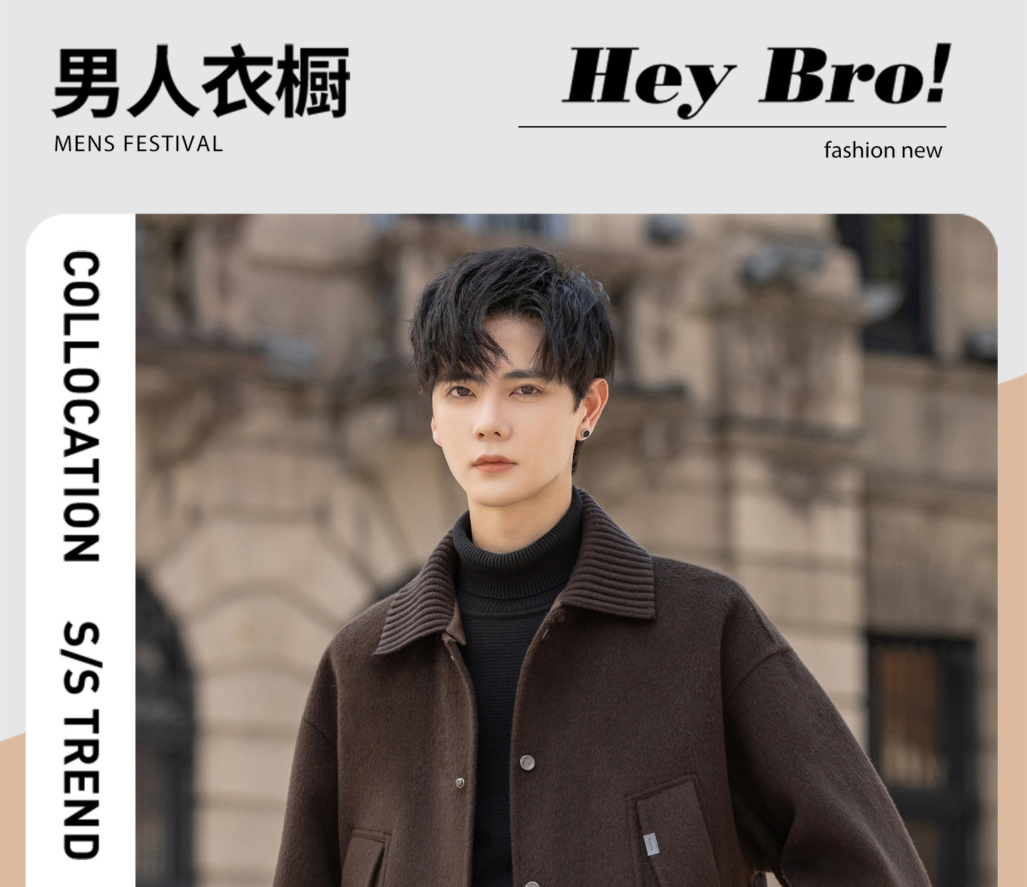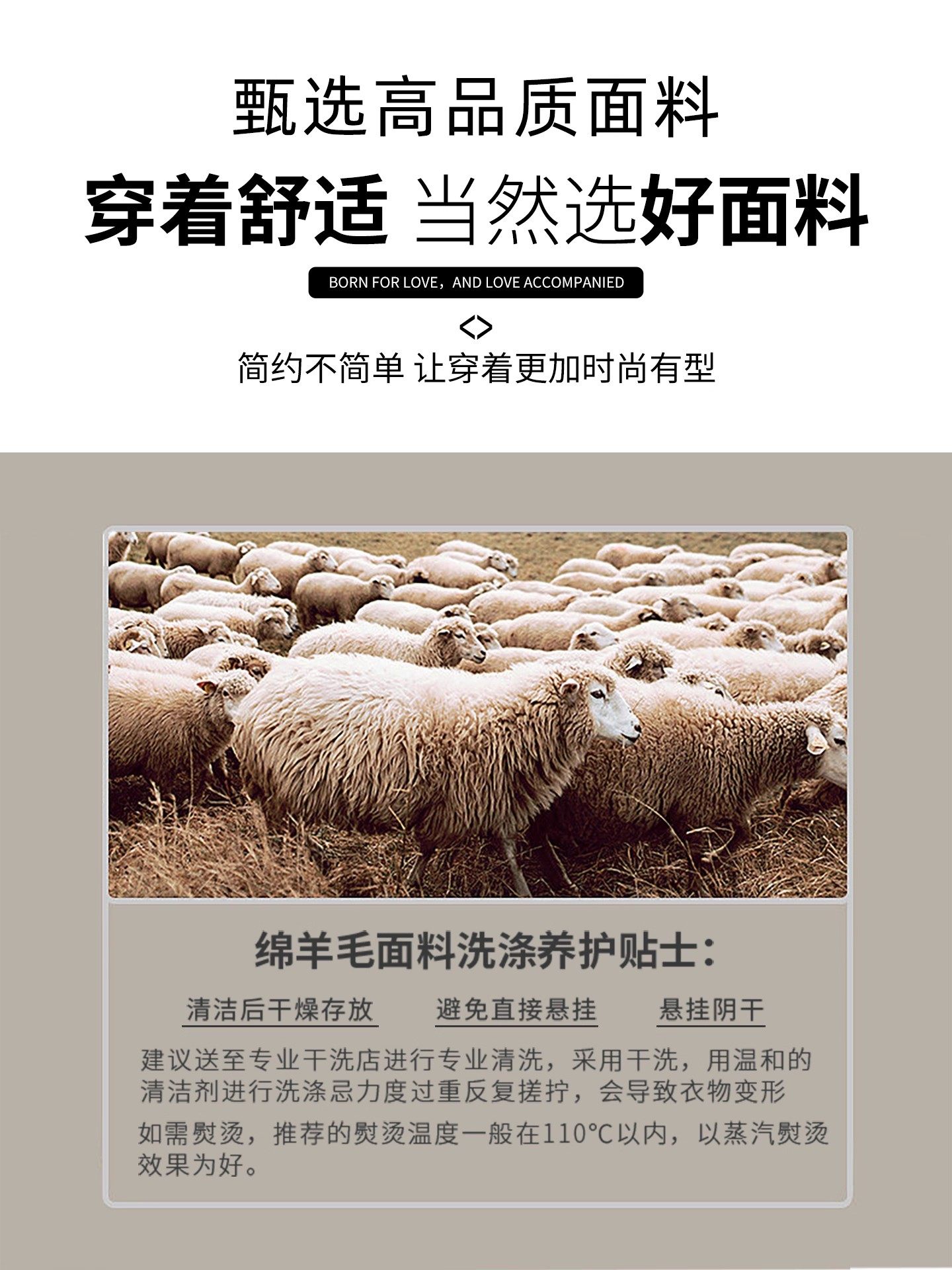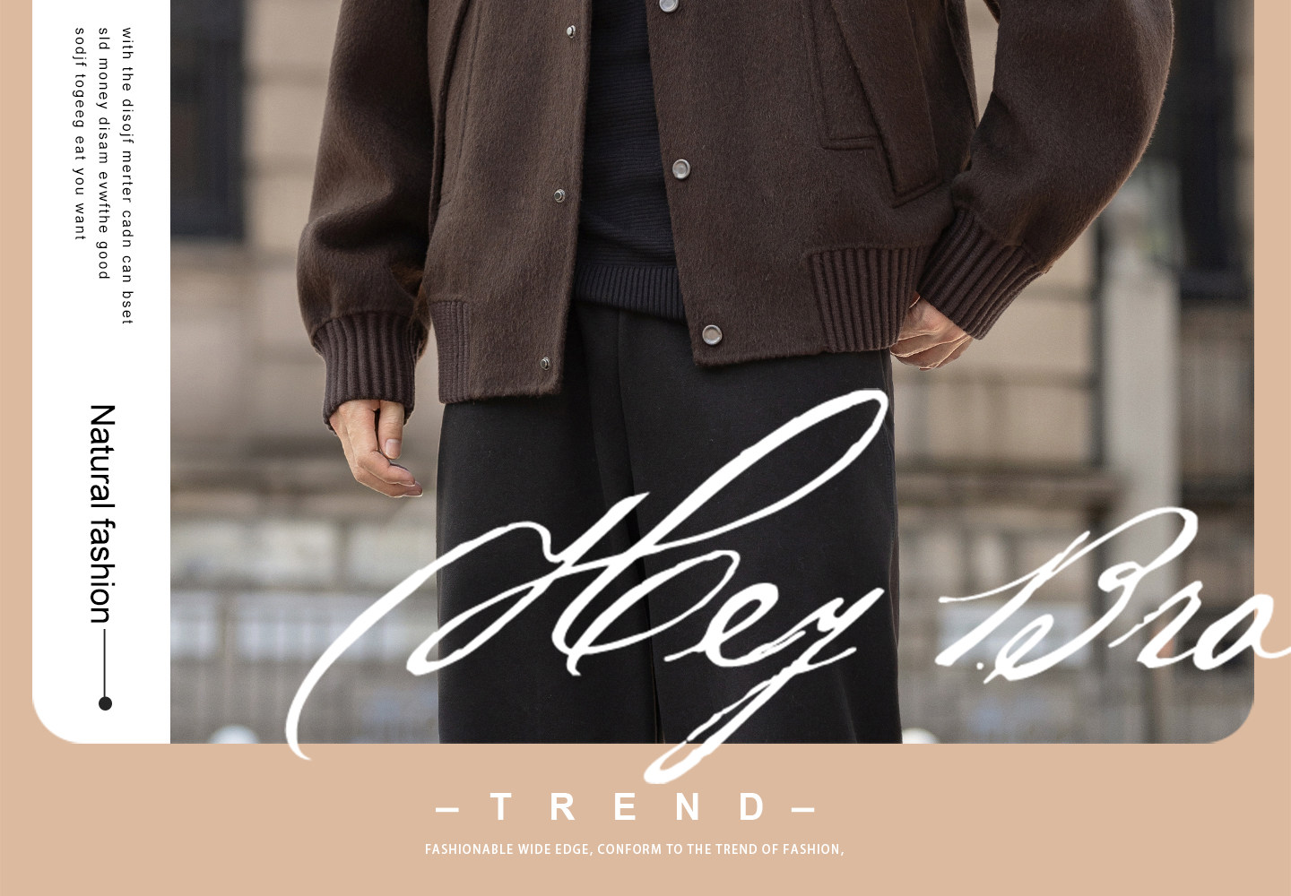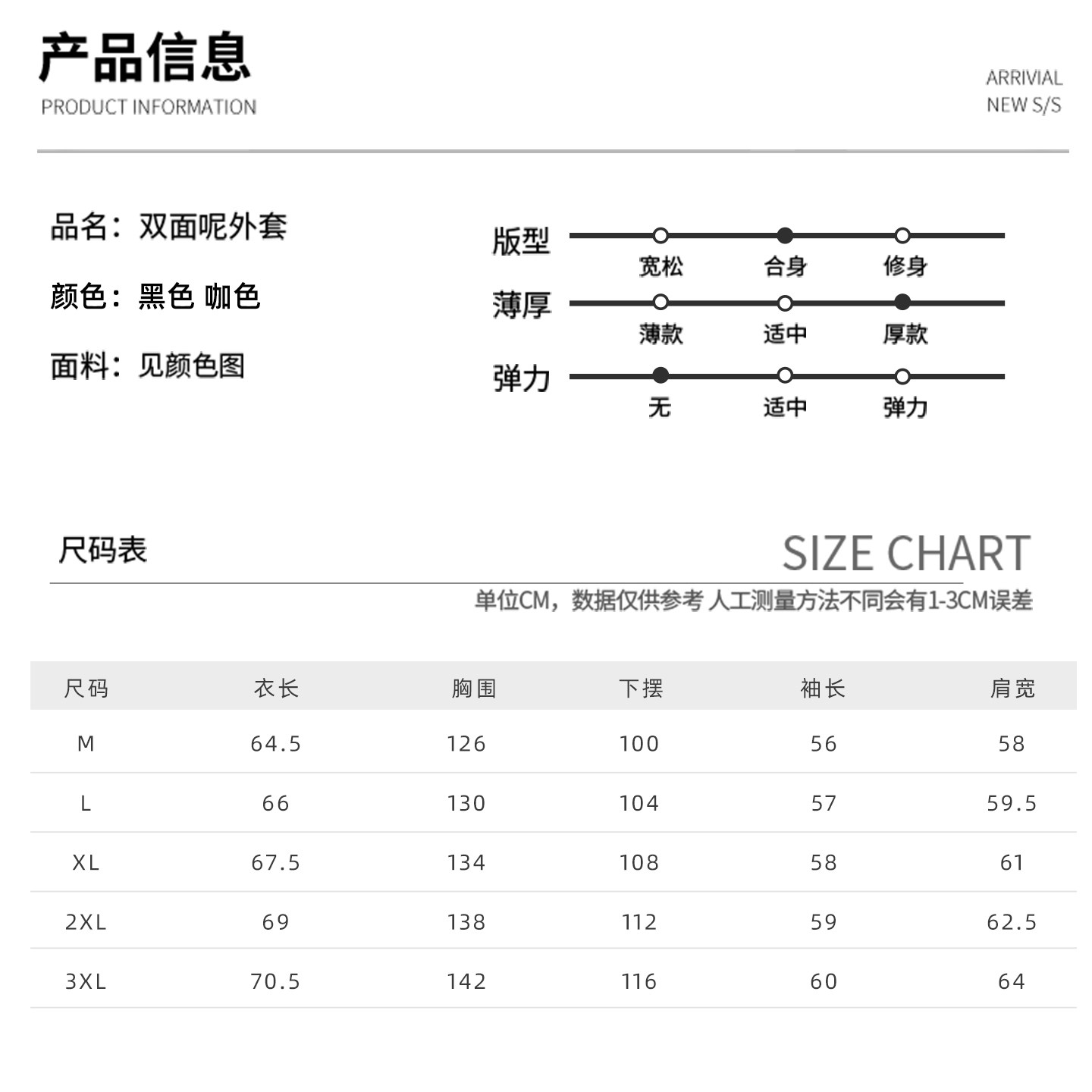 Men's Double-Sided Fleece Short Coat with Detachable Lapel, Ribbed Pure Wool Woolen Jacket, Thickened for Winter