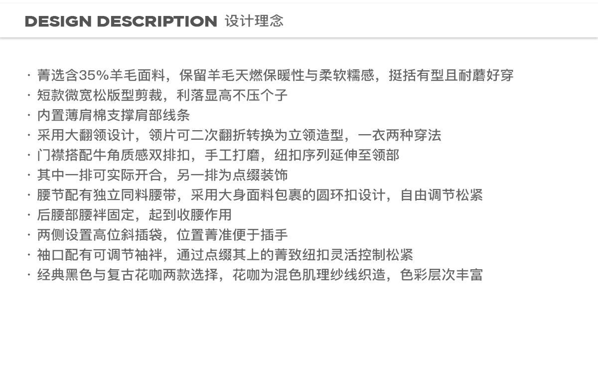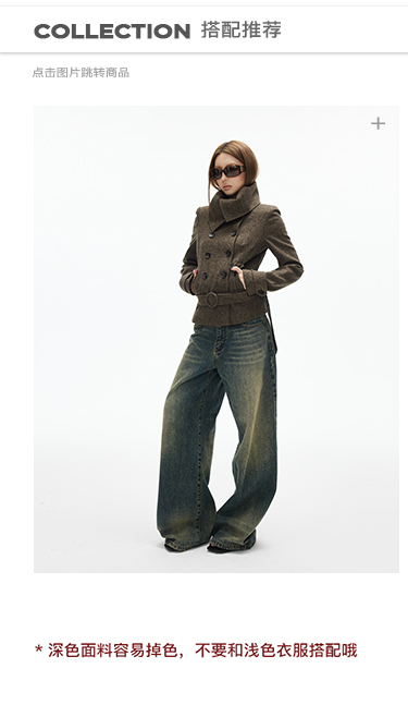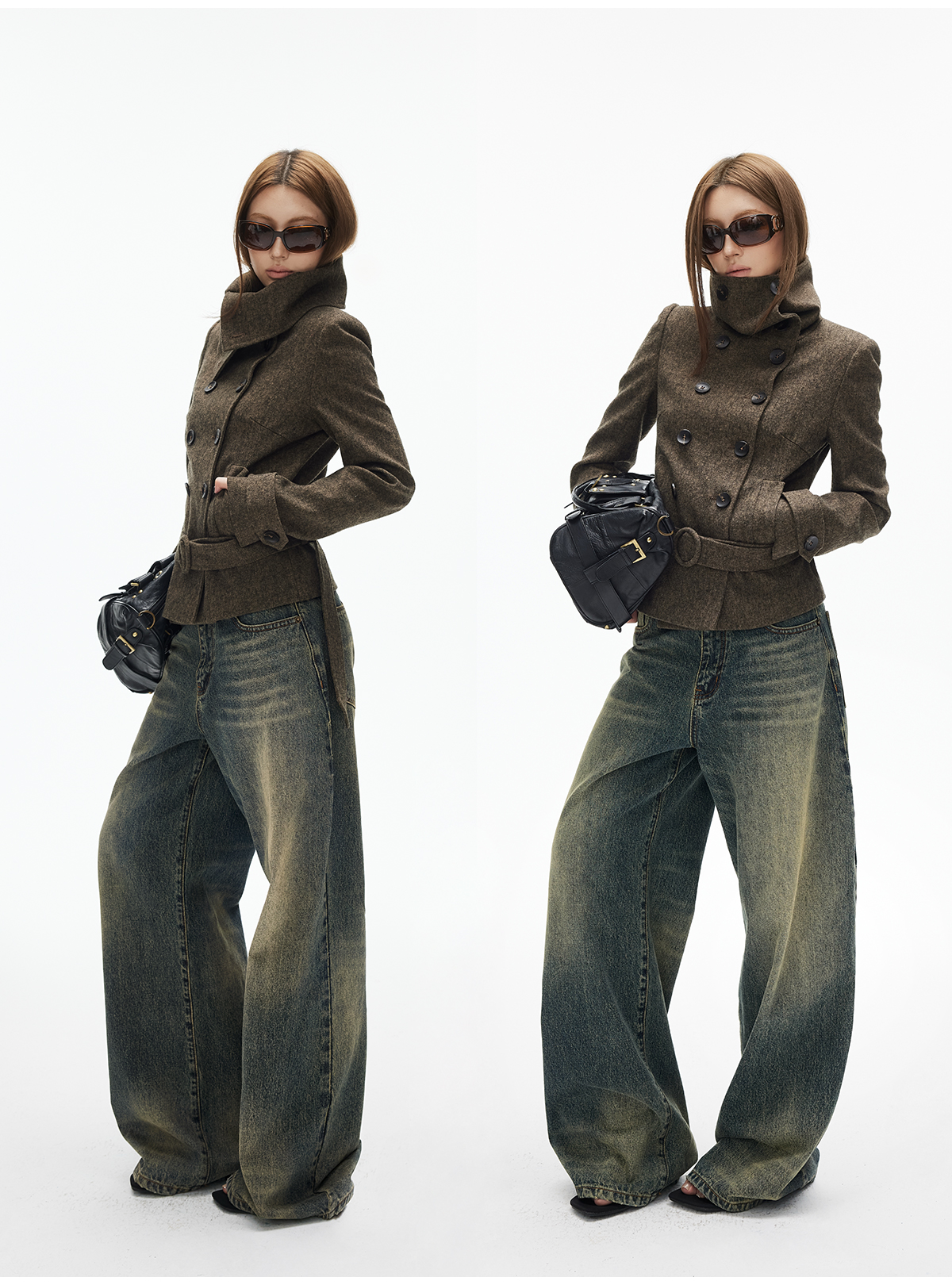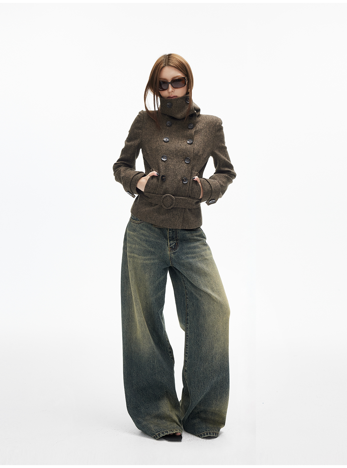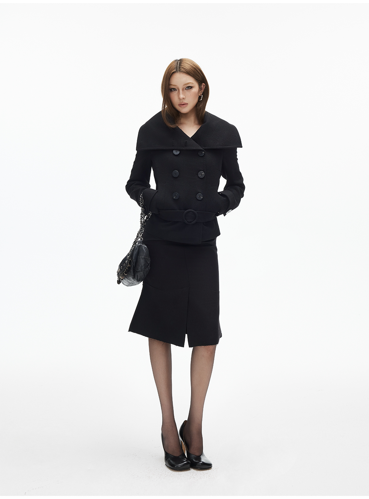 Iamxiaa* Soft and Cozy Wool Large Lapel Multi-Wear Double-Breasted Same-Material Belt Short Slightly Loose Woolen Coat