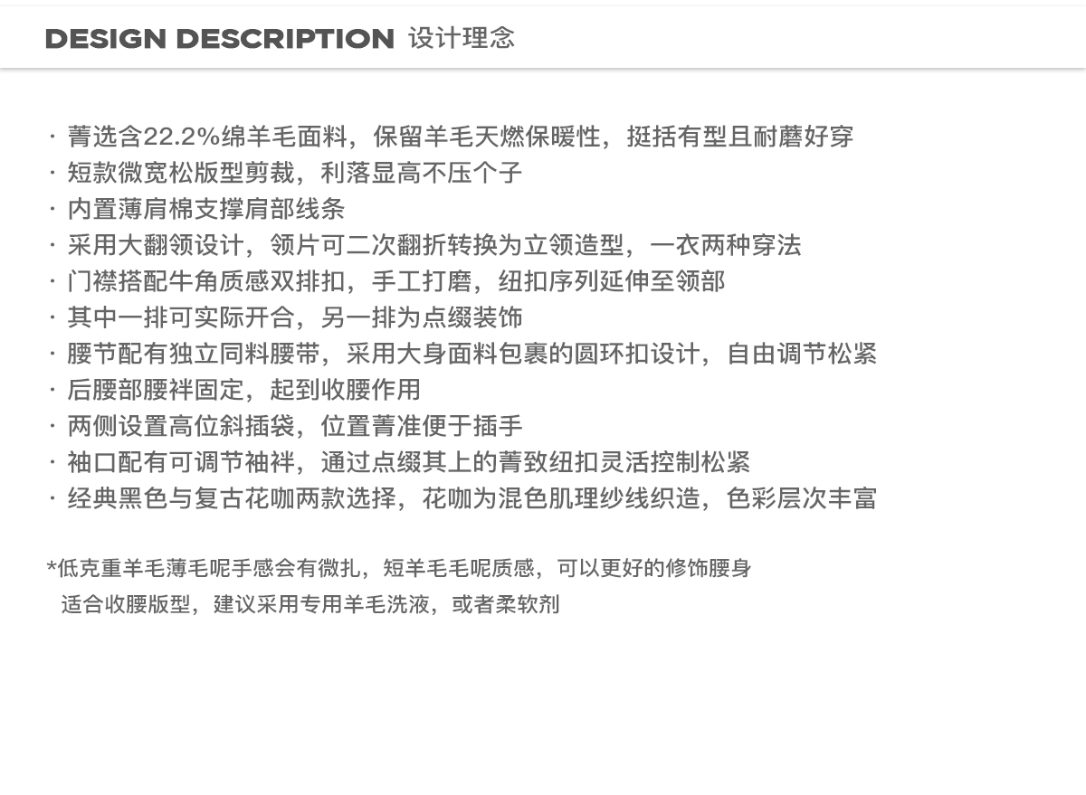 Iamxiaa* Wool Blend Large Lapel Multi-Wear Double-Breasted Same-Material Belt Slightly Loose Short Thin Woolen Coat