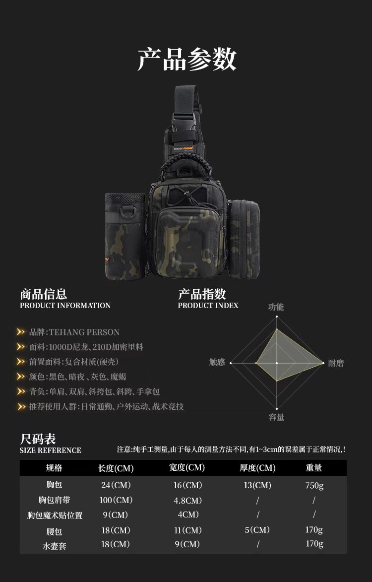 Tactical Chest Bag Upgraded Eva Multifunctional Single Shoulder Crossbody Outdoor Cycling Waterproof and Wear-Resistant Casual Bag Men's Set