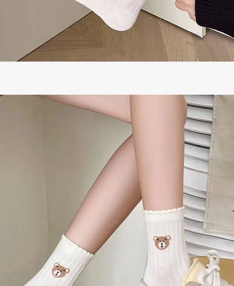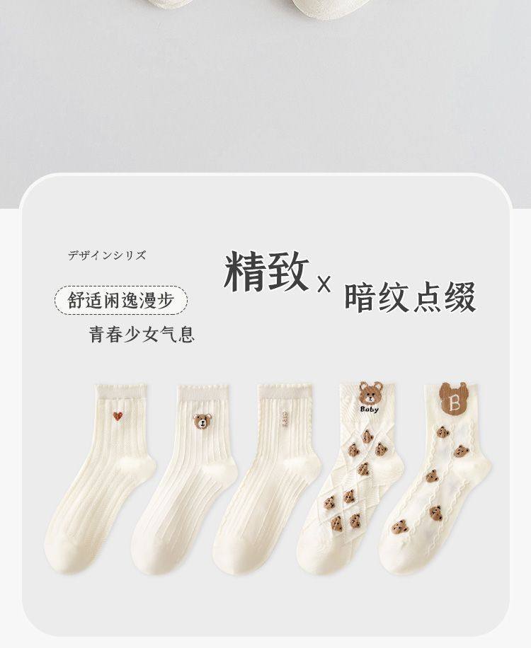 Women's Socks, Mid-Calf Socks, Autumn and Winter, Cute Japanese Style, Solid Color, Non-Cotton Socks, Odor-Resistant, Korean Style Short Socks, Sports Sweat-Absorbent