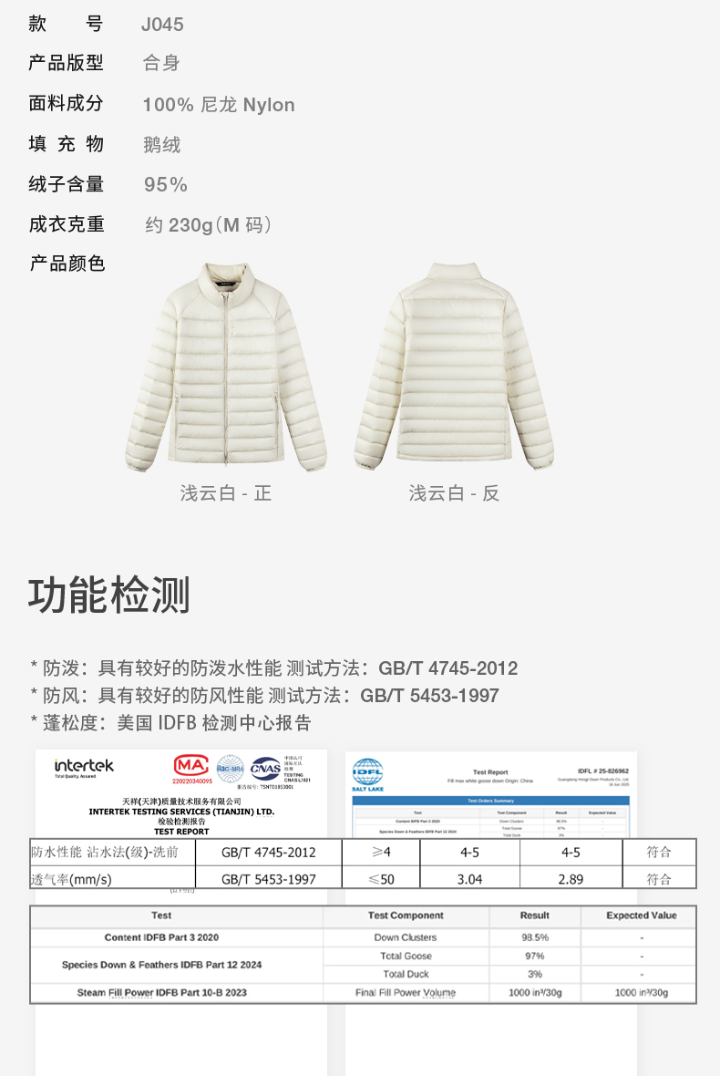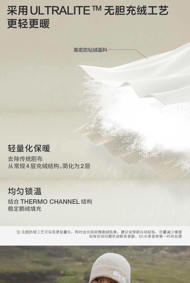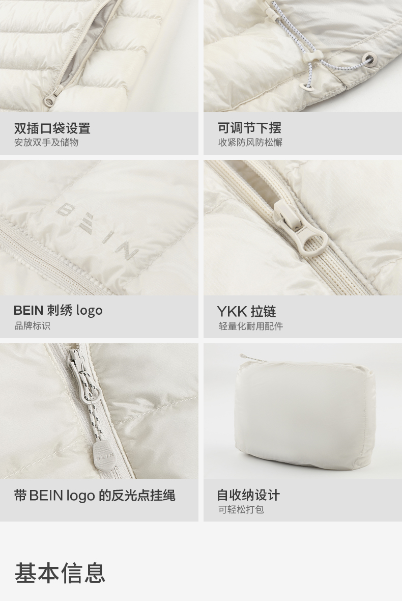 Bein Space Autumn and Winter New Product Lightweight Warm Windproof 95 White Goose down 1000Fp Mid-Layer down Jacket J045