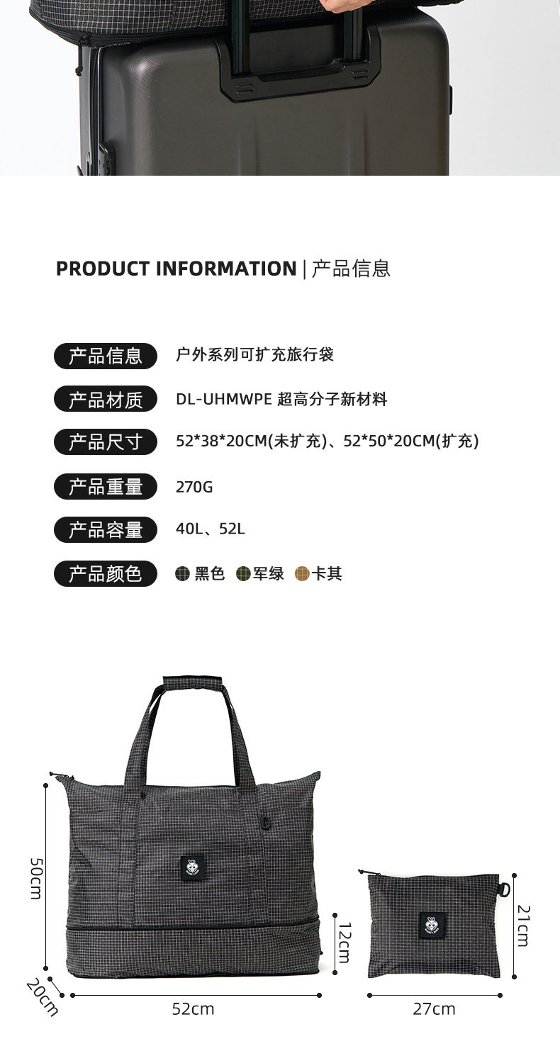 Foldable Travel Bag, High-Strength, Wear-Resistant, Waterproof Shoulder Bag, Lightweight Handbag, Large Capacity Expansion