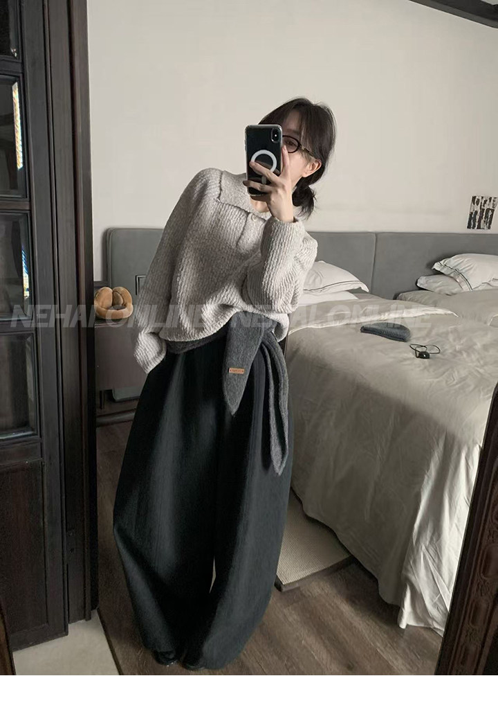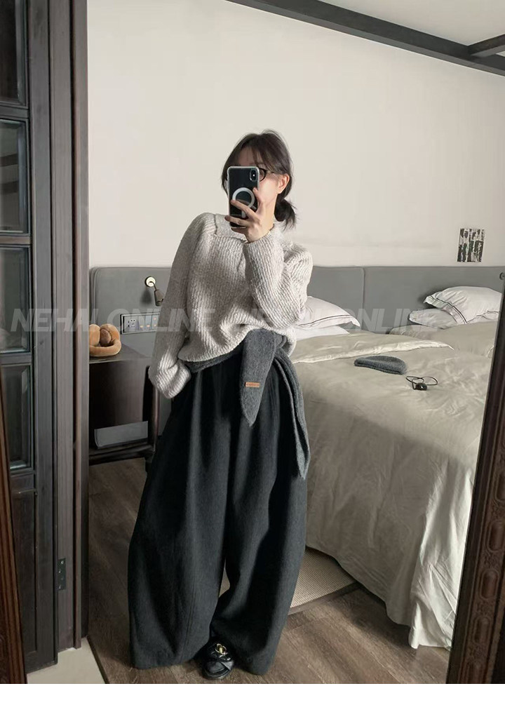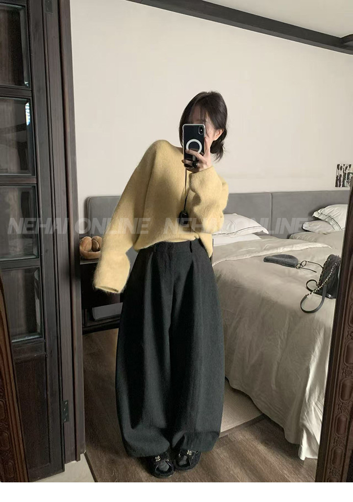 Inner Sea Korean Brand Low Flat Popular Balloon Pants Upgraded Version Thickened Wool Texture Dress Pants Lantern Pants