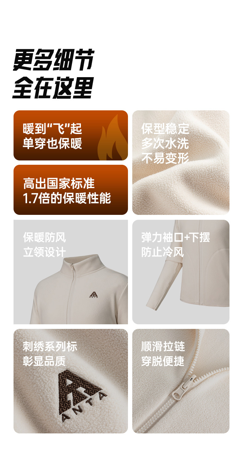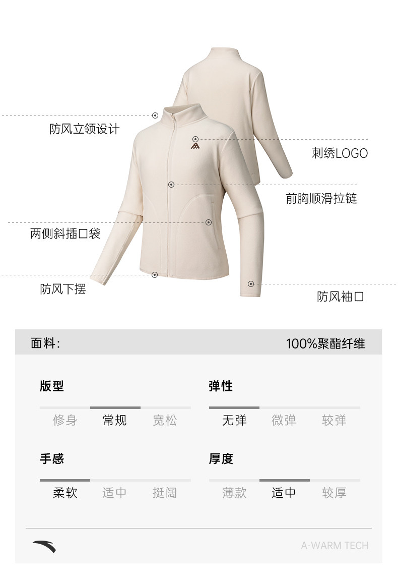 Anta Fire Shell Fleece Jacket | Earth Shell Fleece-Lined Jacket for Women, New Winter Style, Inner Layer Sports Top
