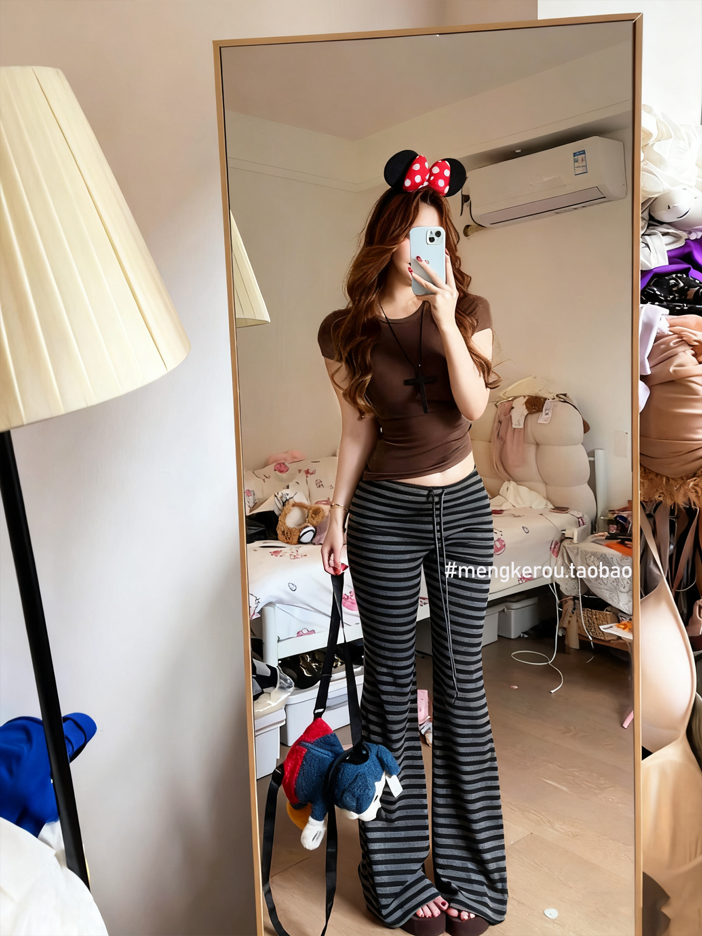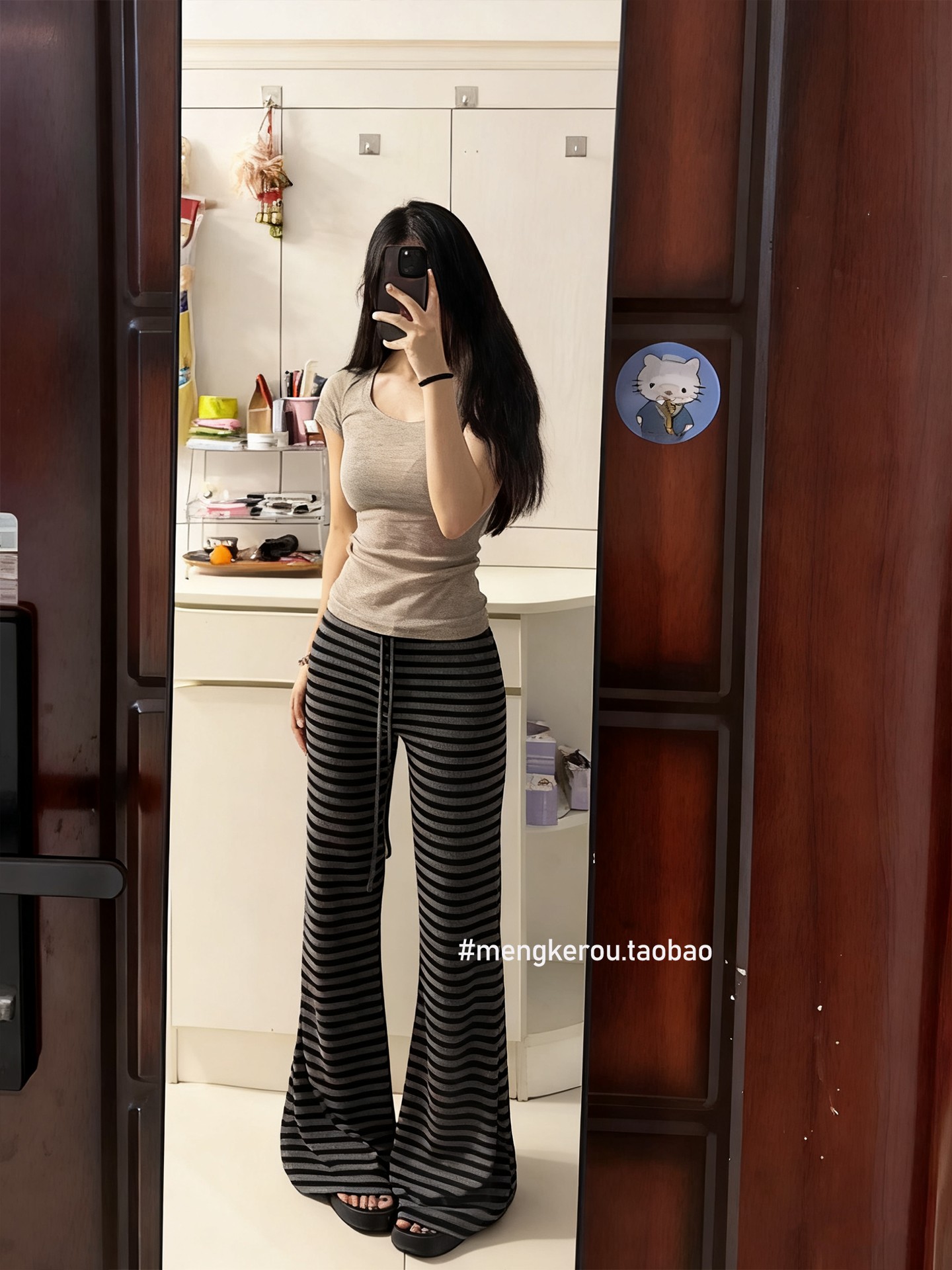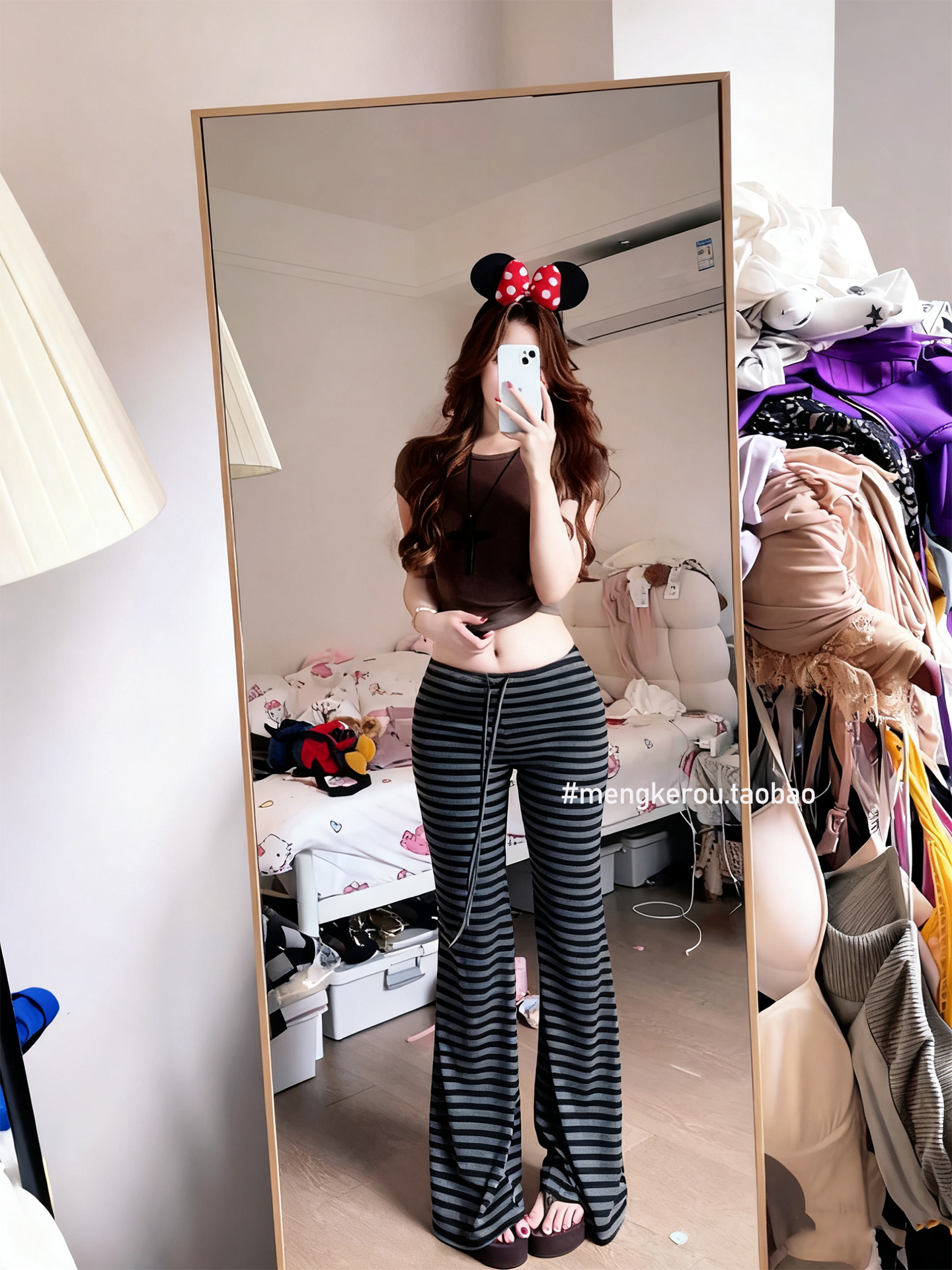Long Leg-Enhancing ~ Hot Girl Striped Slimming Pants for Women, Versatile for Autumn and Winter, Slim Fit Drawstring Flared Sports Yoga Pants