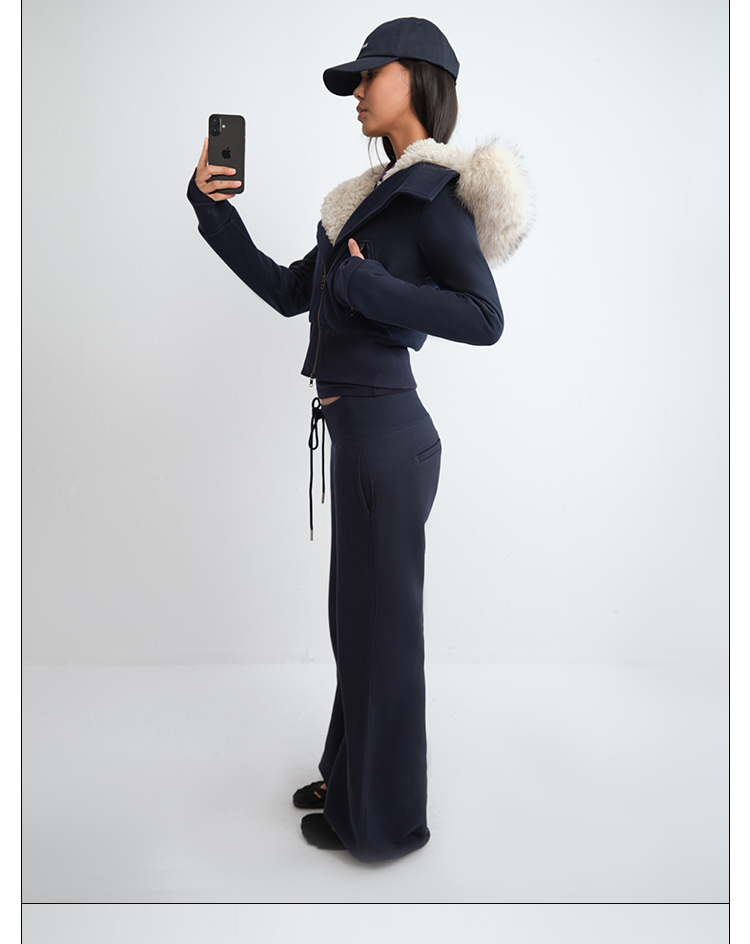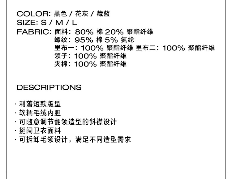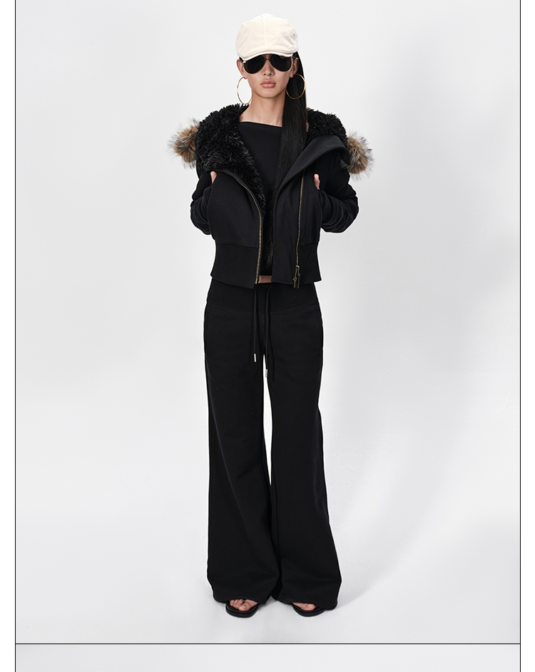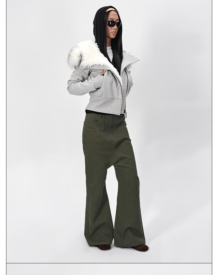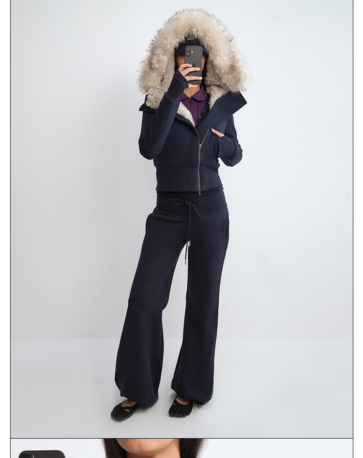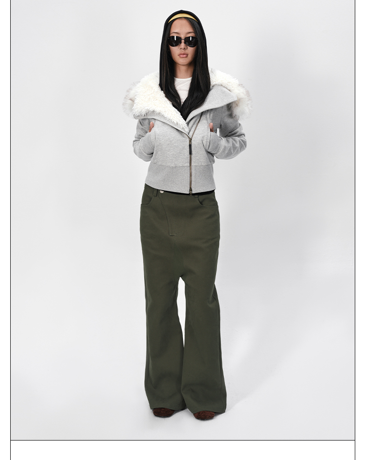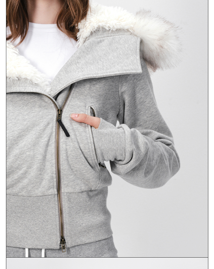 Rarely Alike Hooded Fur Collar Diagonal Placket Plush Lining Cotton Jacket Navy Blue/Black/Gray