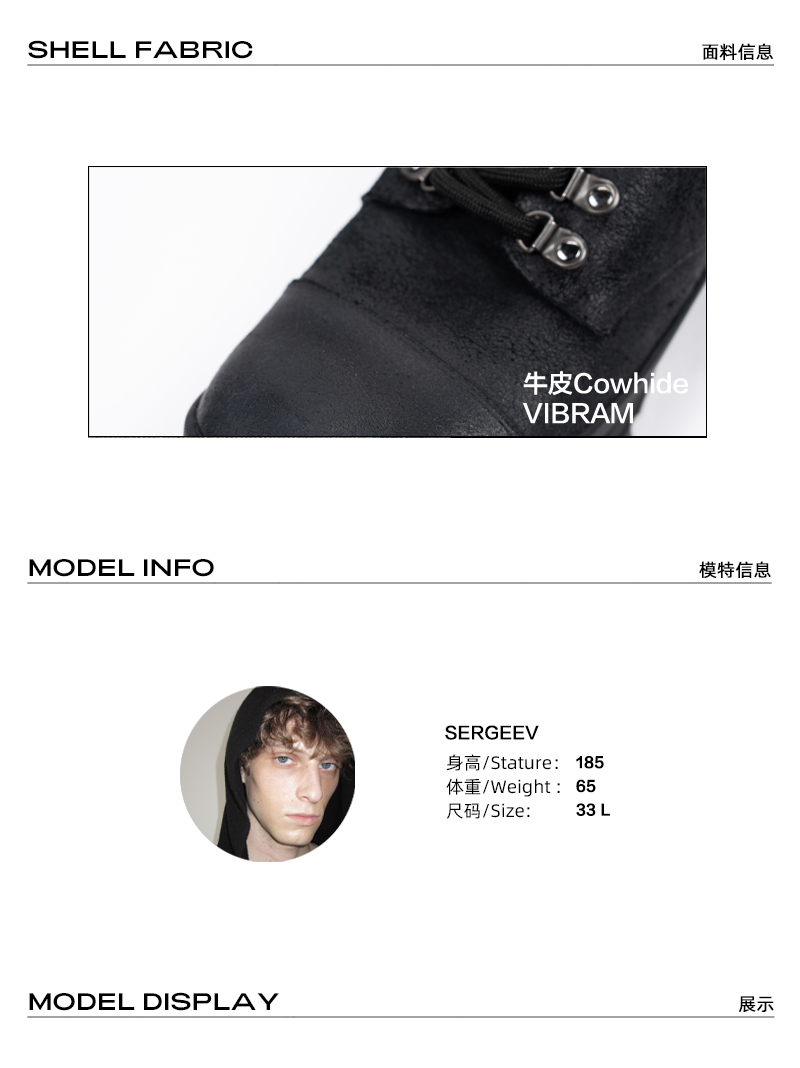 Gremade Italian Virbam First-Layer Cowhide Waxed Waterproof Outdoor Hiking Height-Increasing Derby Shoes