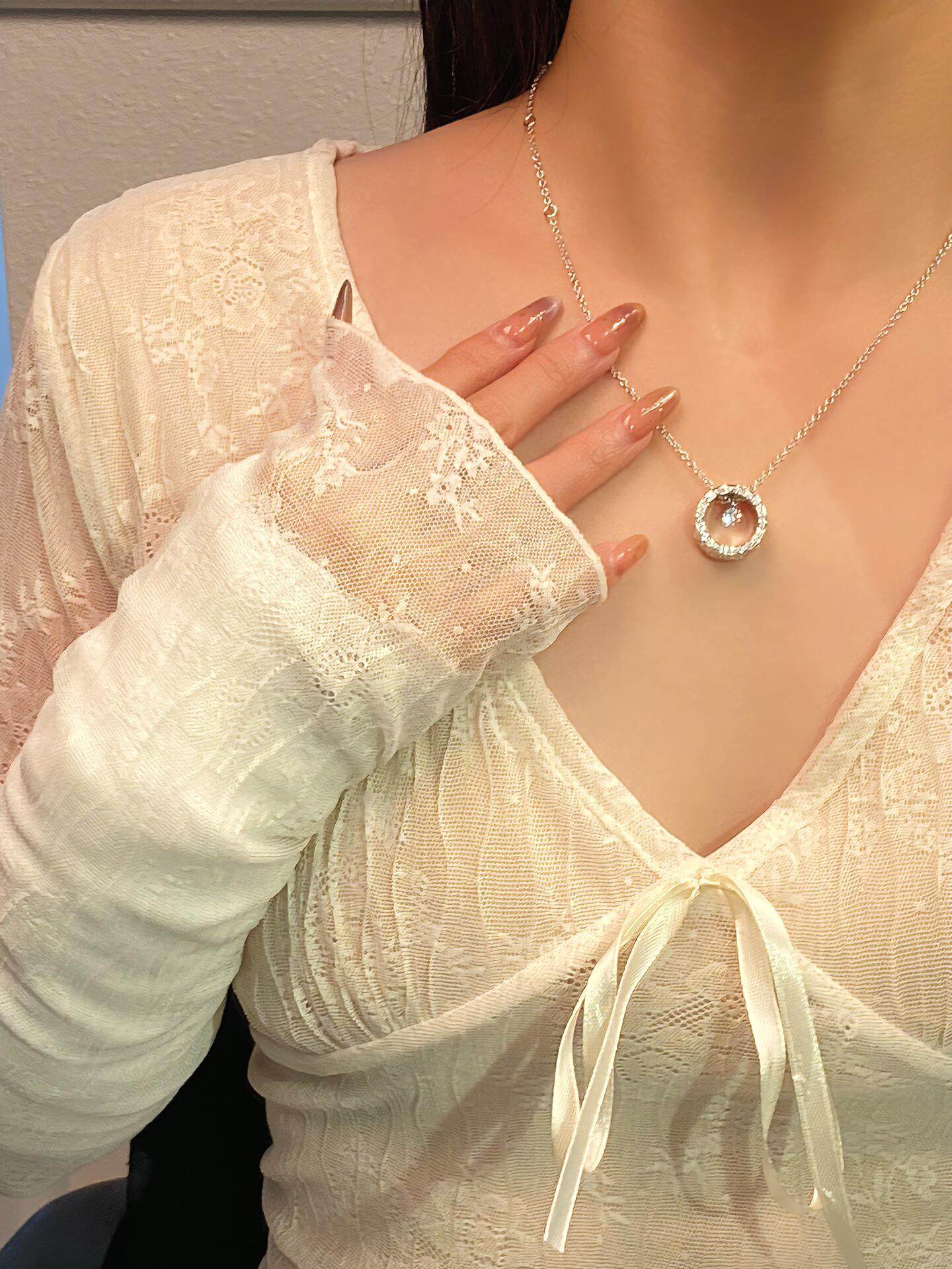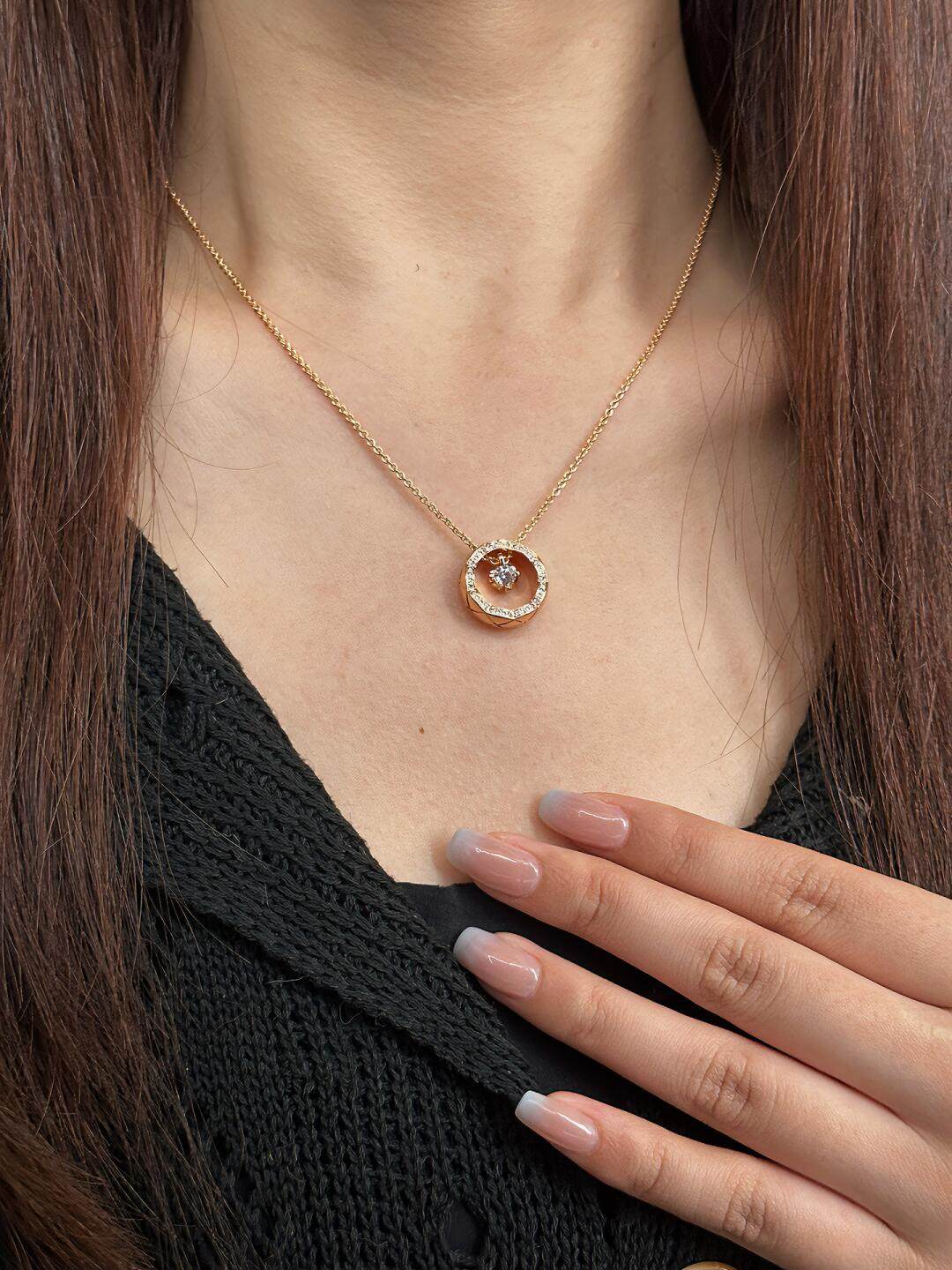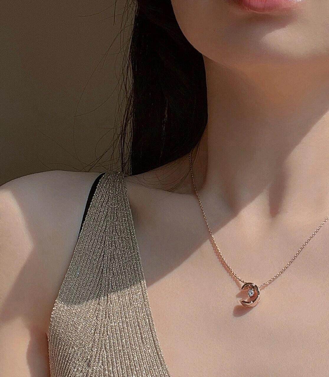 Jennie-Style Water Ice Moon Necklace, Kim Ji-Ni Diamond Pattern Small Gold Bead Clavicle Chain, Chanel-Inspired Light Luxury with a High-End Feel